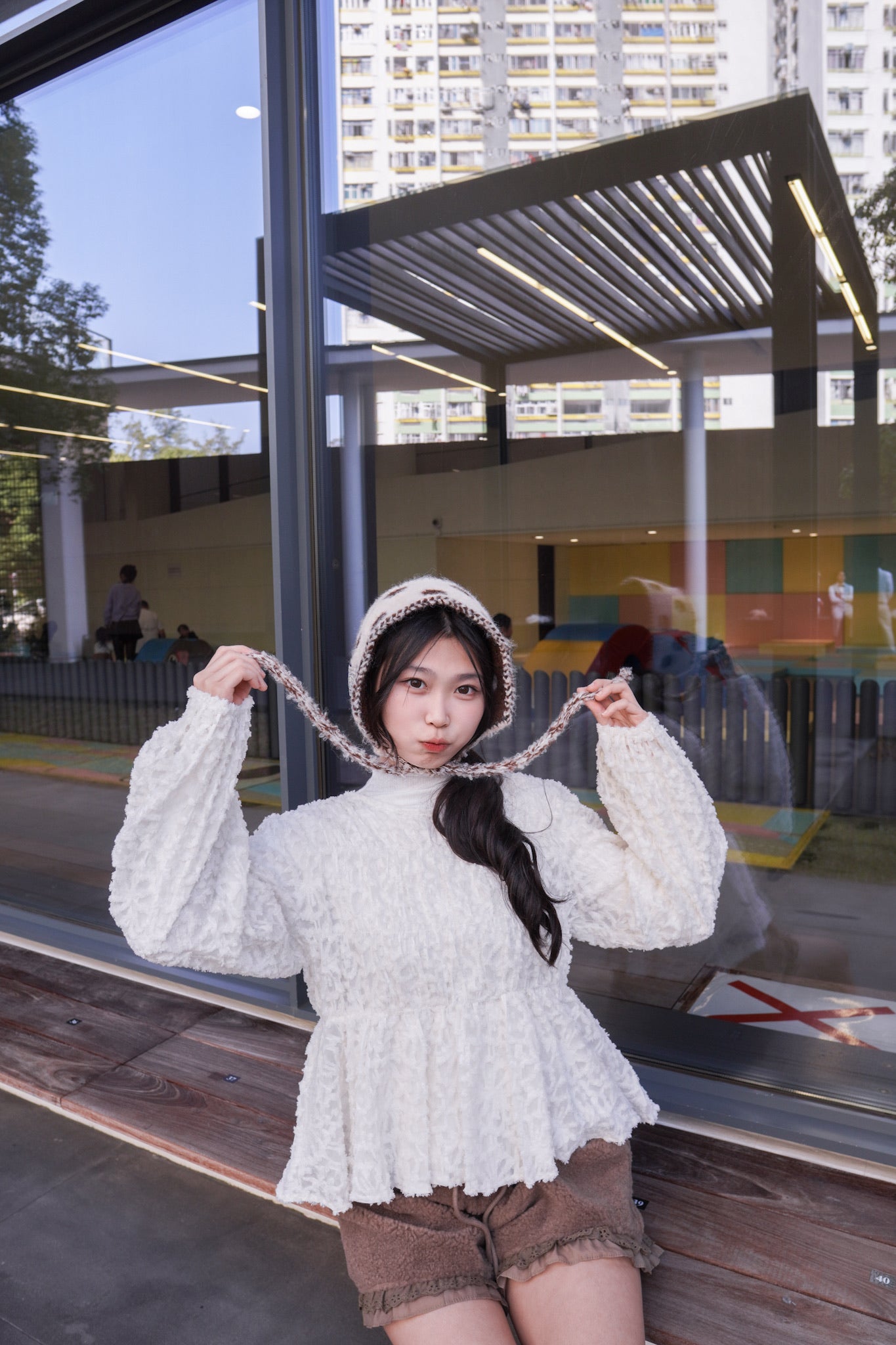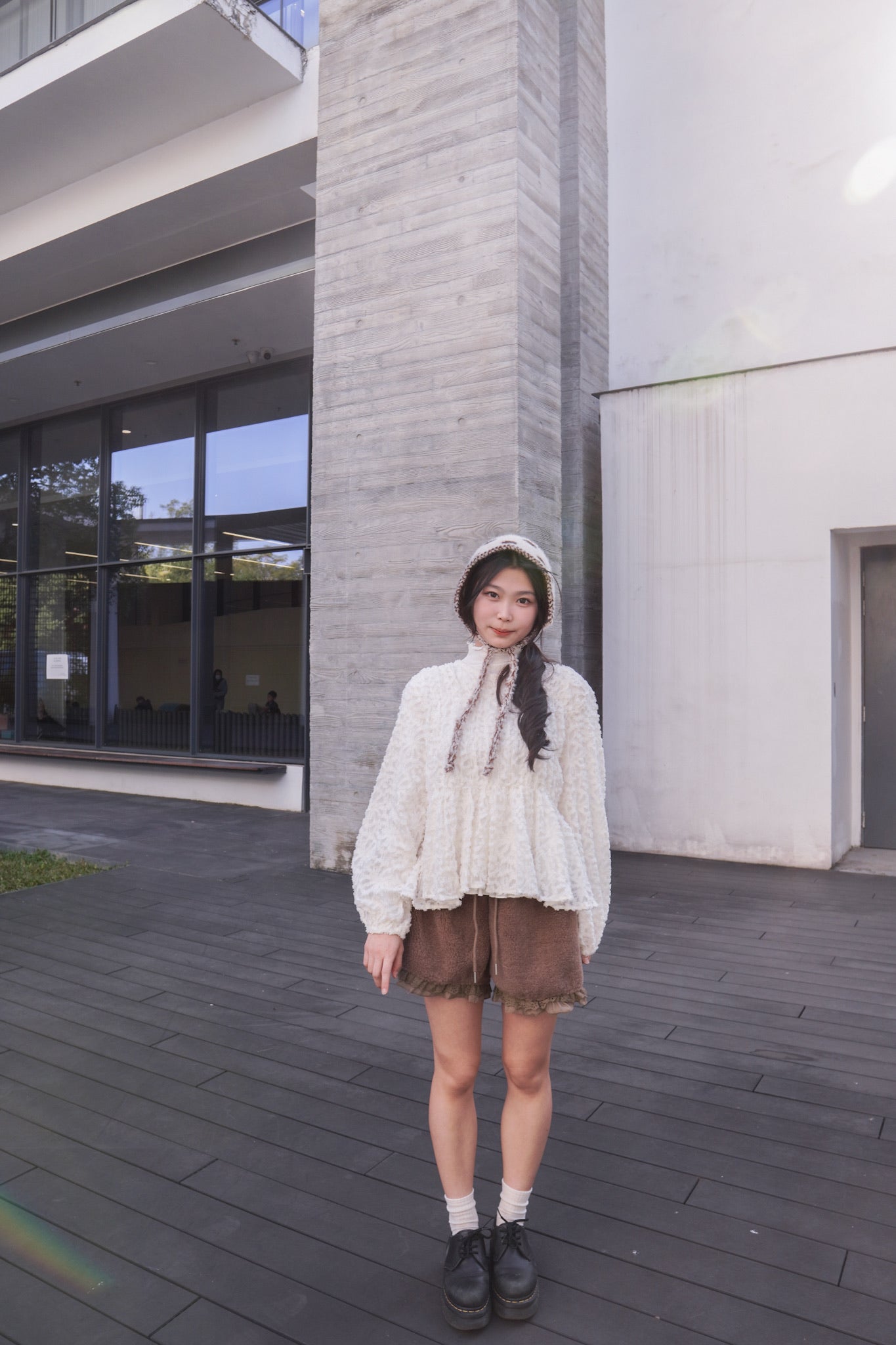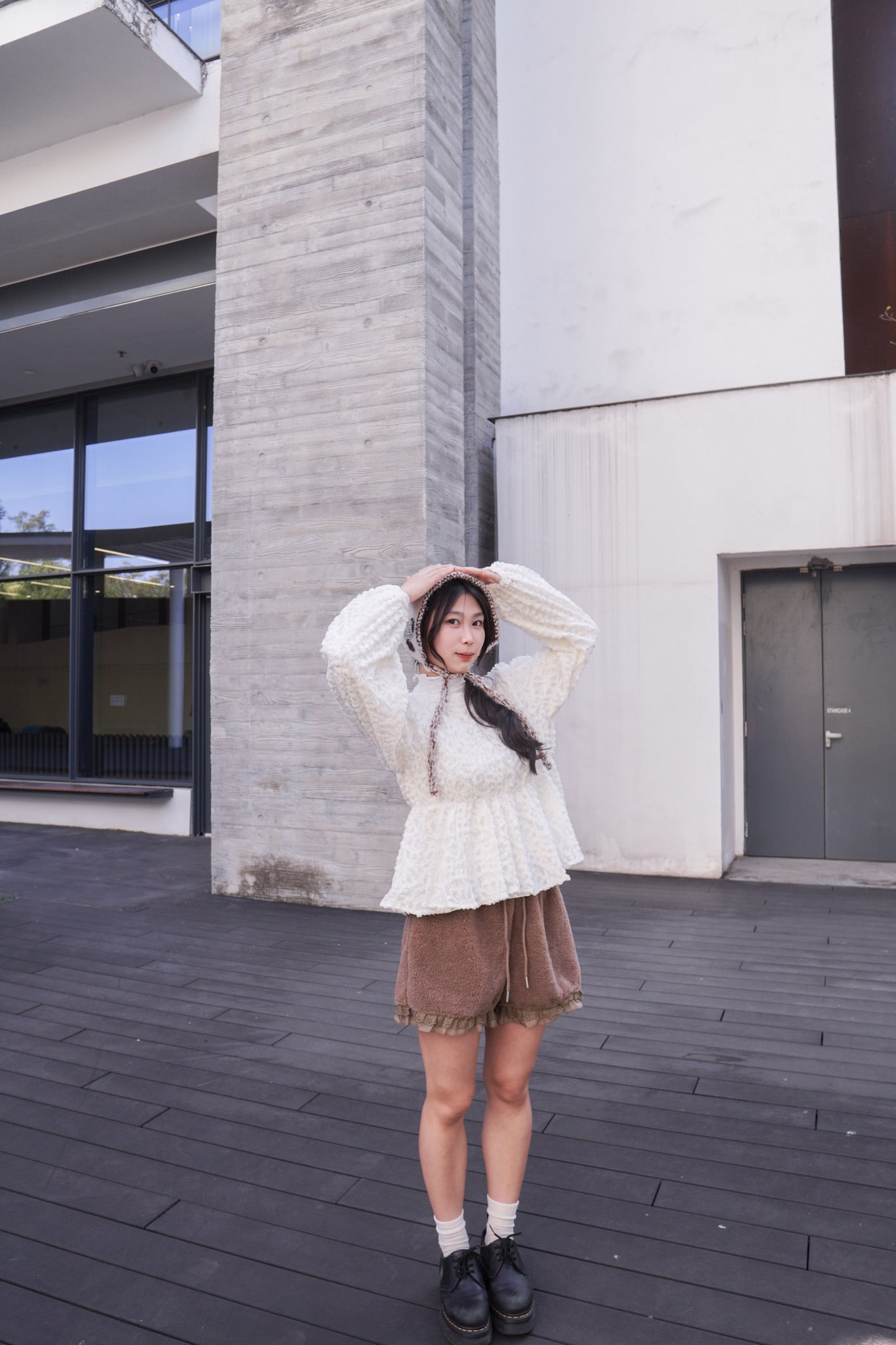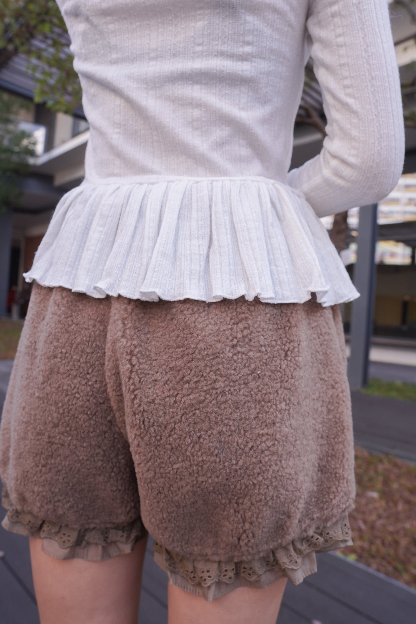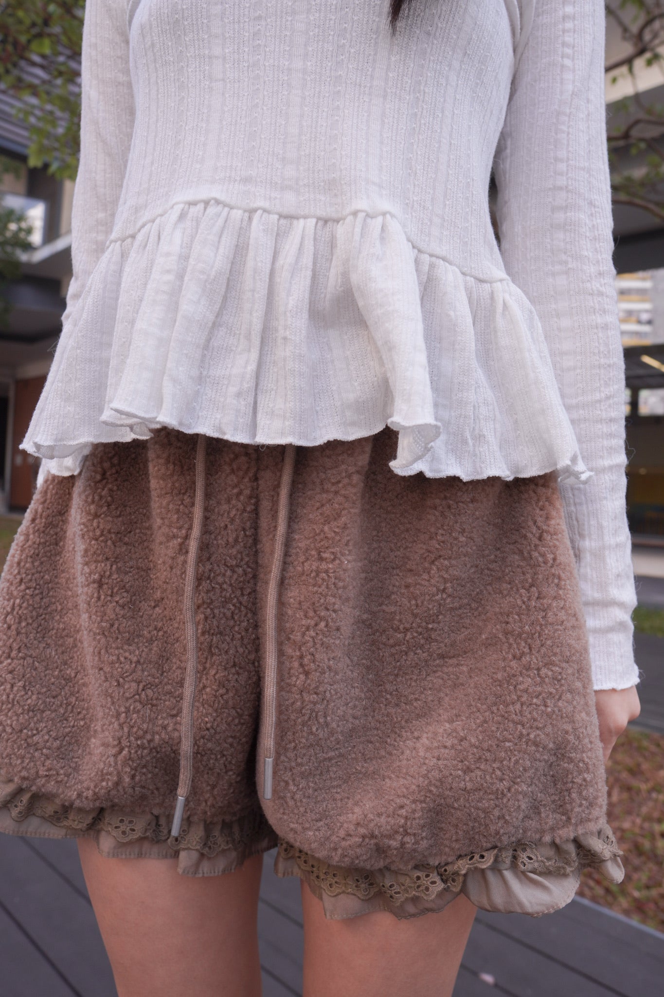 <現貨> 小熊高腰ruffle邊毛絨短褲