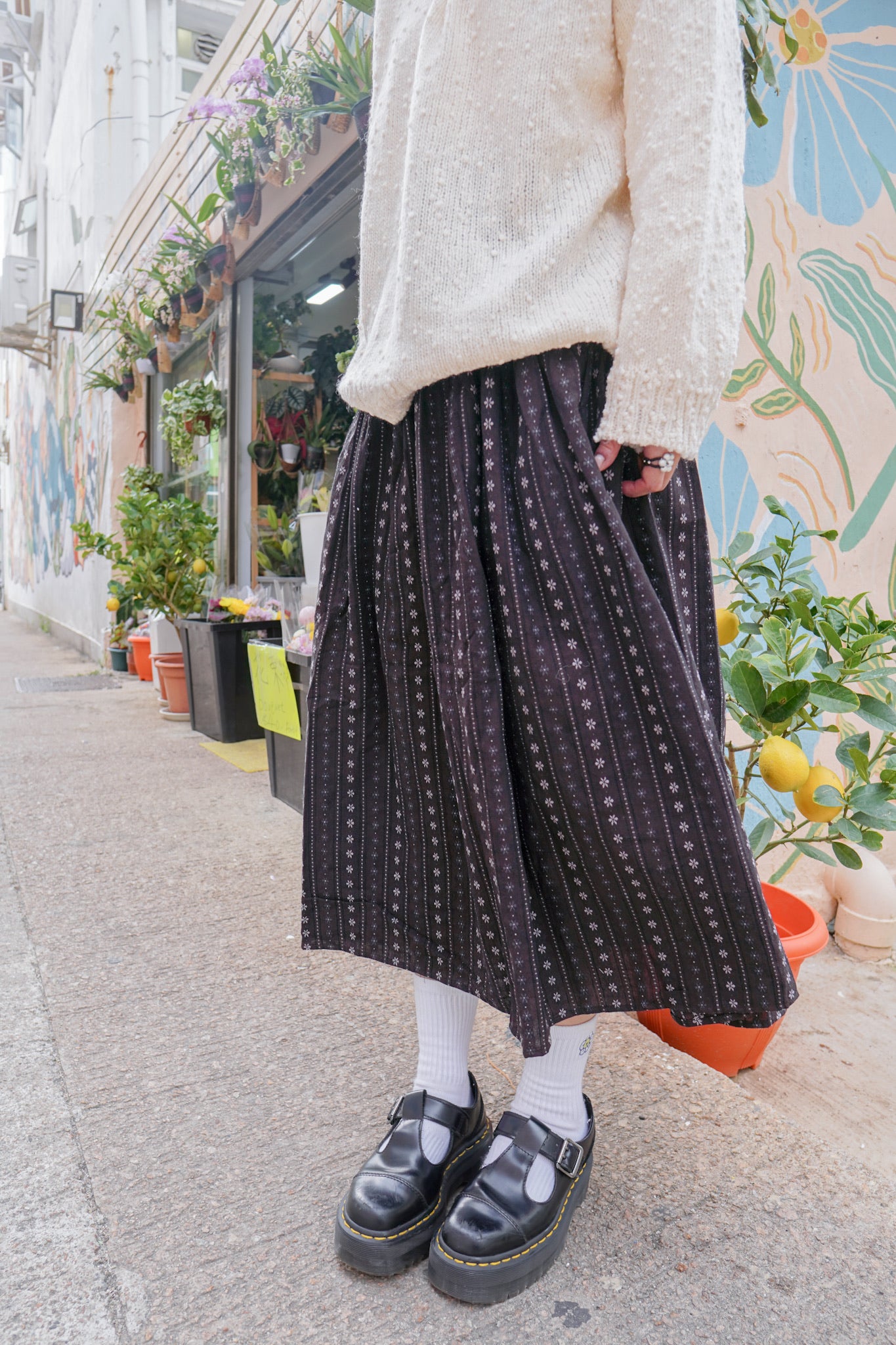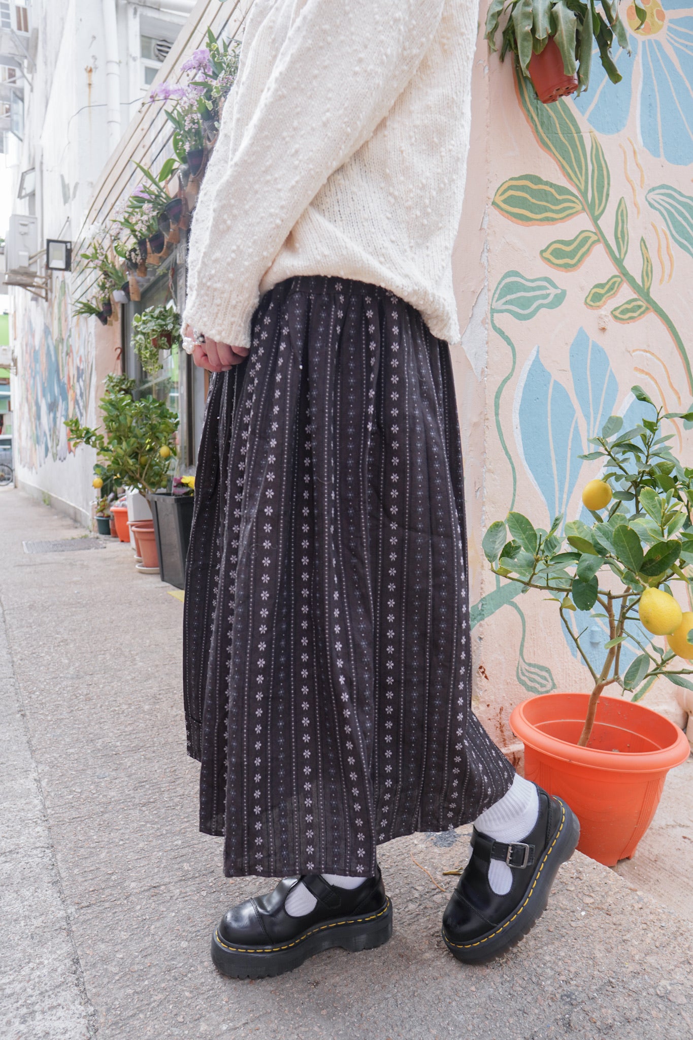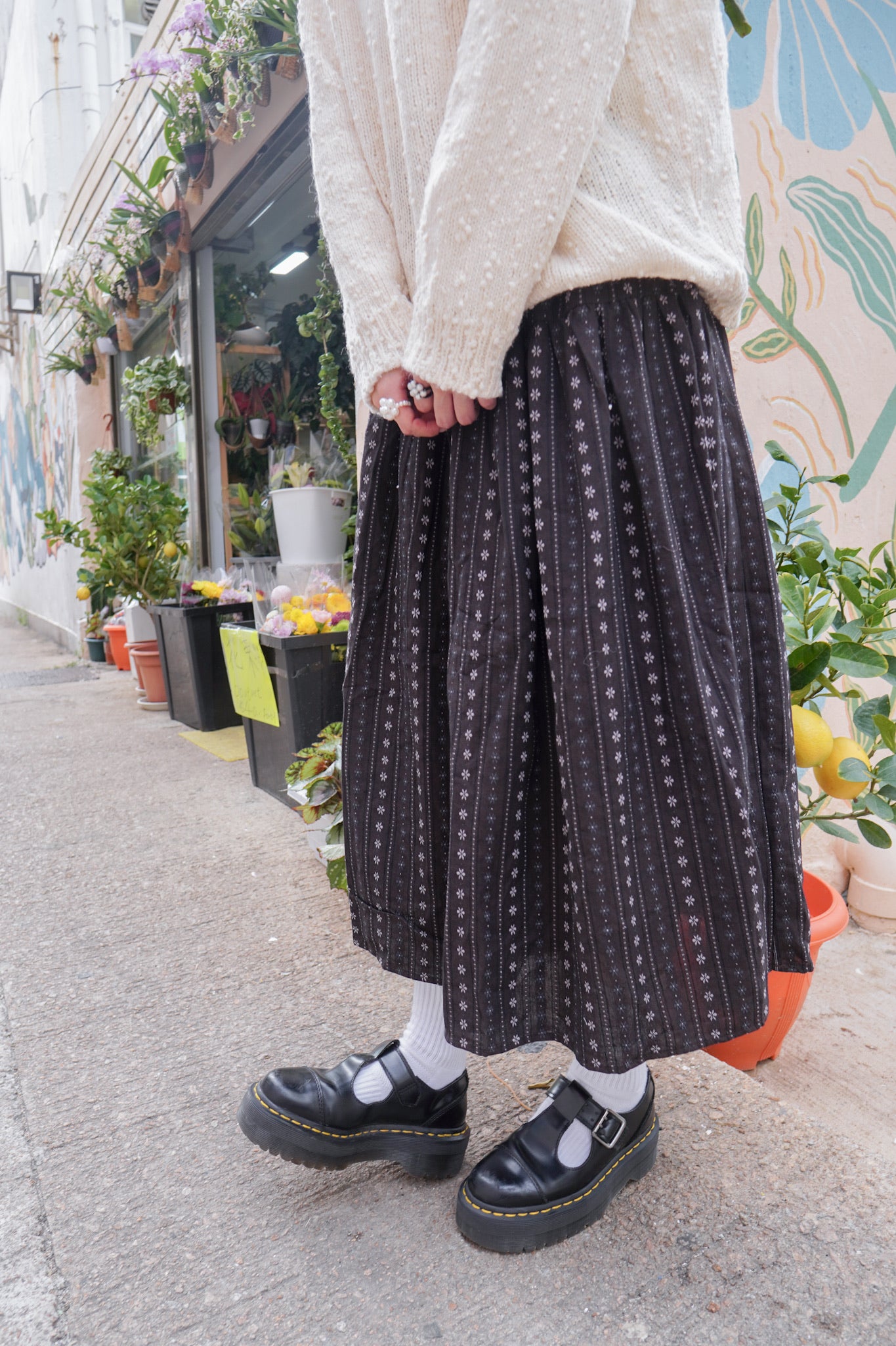 <現貨> 復古直紋碎花半身長裙