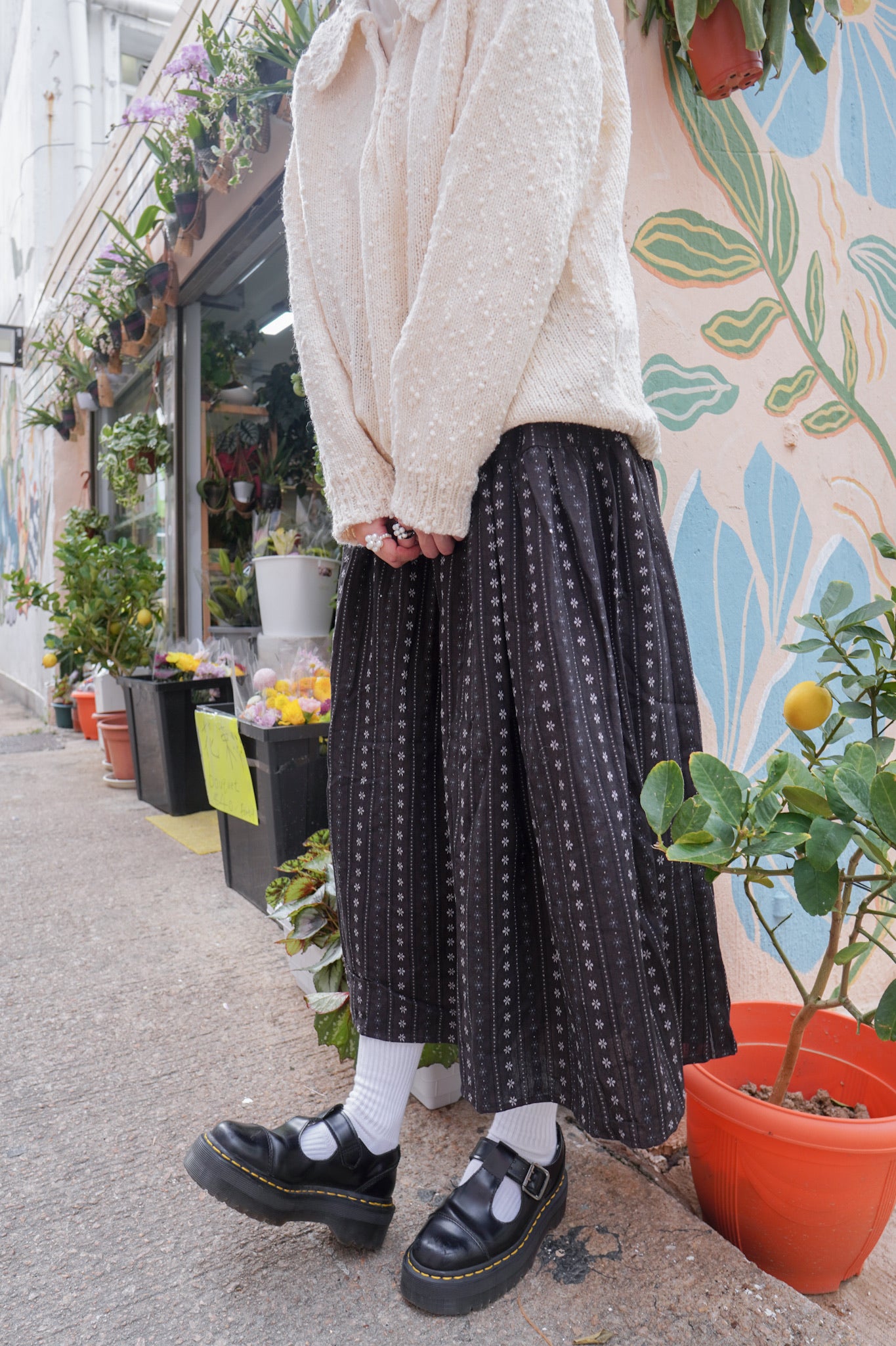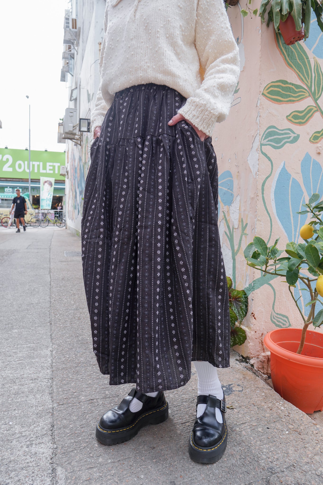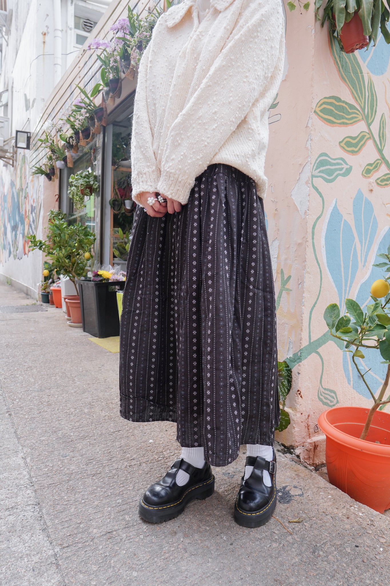 <現貨> 復古直紋碎花半身長裙
