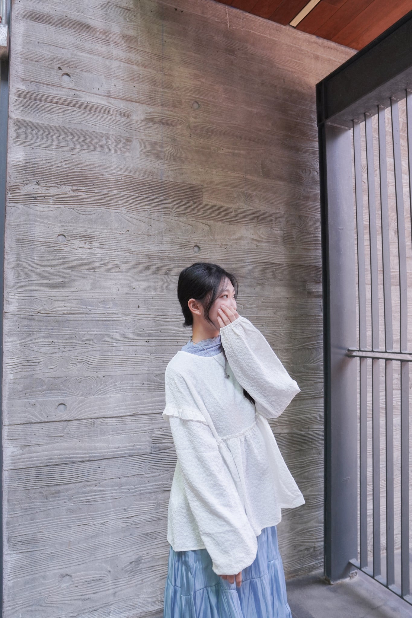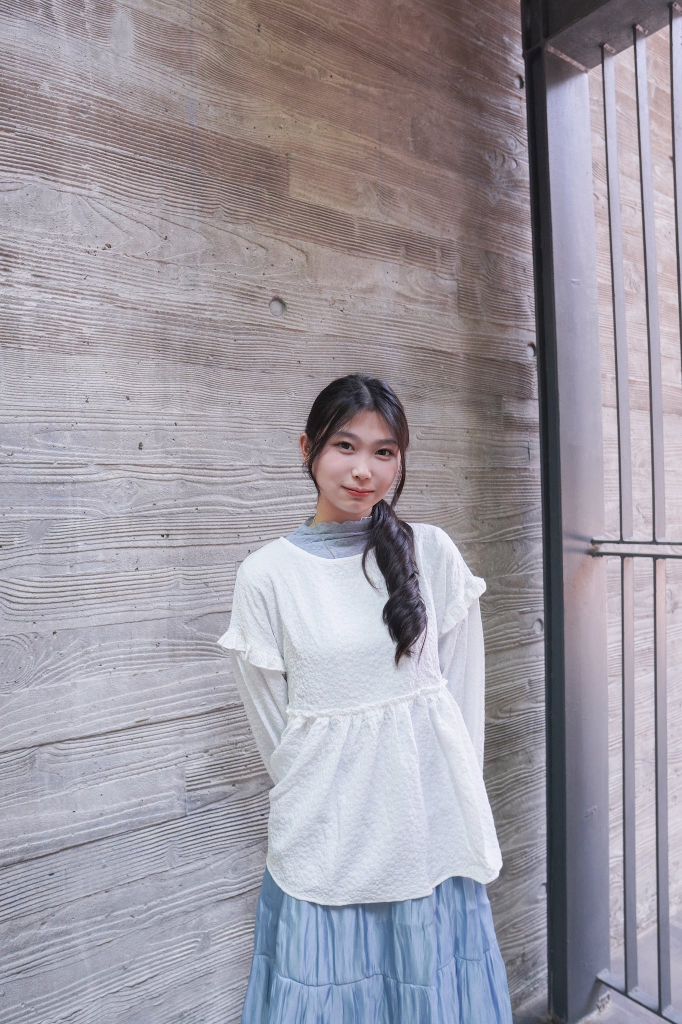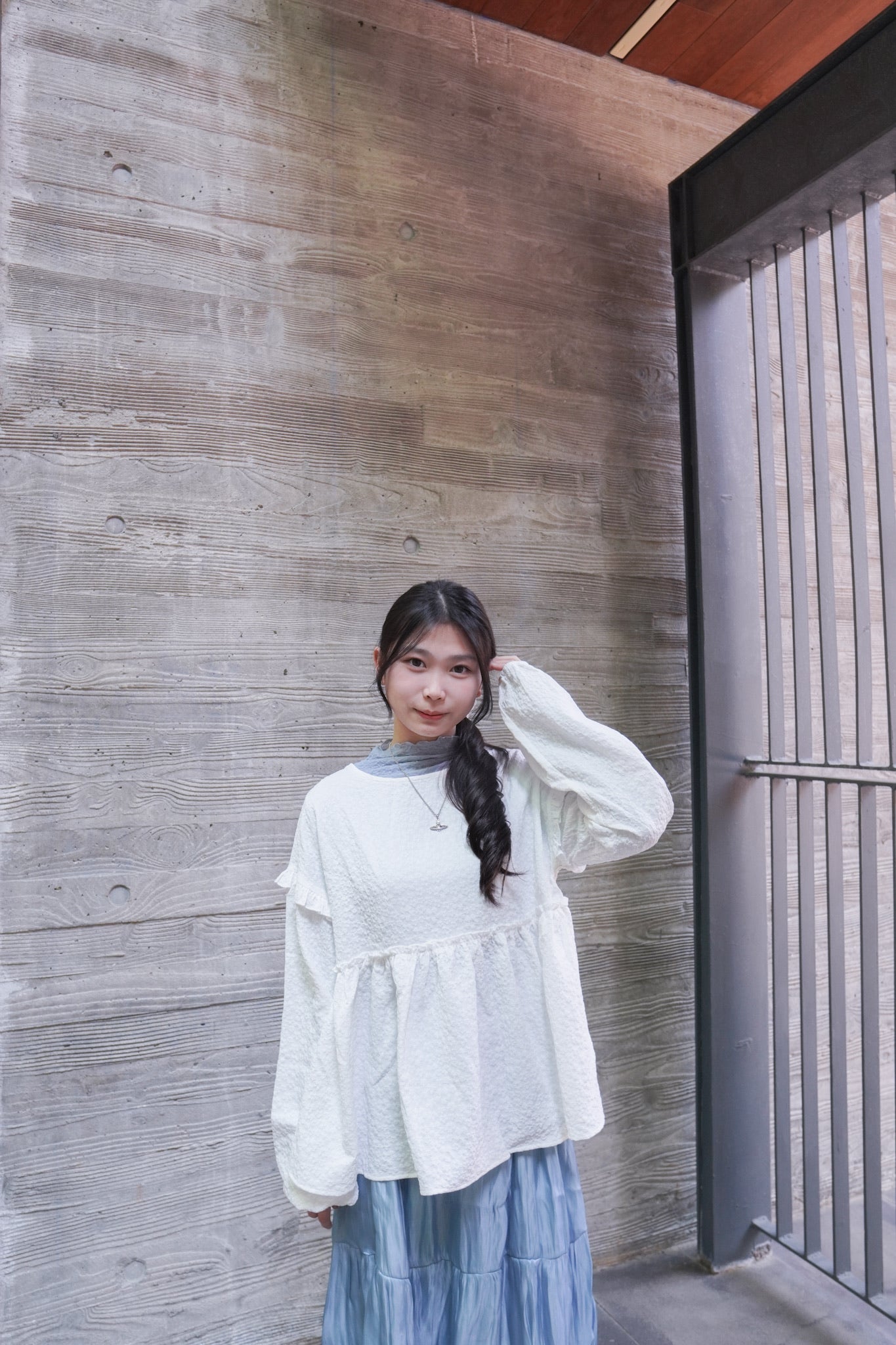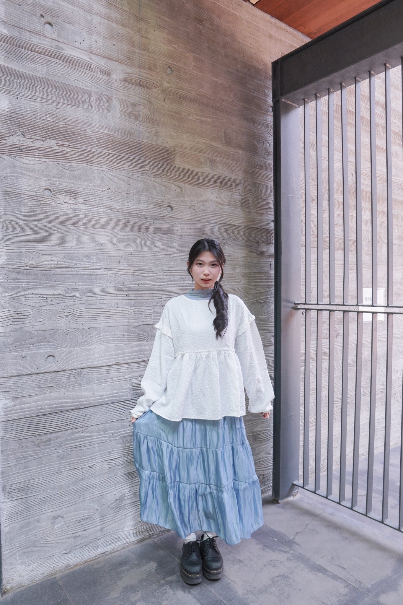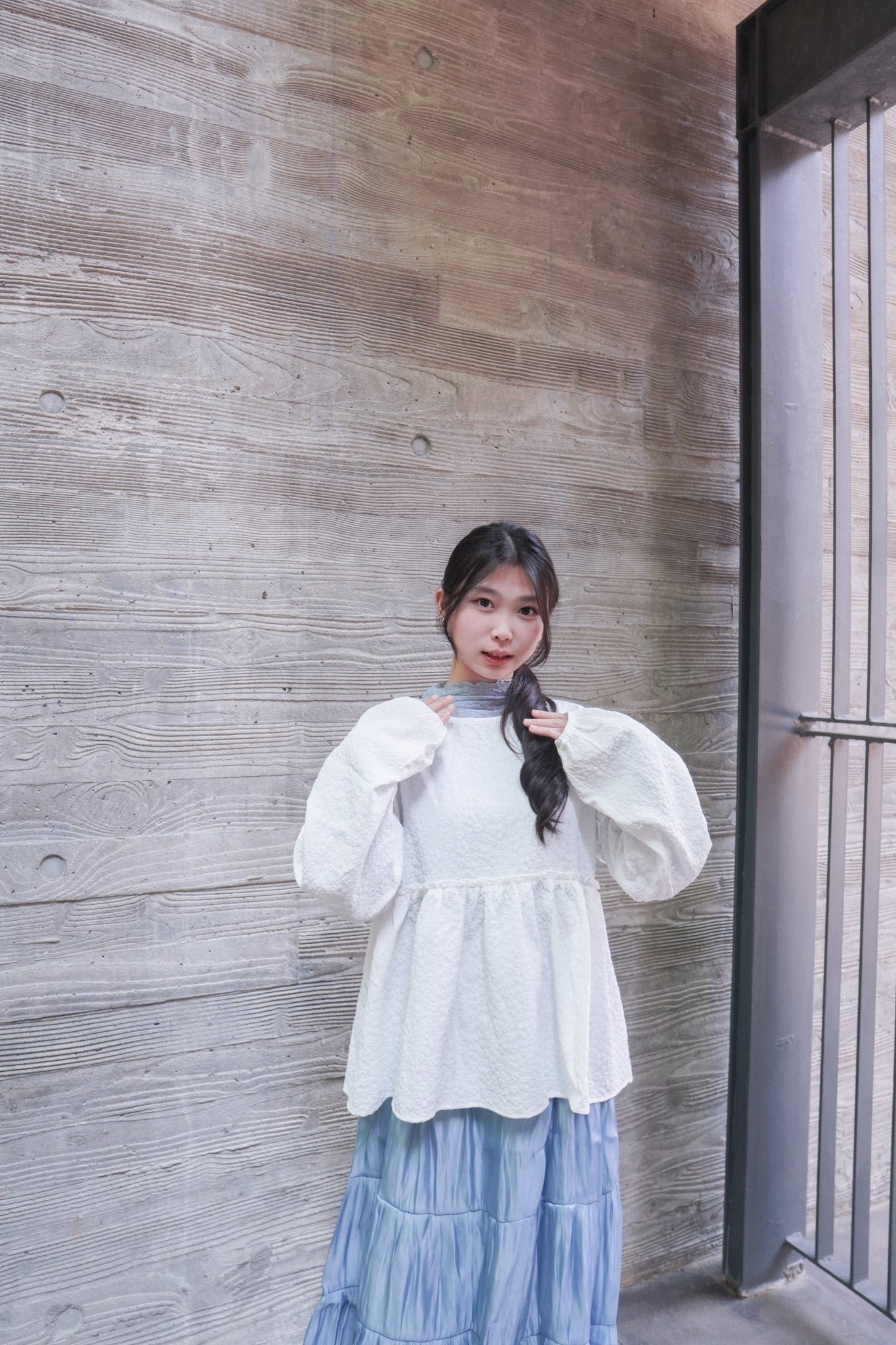 <現貨> 提花荷葉邊傘形圓領長袖上衣