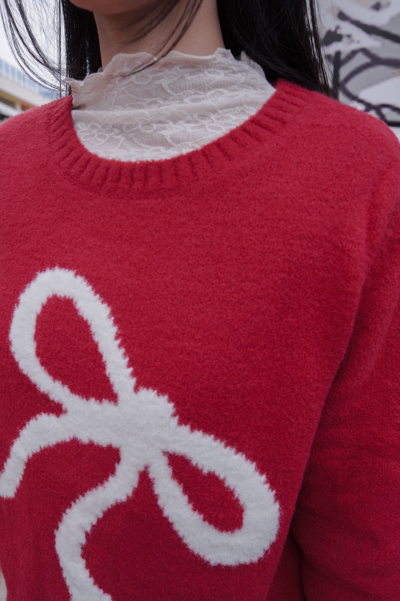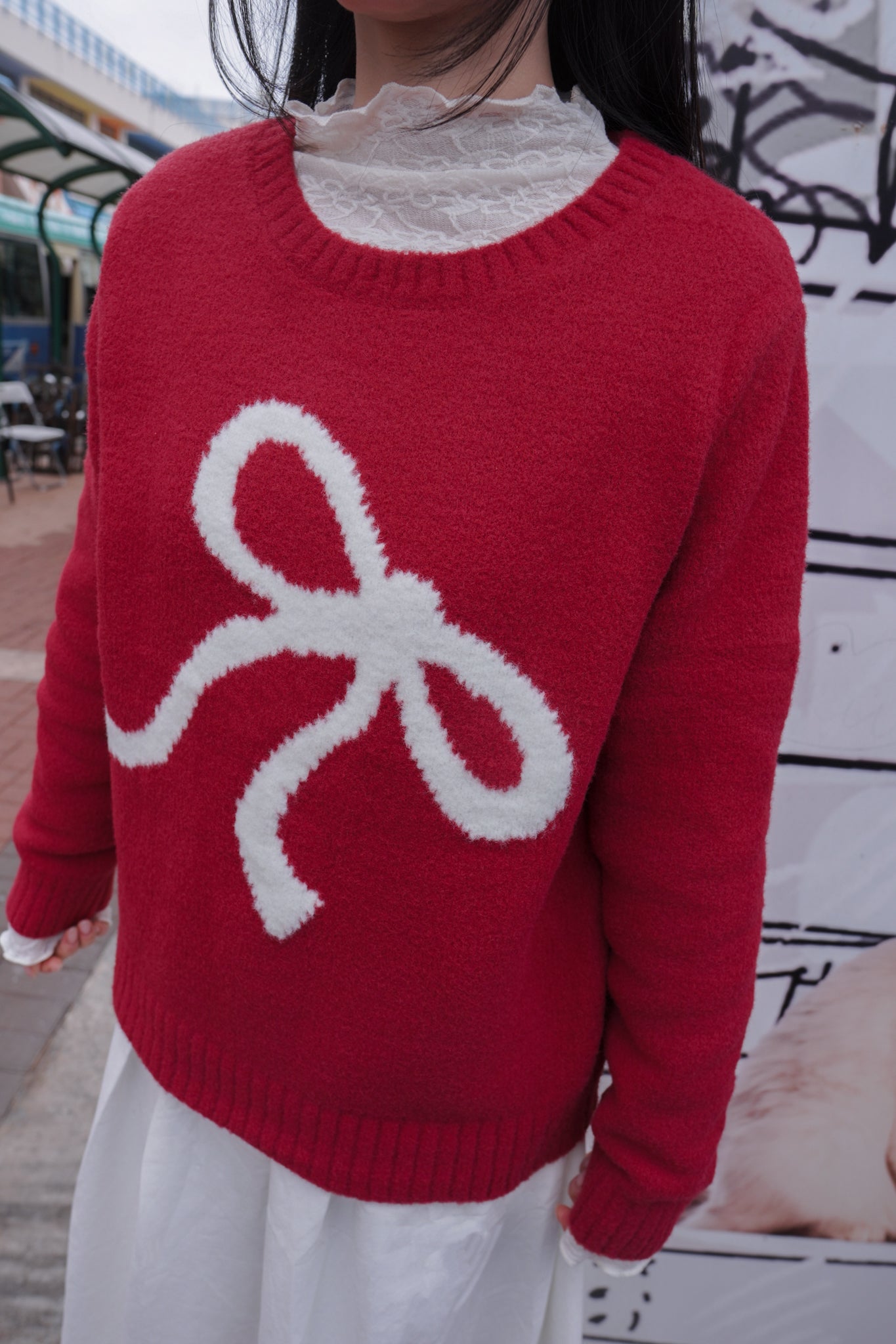 <現貨> 新年限定🧧🍊大紅超大蝴蝶結針織上衣