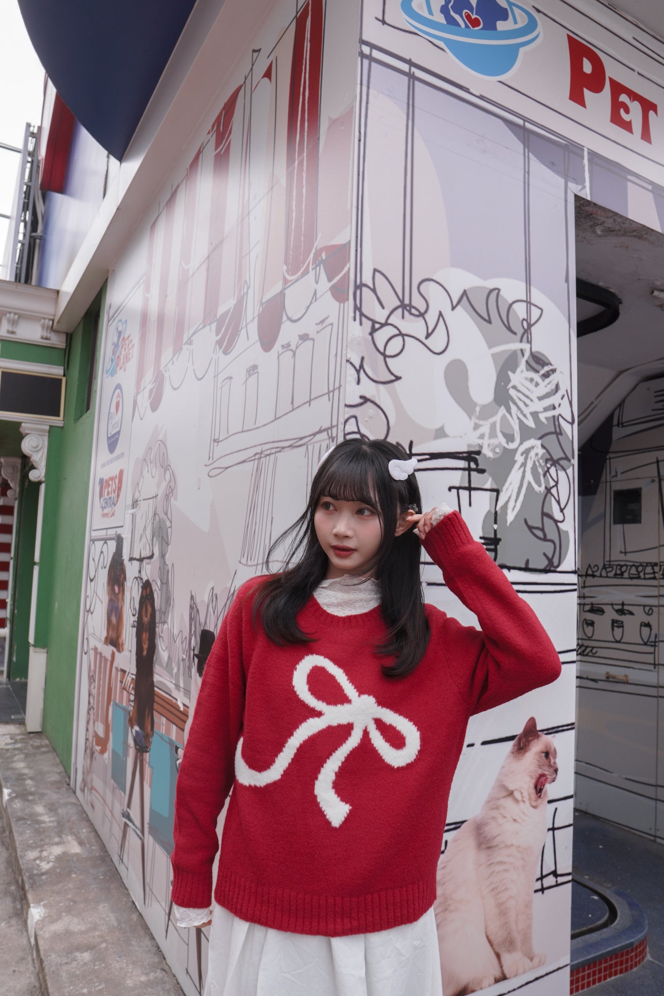 大紅蝴蝶結針織上衣 一著秒變利是封收割機🧧✨
