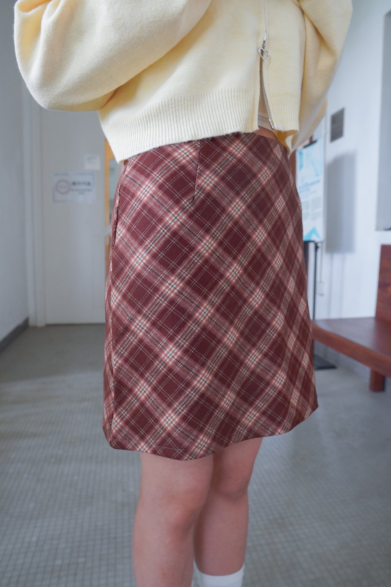 <現貨> 自家製 格紋撞色毛呢半身短裙| 兩色入