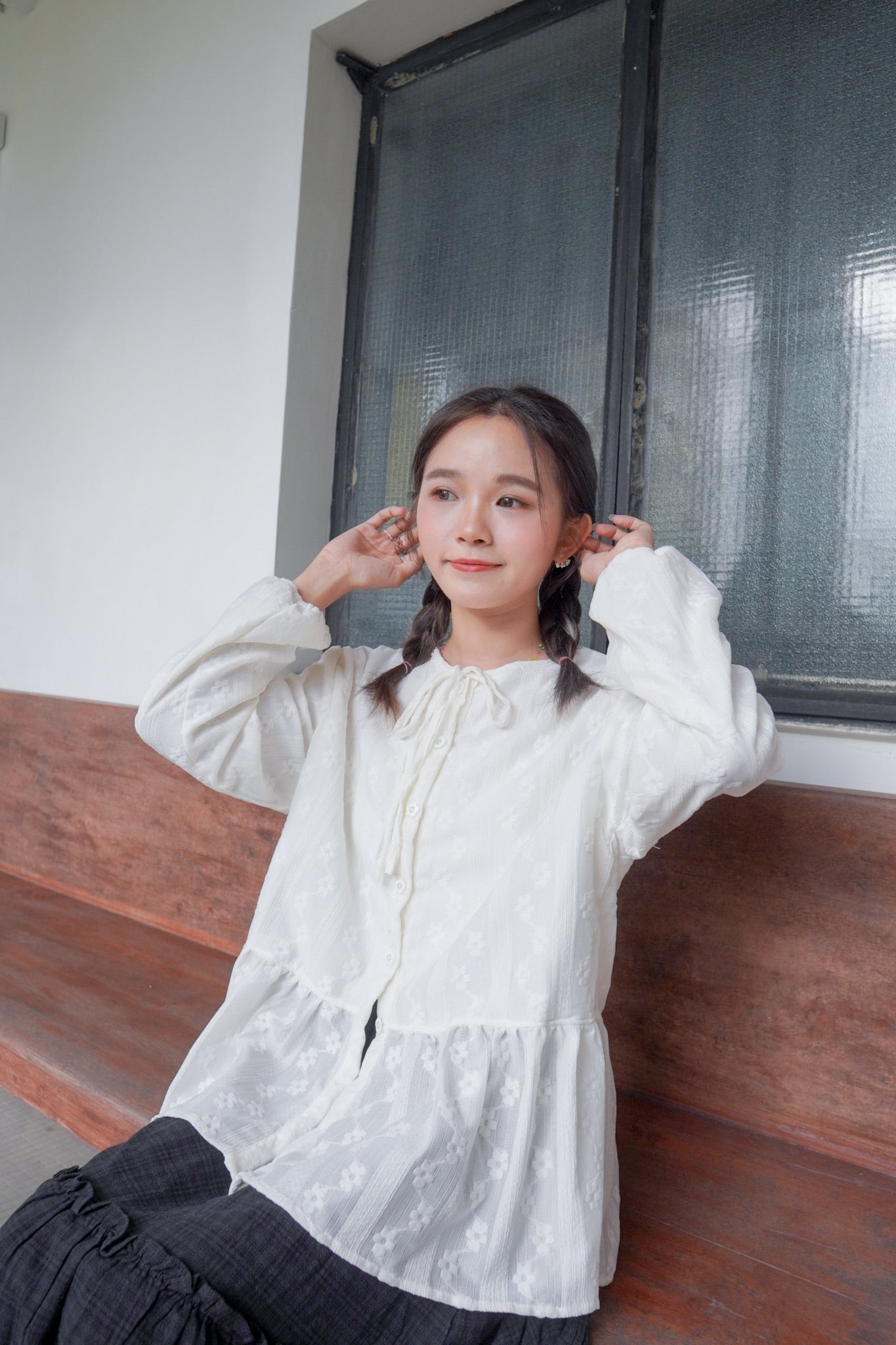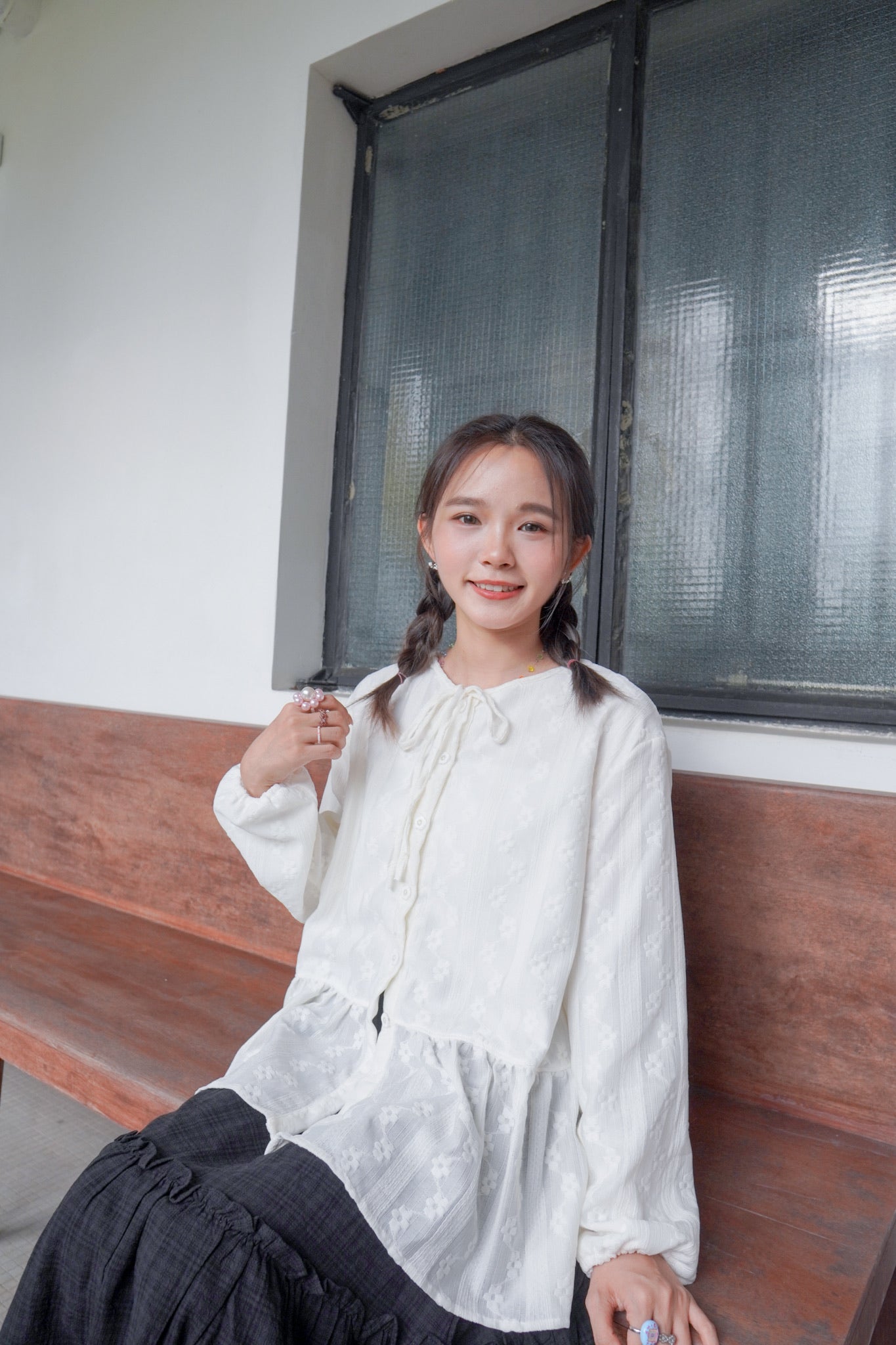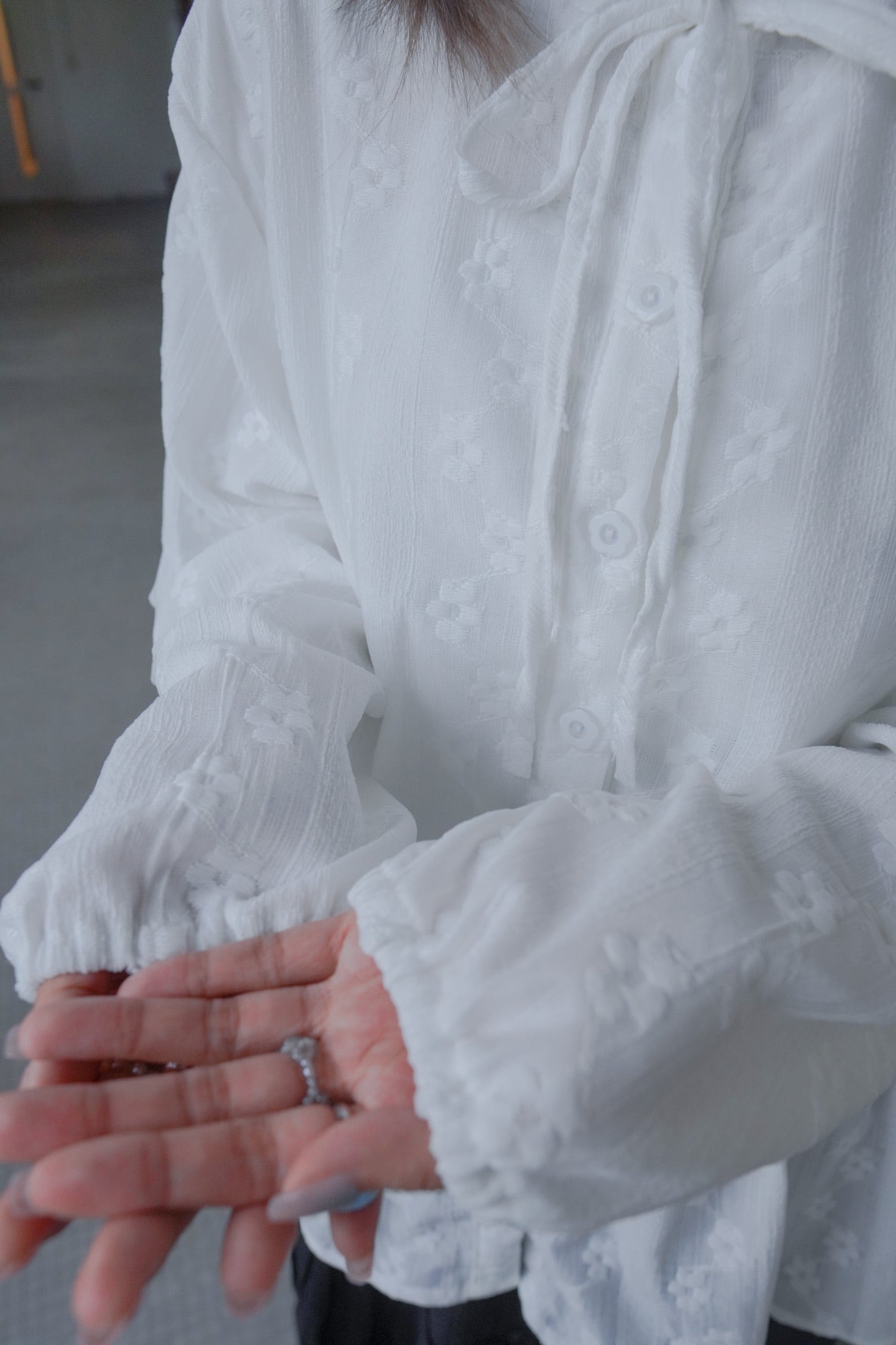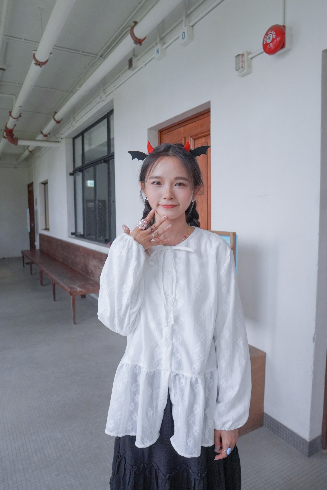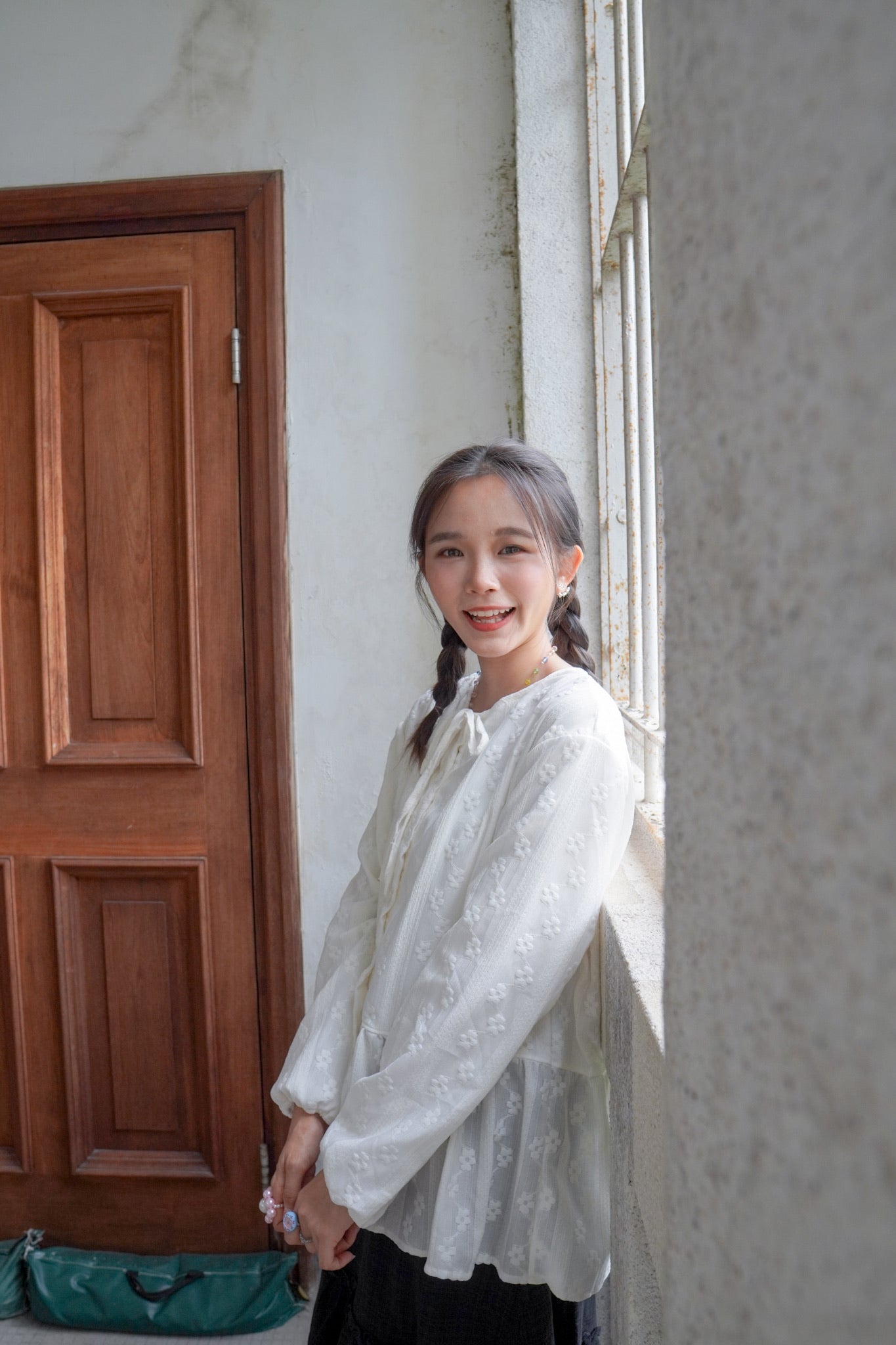 <預訂> 獨家款 泰國人手製作! 刺繡立體小花卉綁帶開胸泡泡袖上衣|兩色入