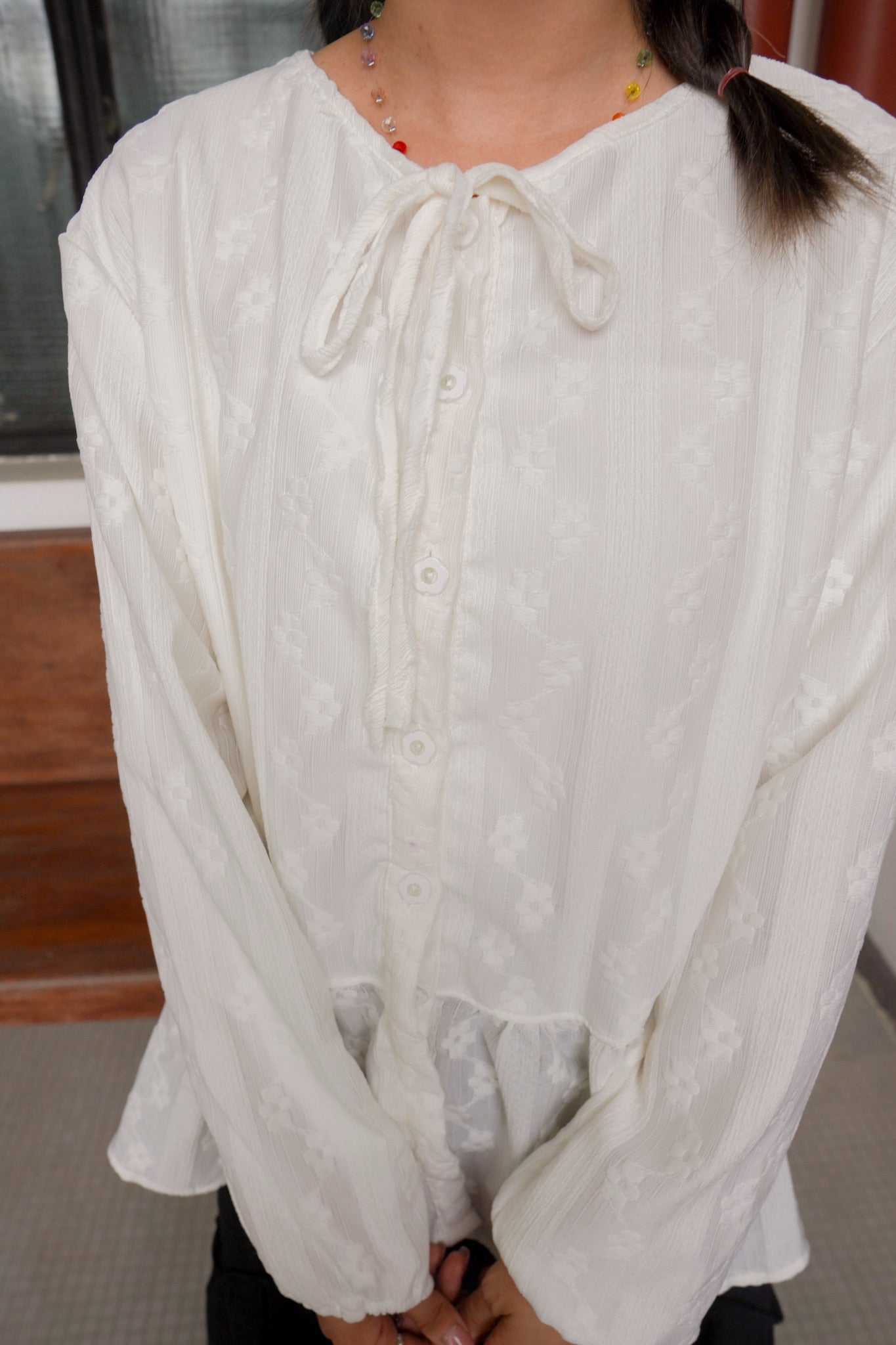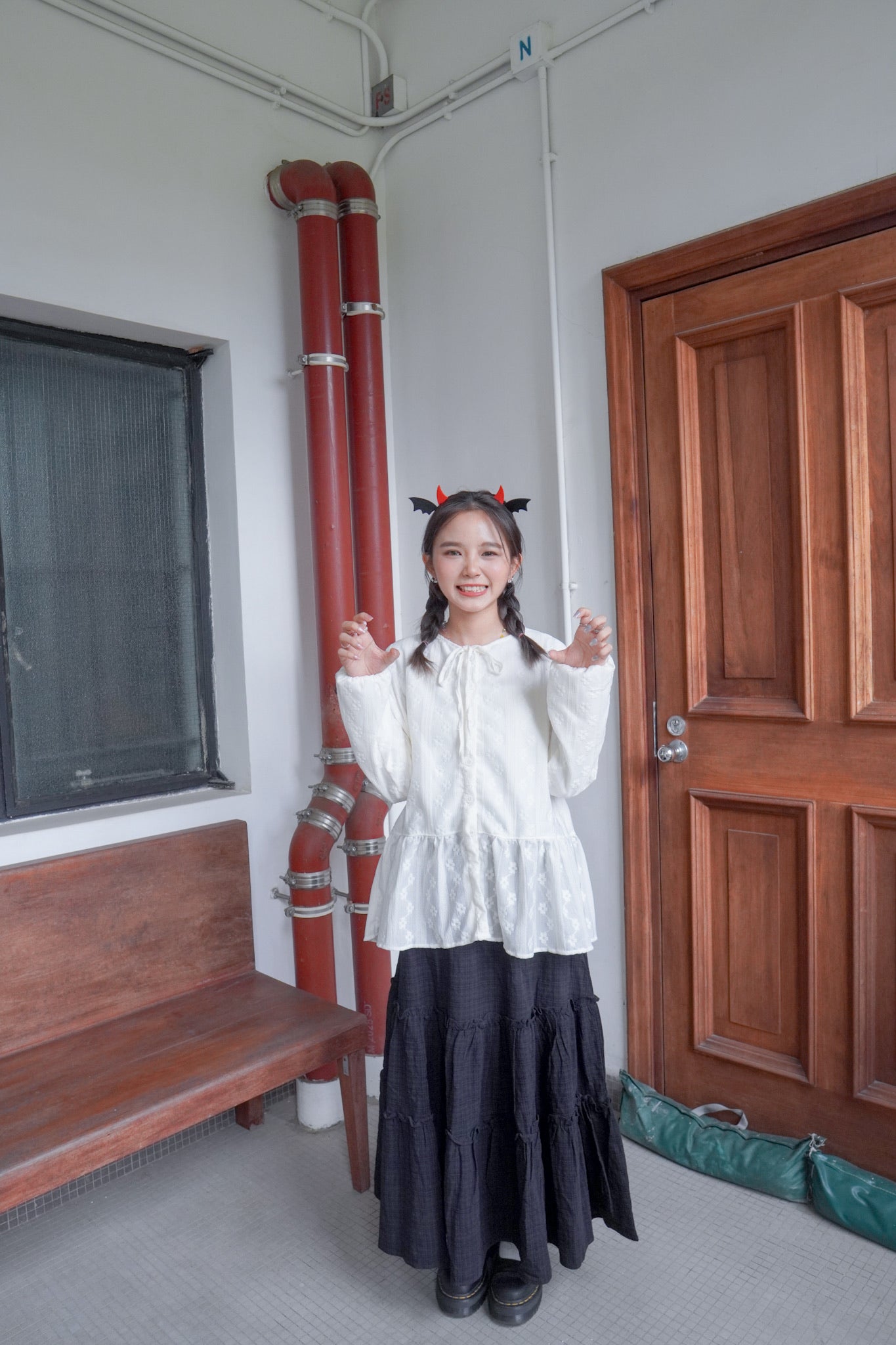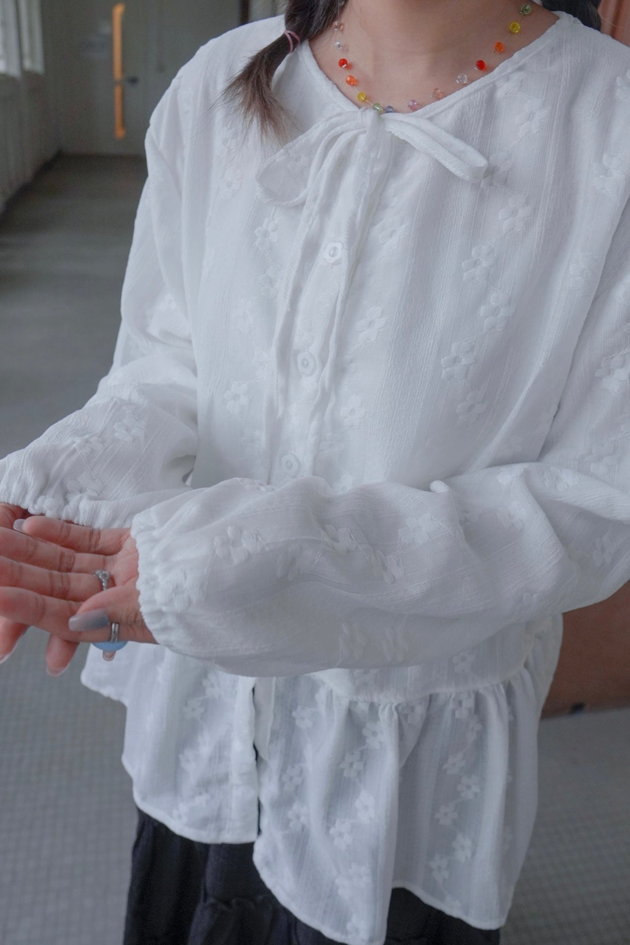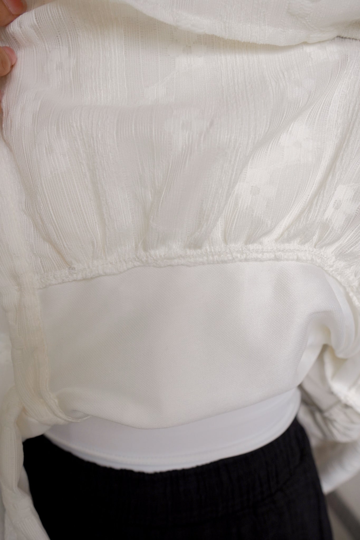 <預訂> 獨家款 泰國人手製作! 刺繡立體小花卉綁帶開胸泡泡袖上衣|兩色入
