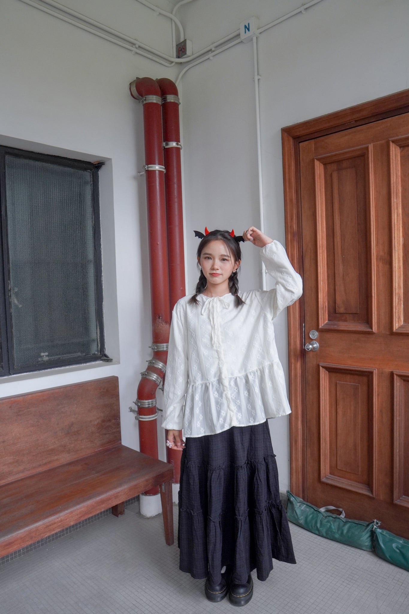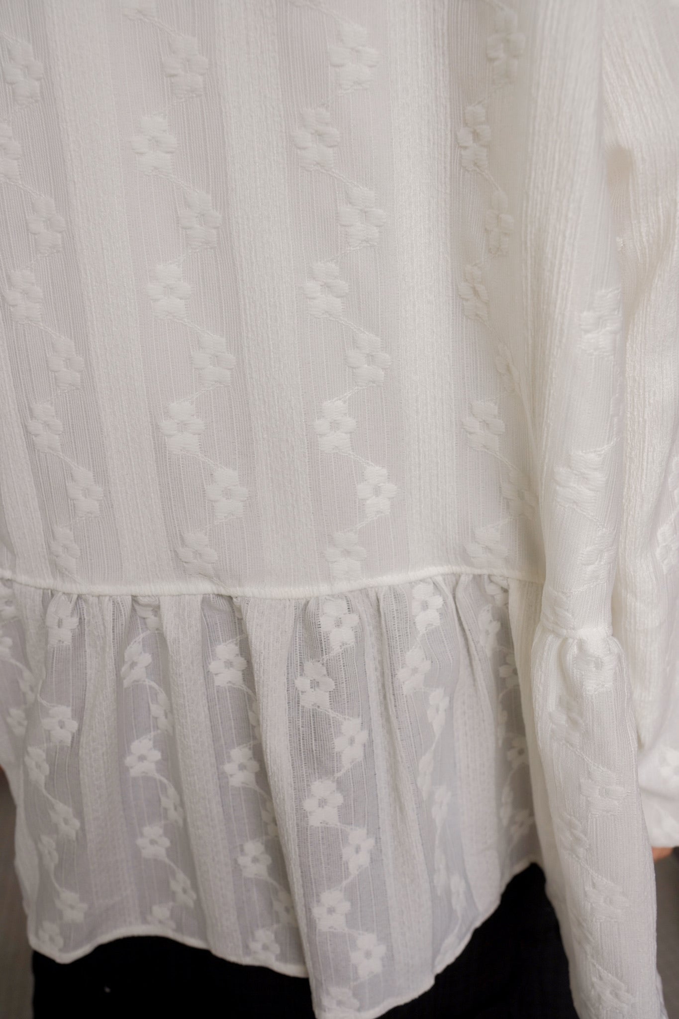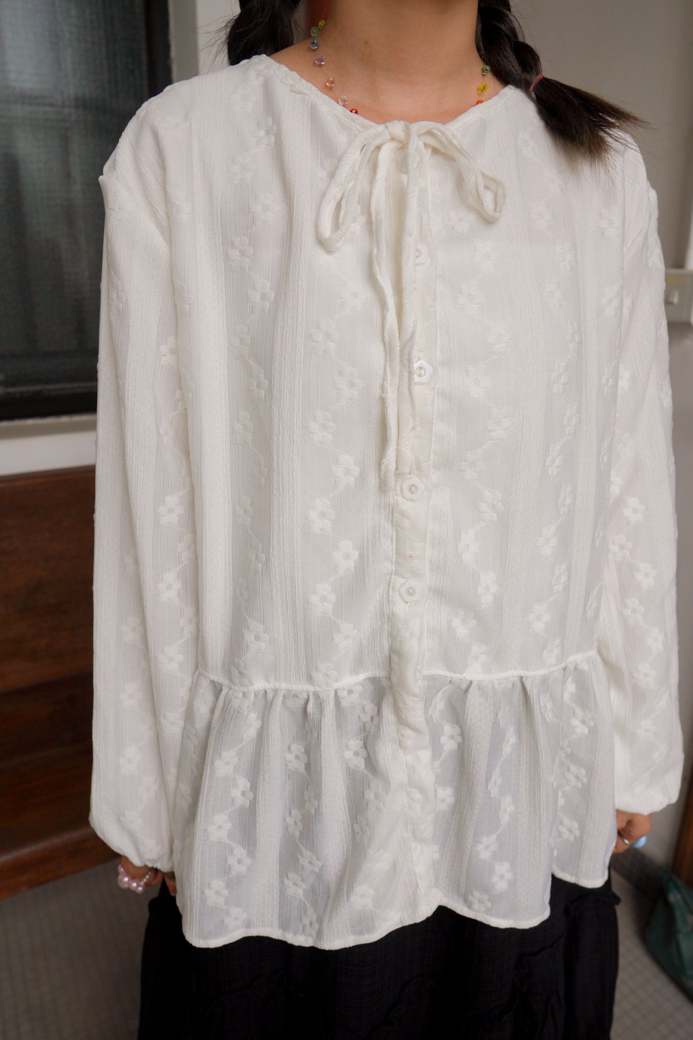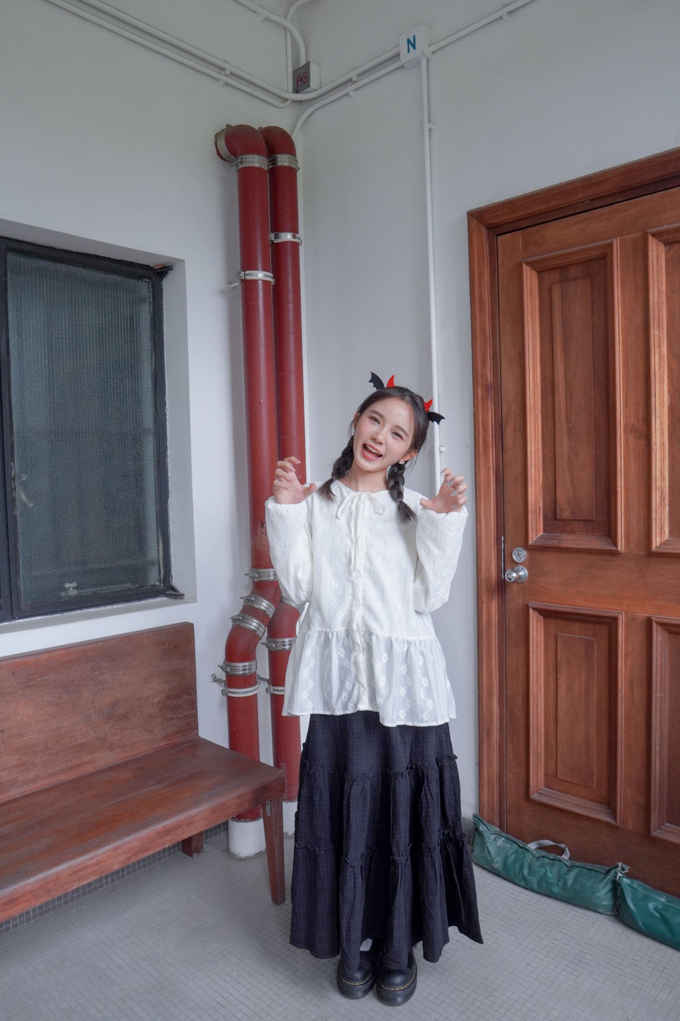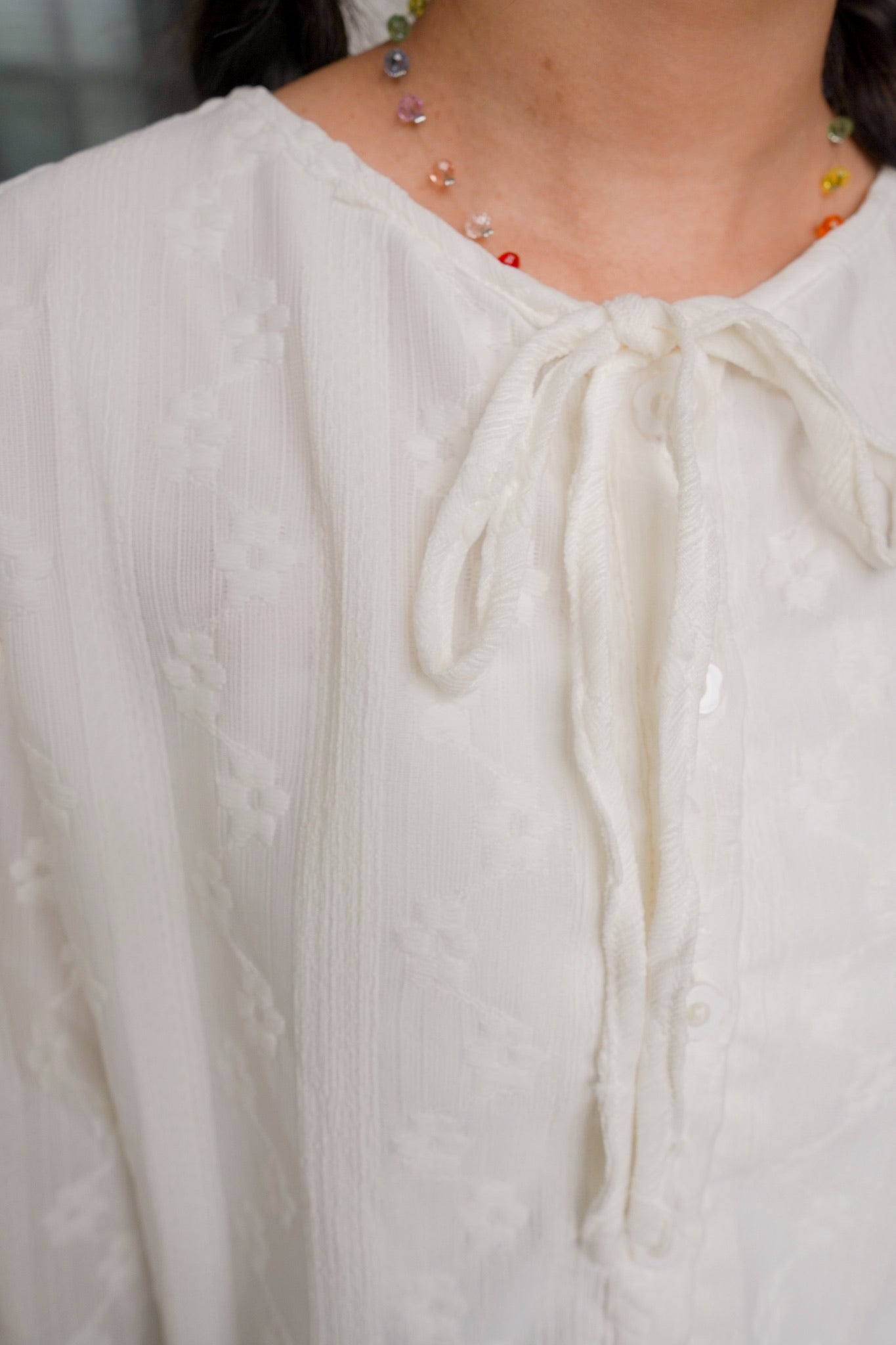 <預訂> 獨家款 泰國人手製作! 刺繡立體小花卉綁帶開胸泡泡袖上衣|兩色入