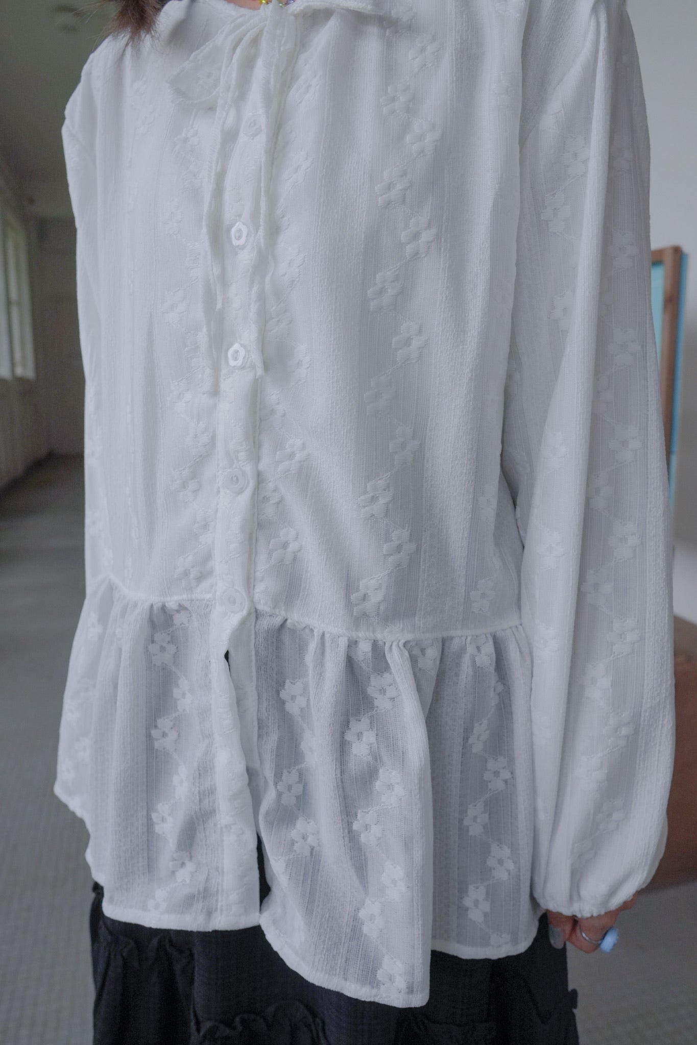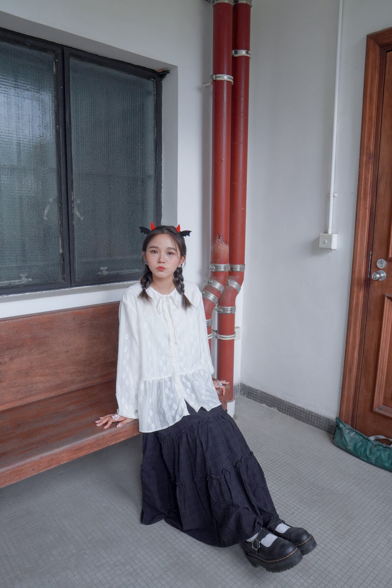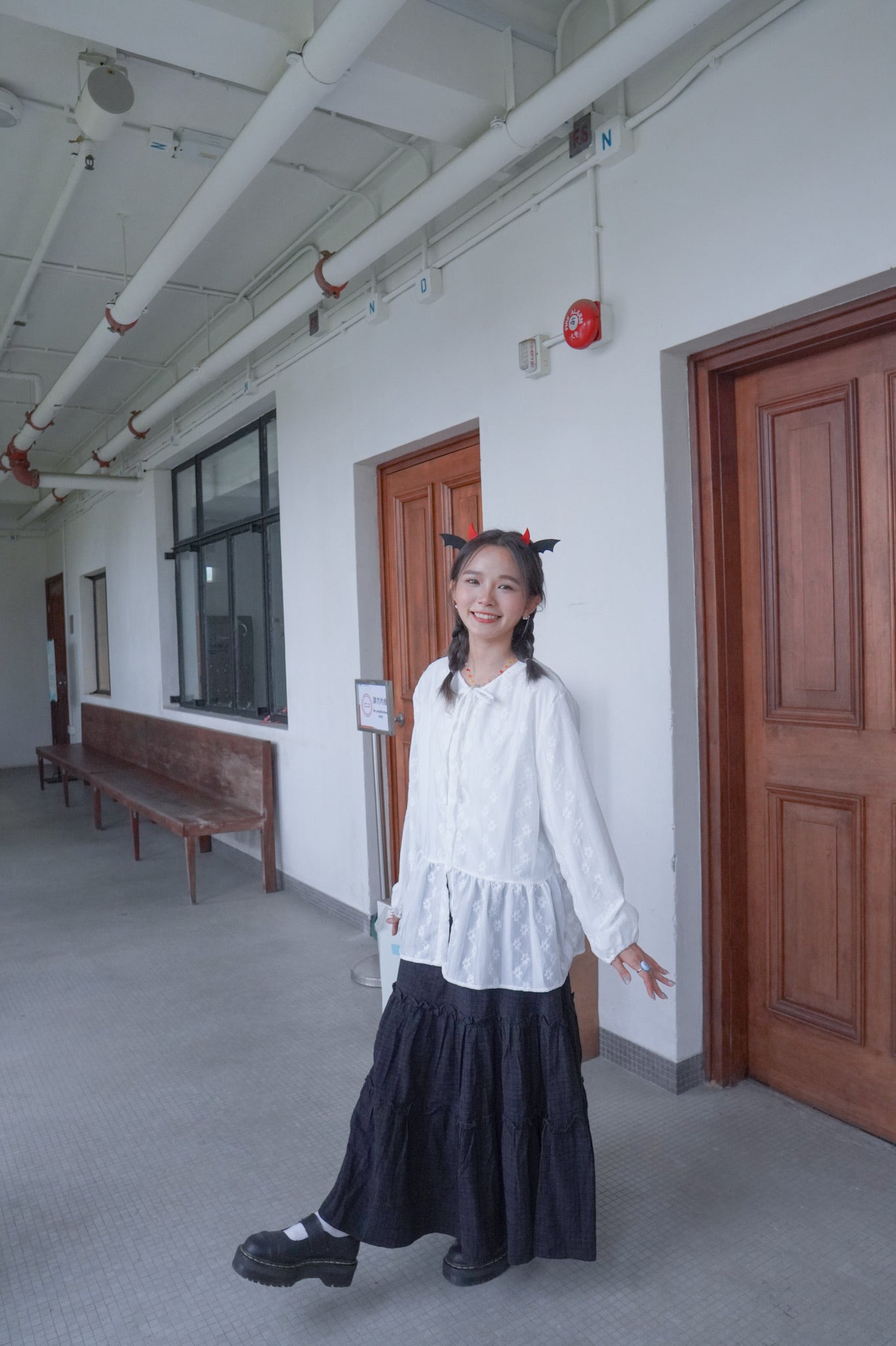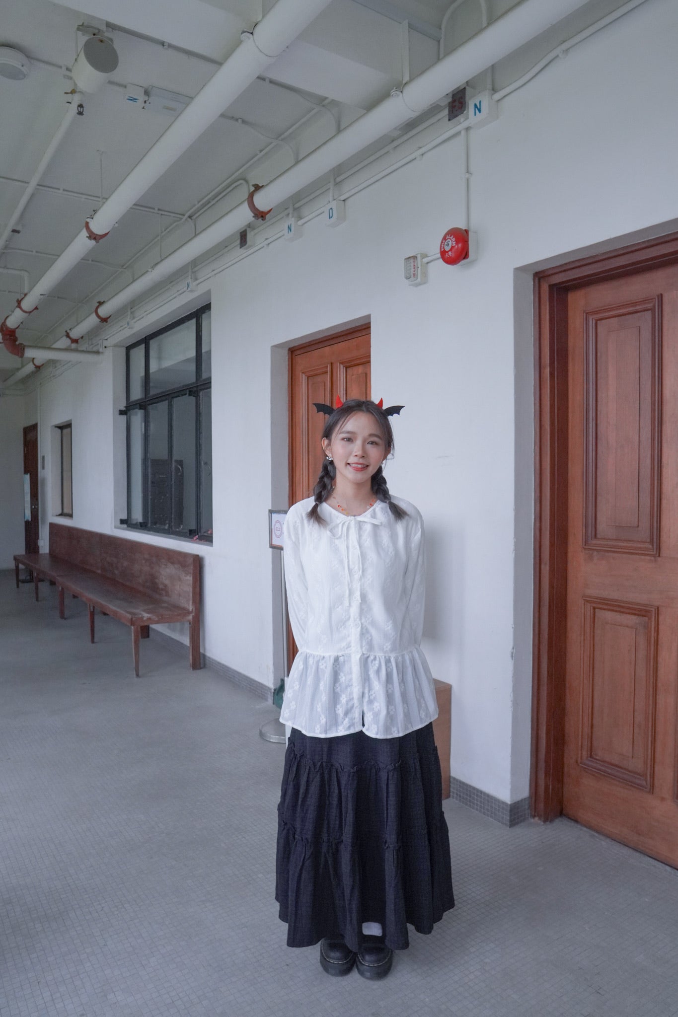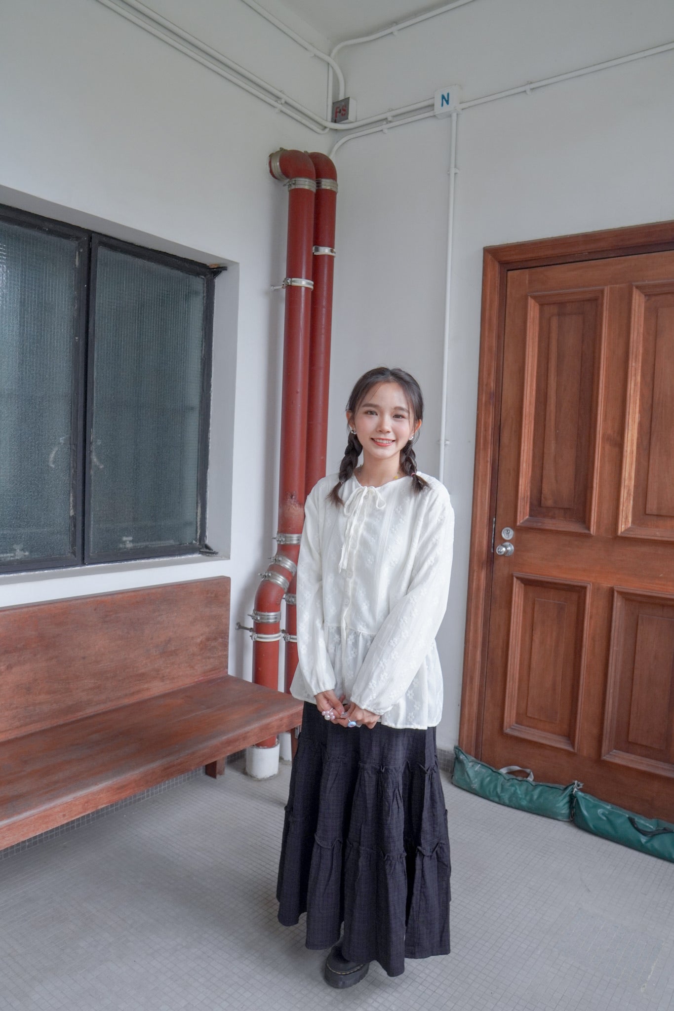 <預訂> 獨家款 泰國人手製作! 刺繡立體小花卉綁帶開胸泡泡袖上衣|兩色入