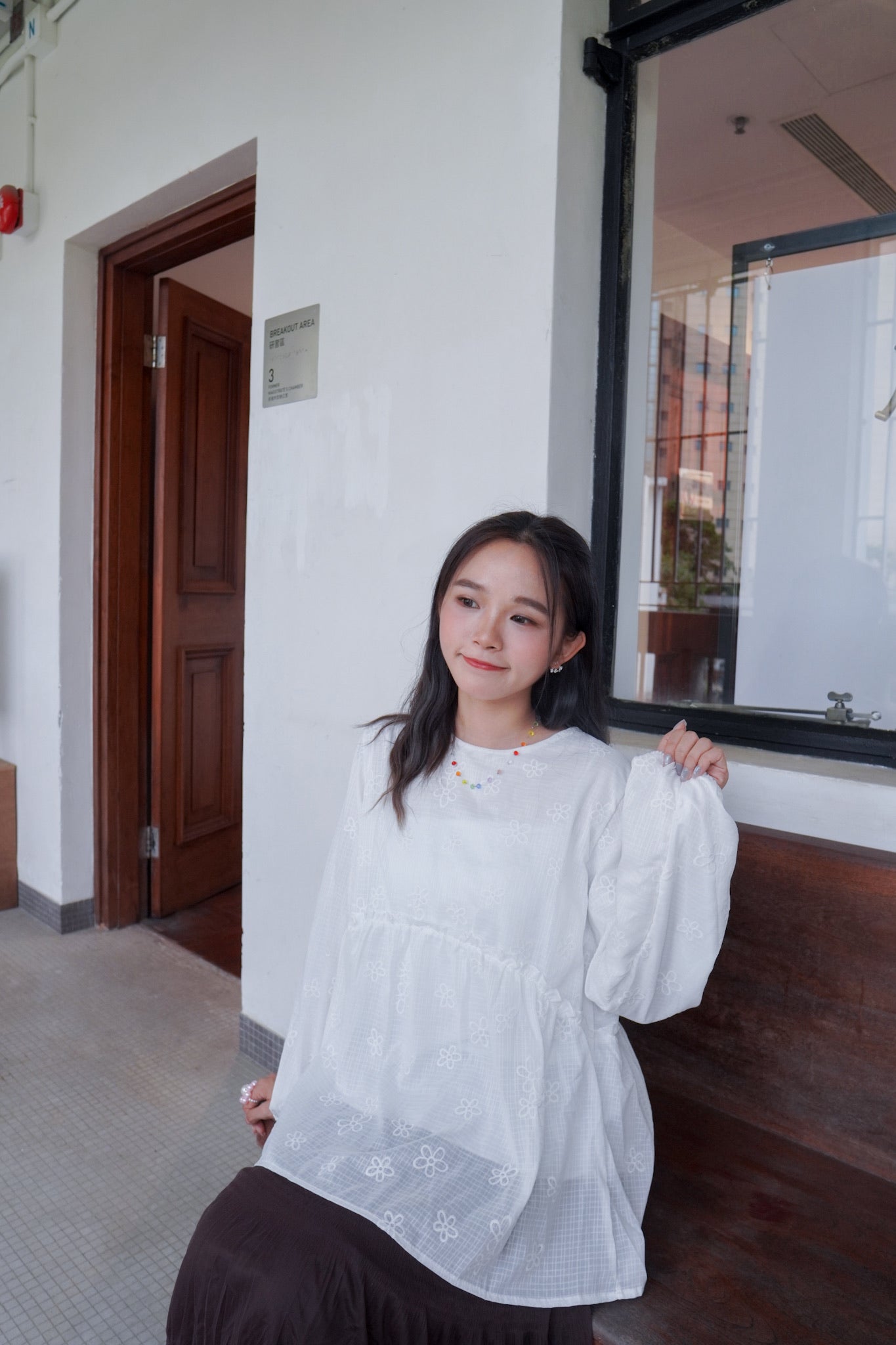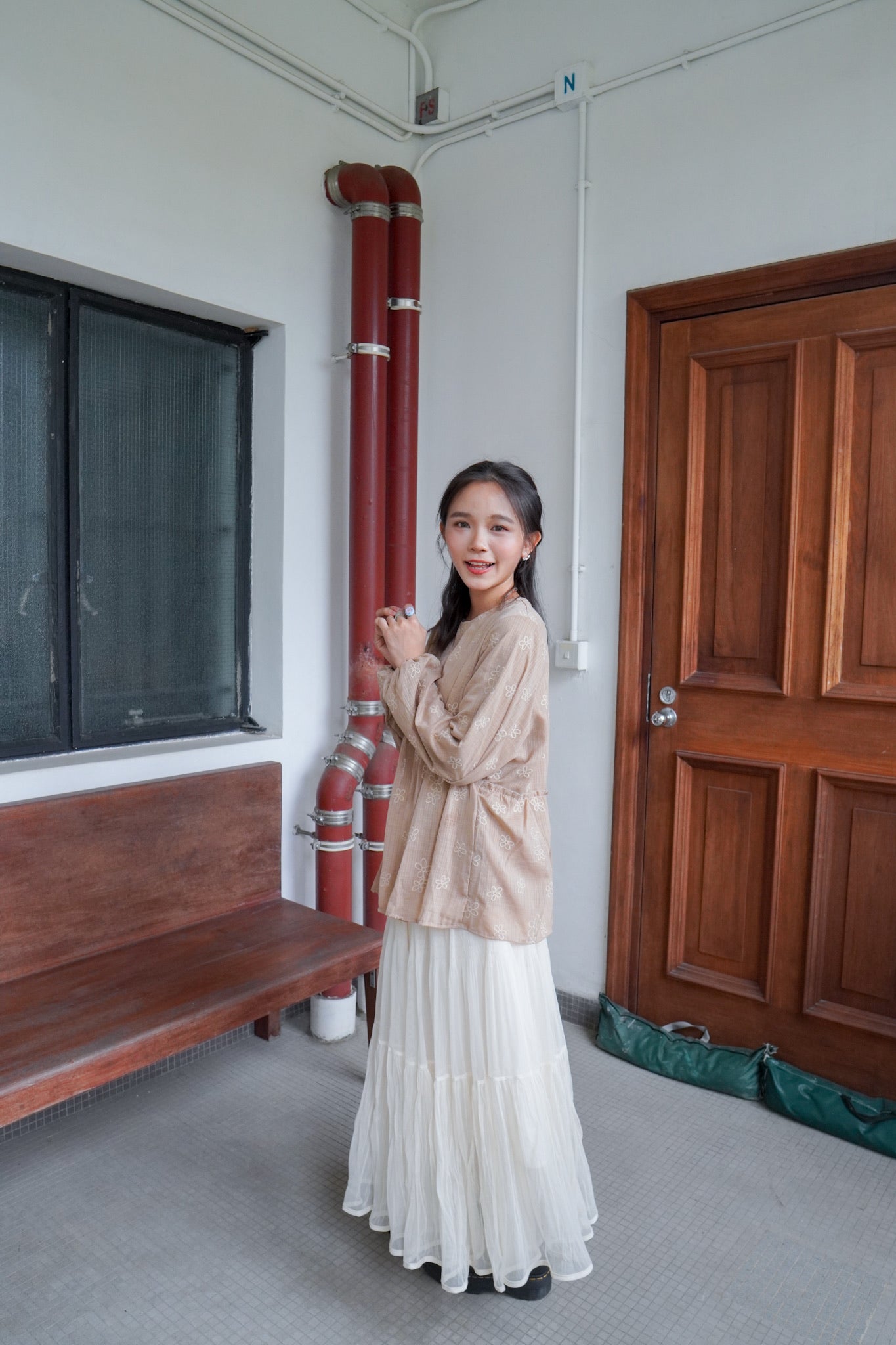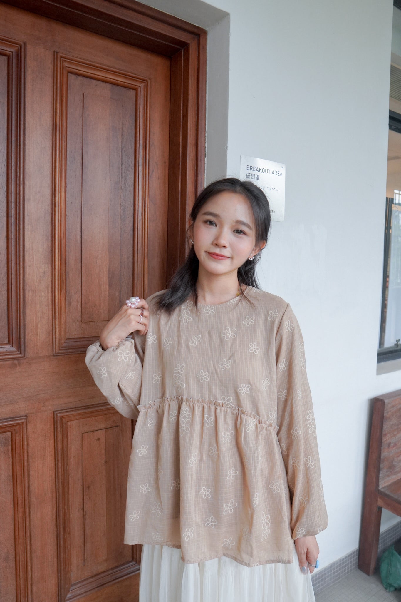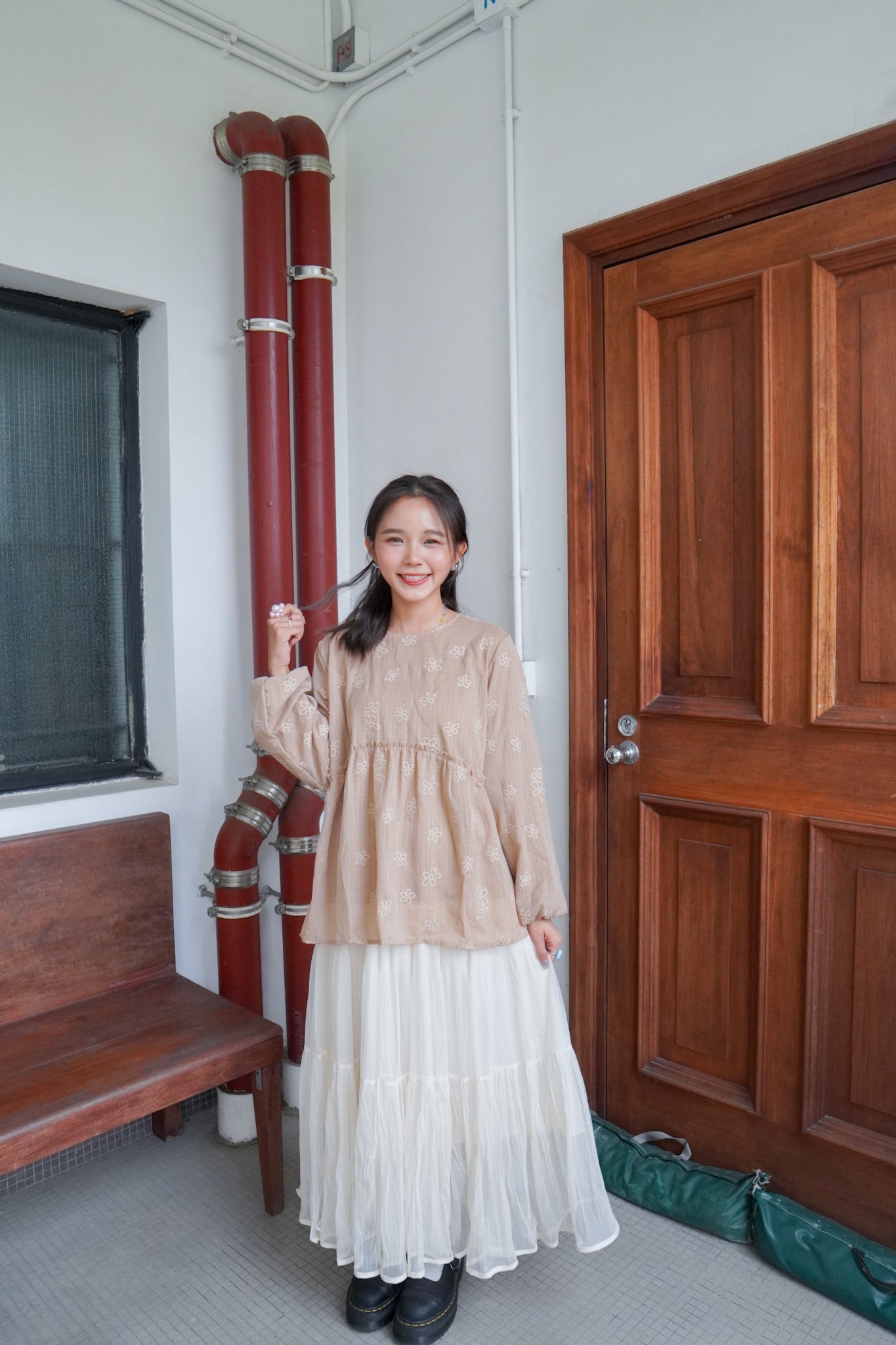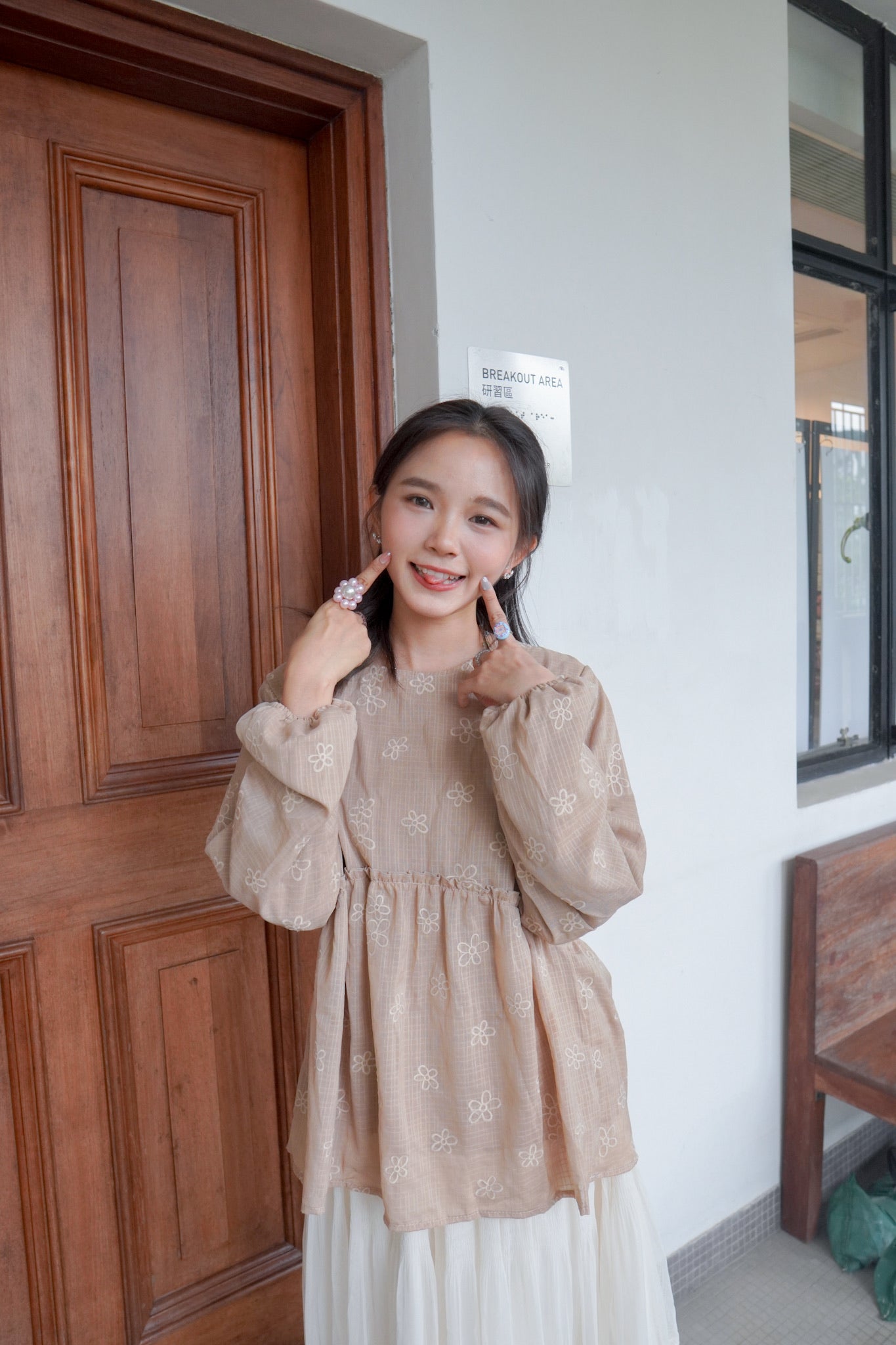 <現貨> 獨家款 泰國人手製作! 格紋小花卉泡泡袖上衣|兩色入