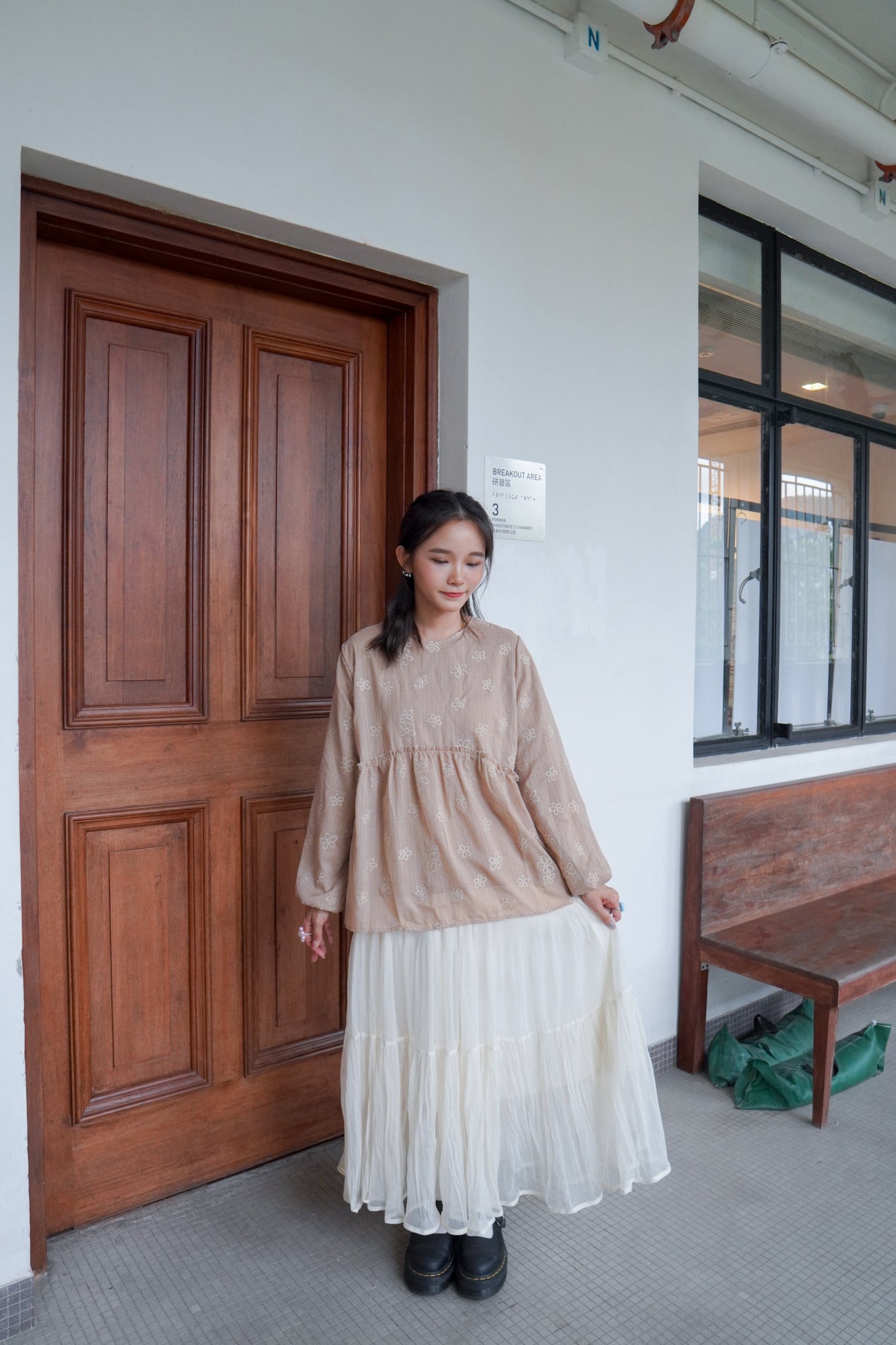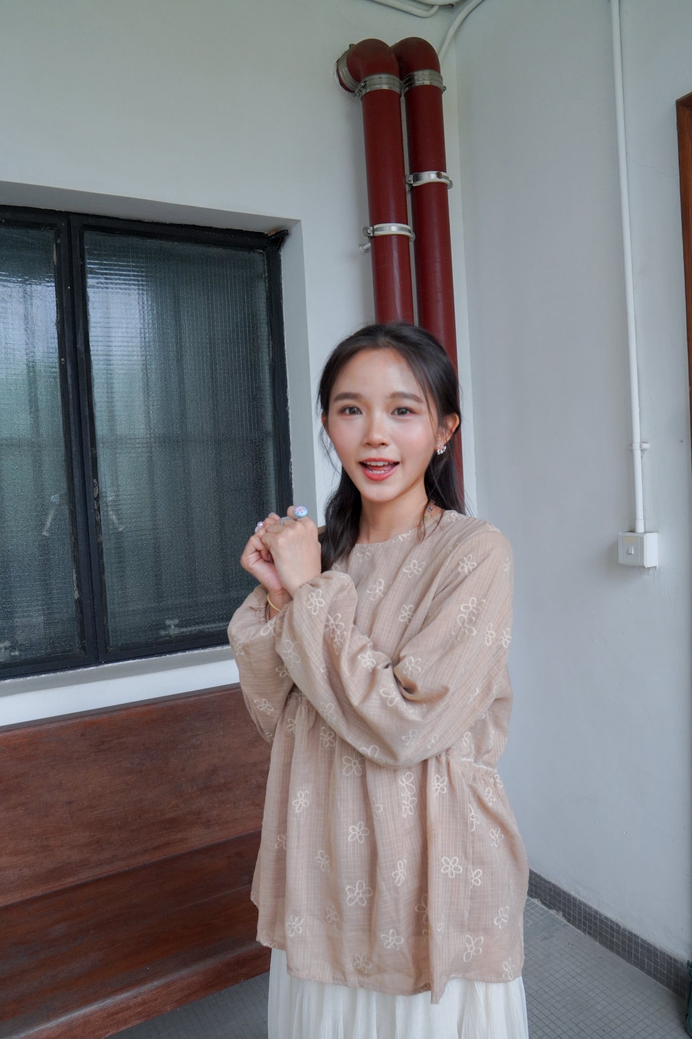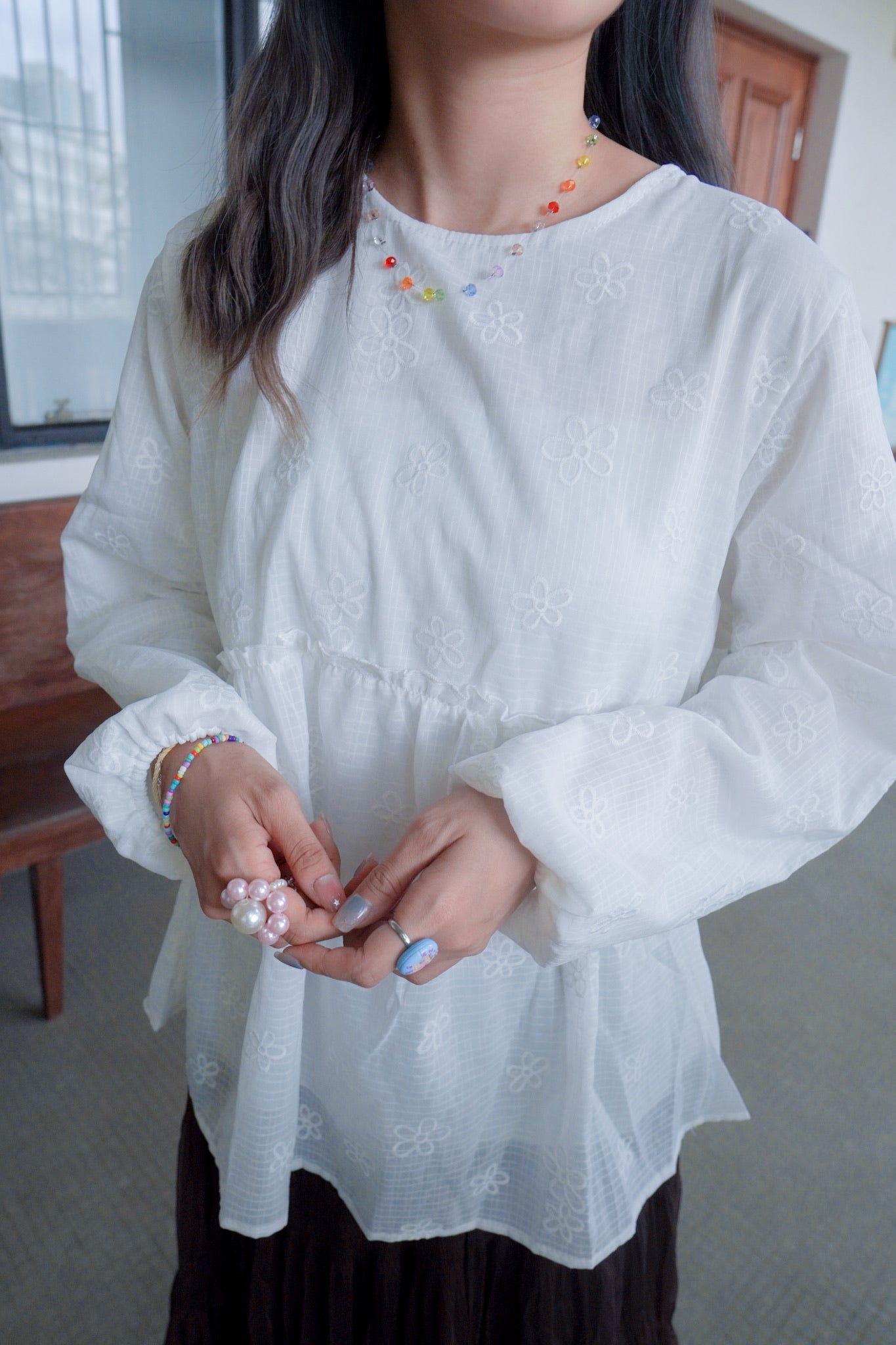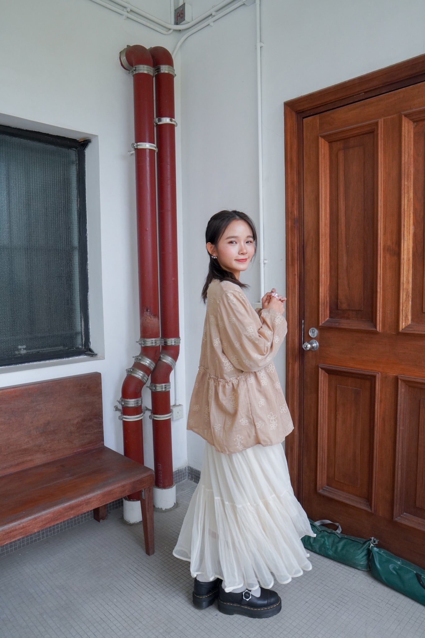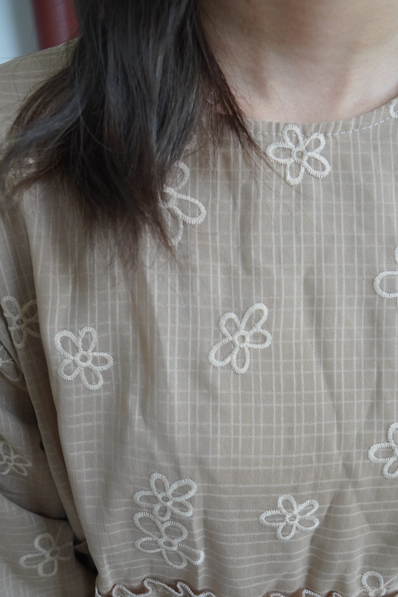 <現貨> 獨家款 泰國人手製作! 格紋小花卉泡泡袖上衣|兩色入