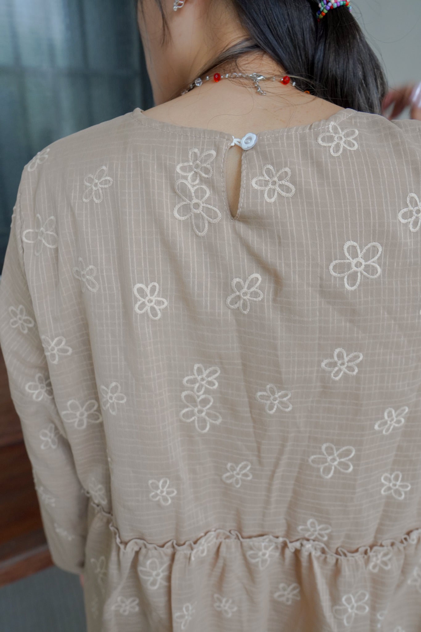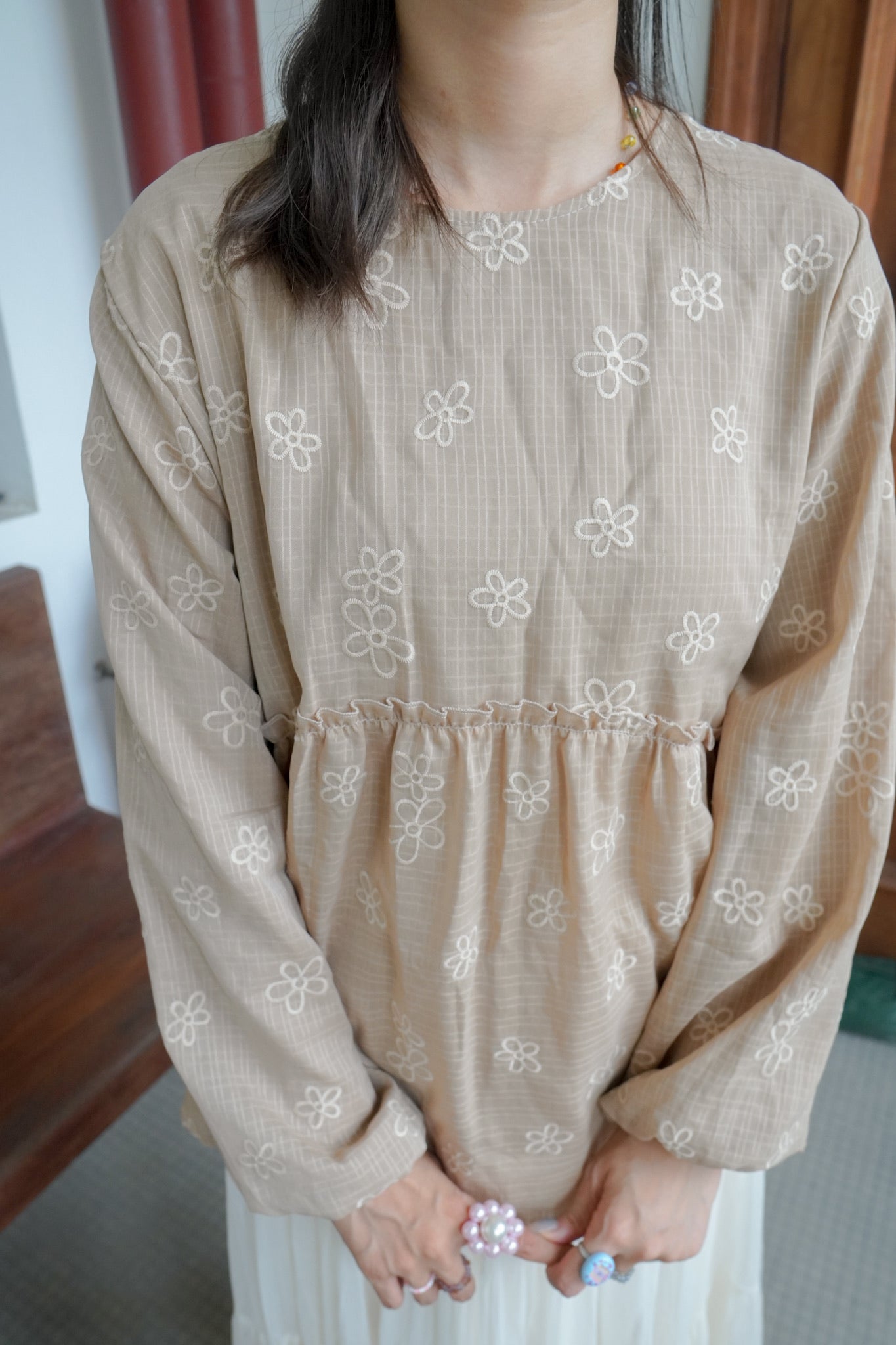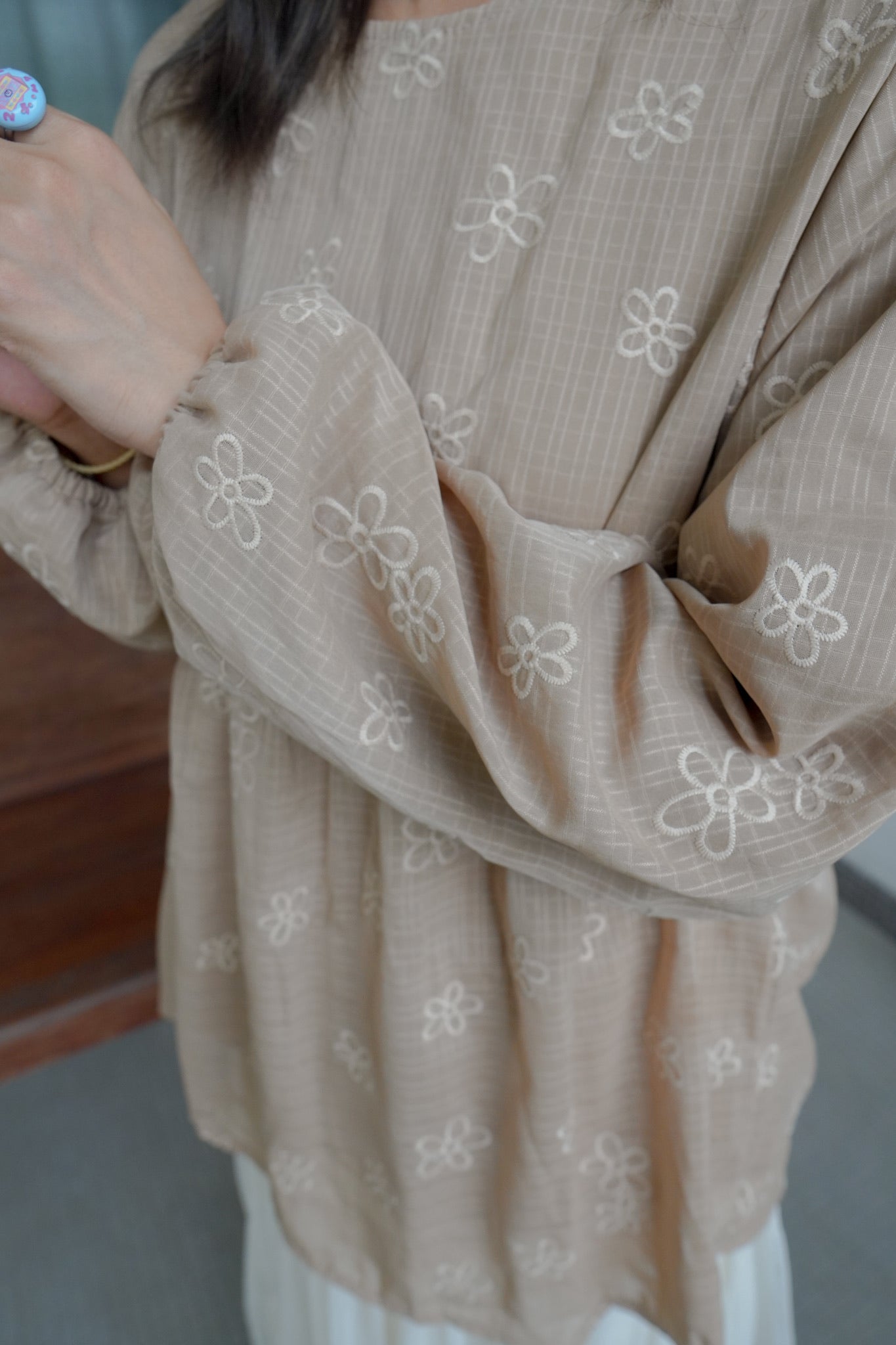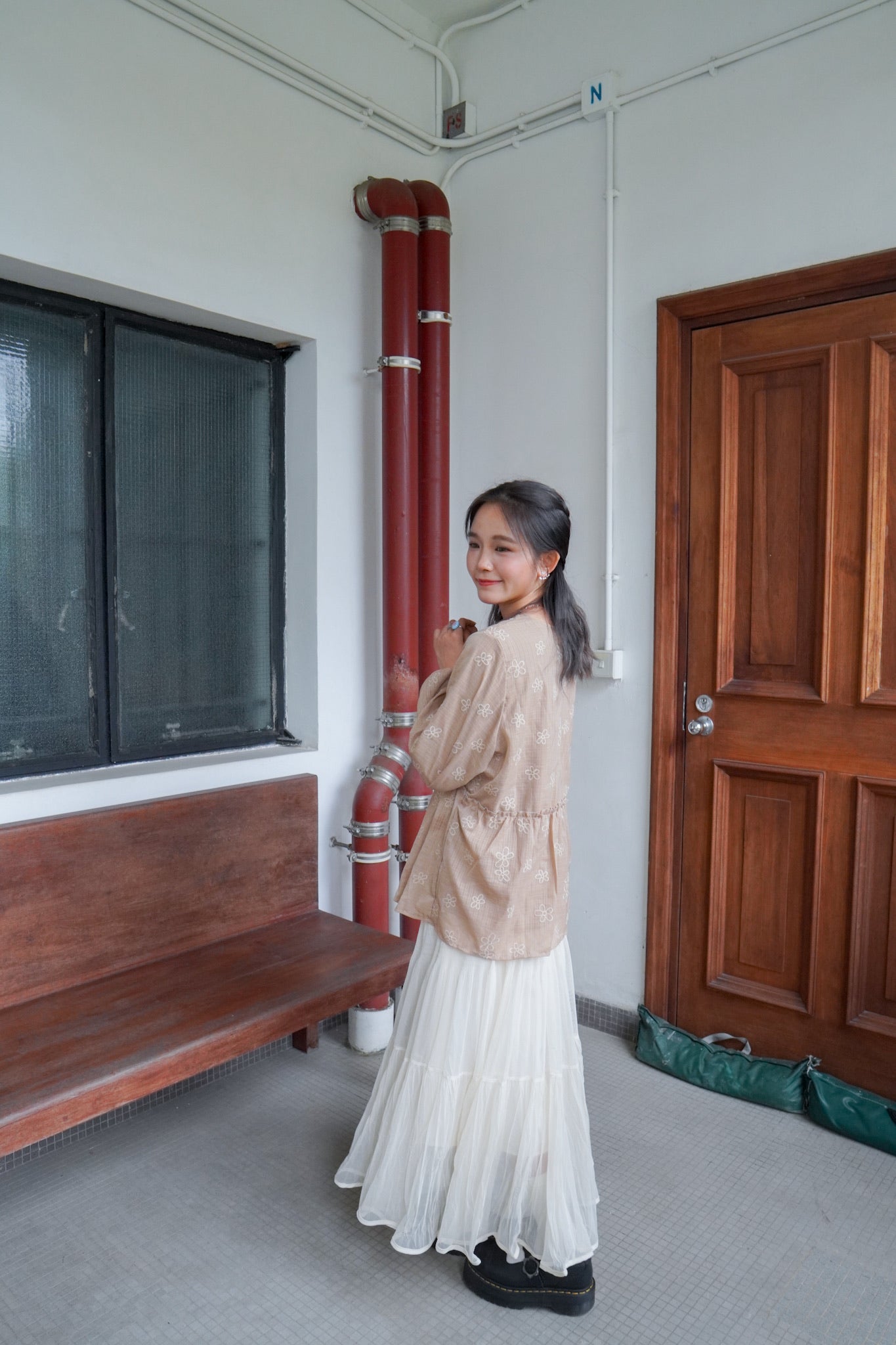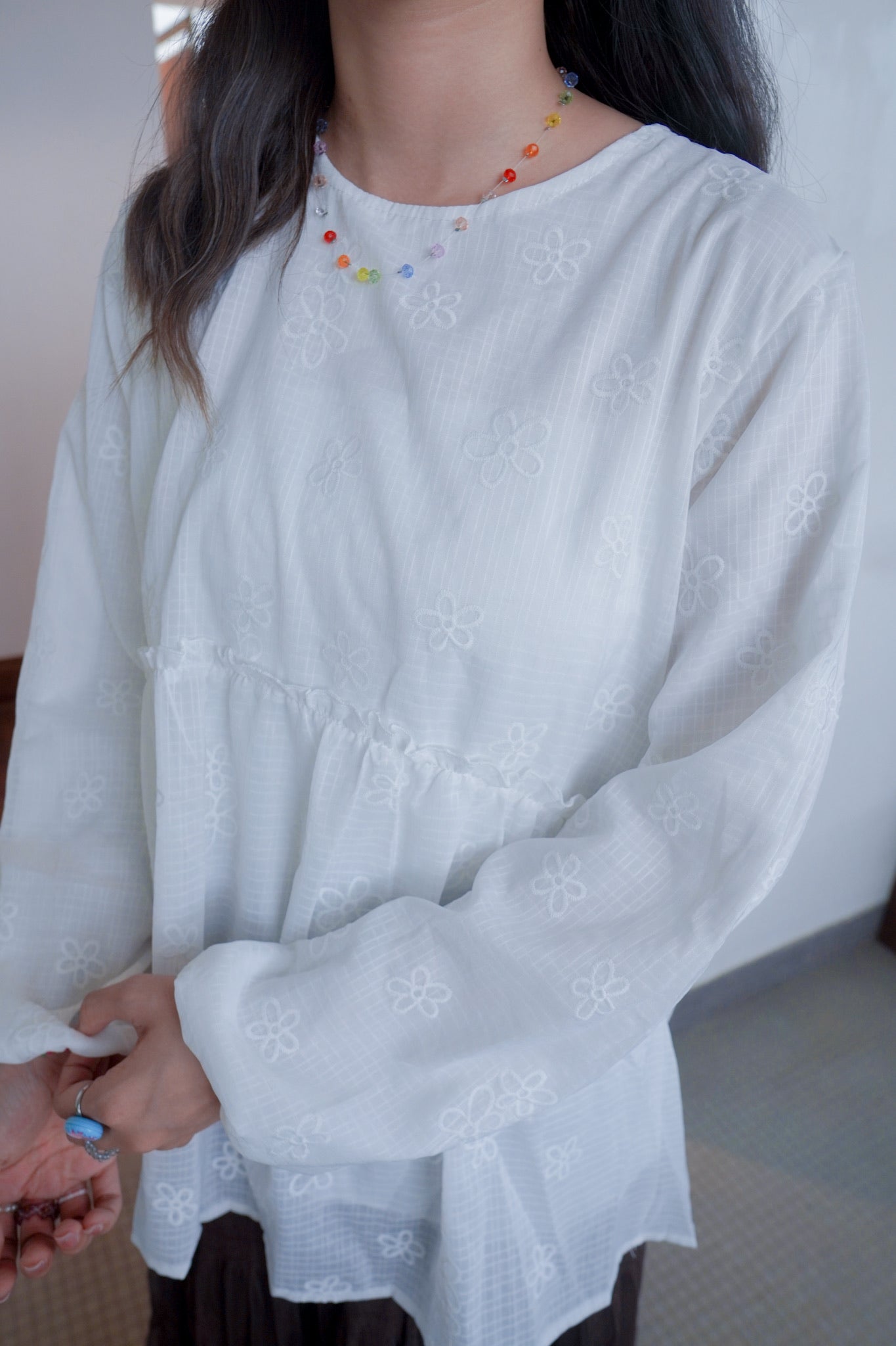 <現貨> 獨家款 泰國人手製作! 格紋小花卉泡泡袖上衣|兩色入