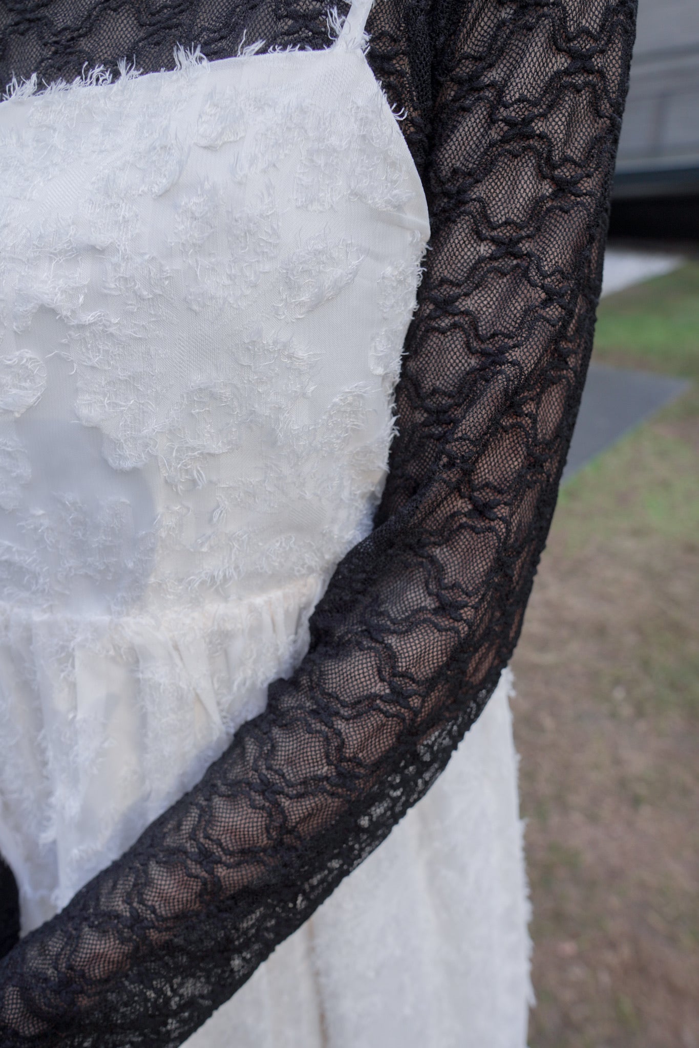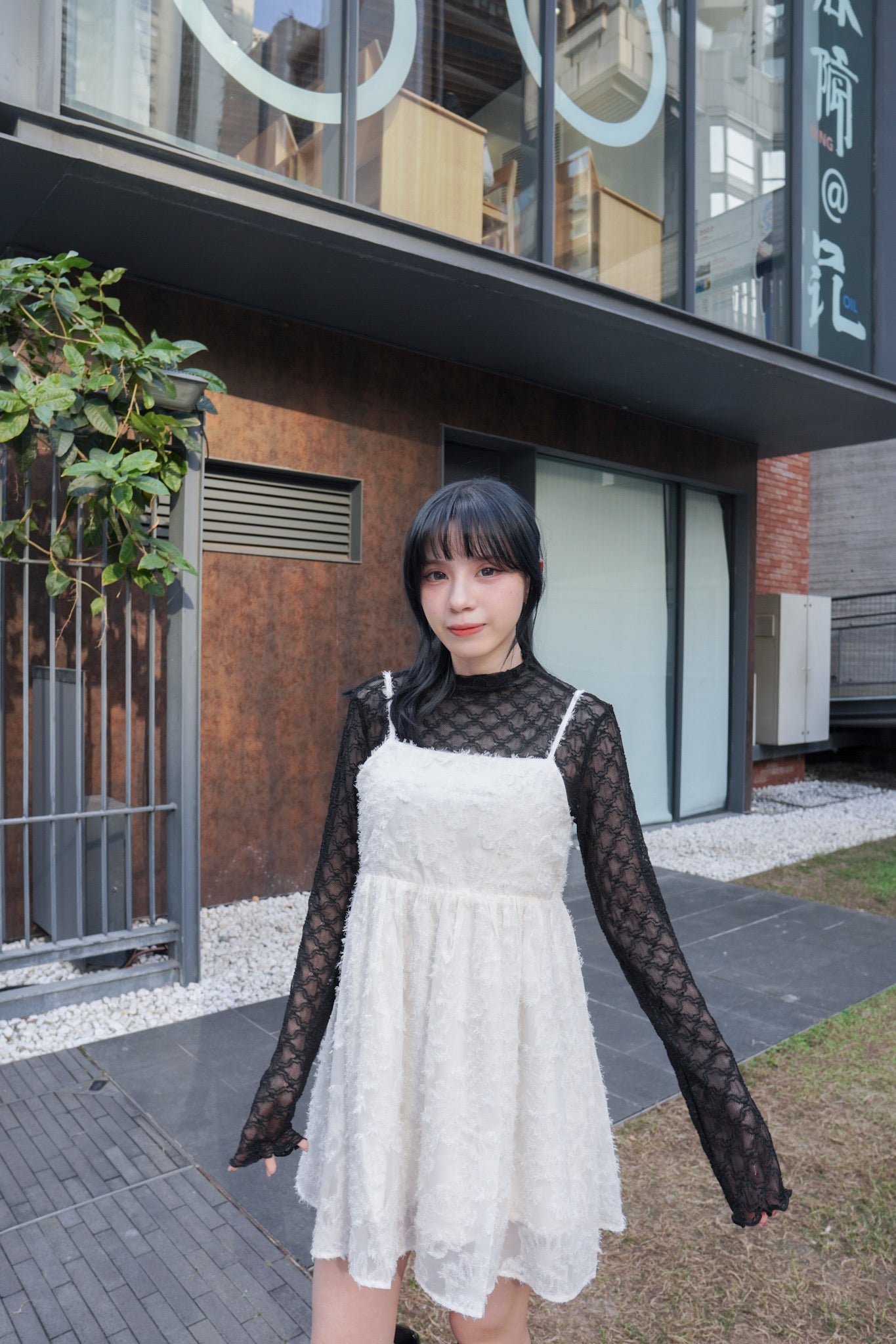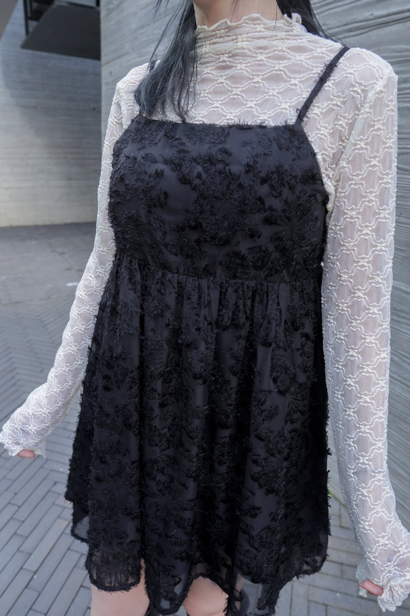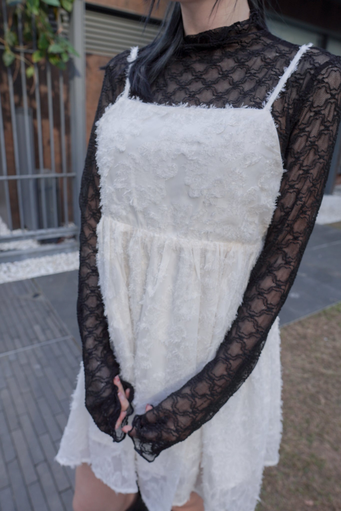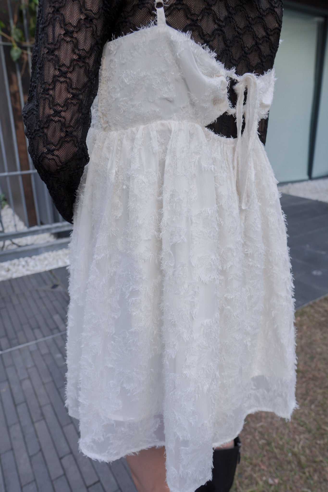 <現貨> 羽毛提花鏤空綁帶短連衣裙OPs|兩色入