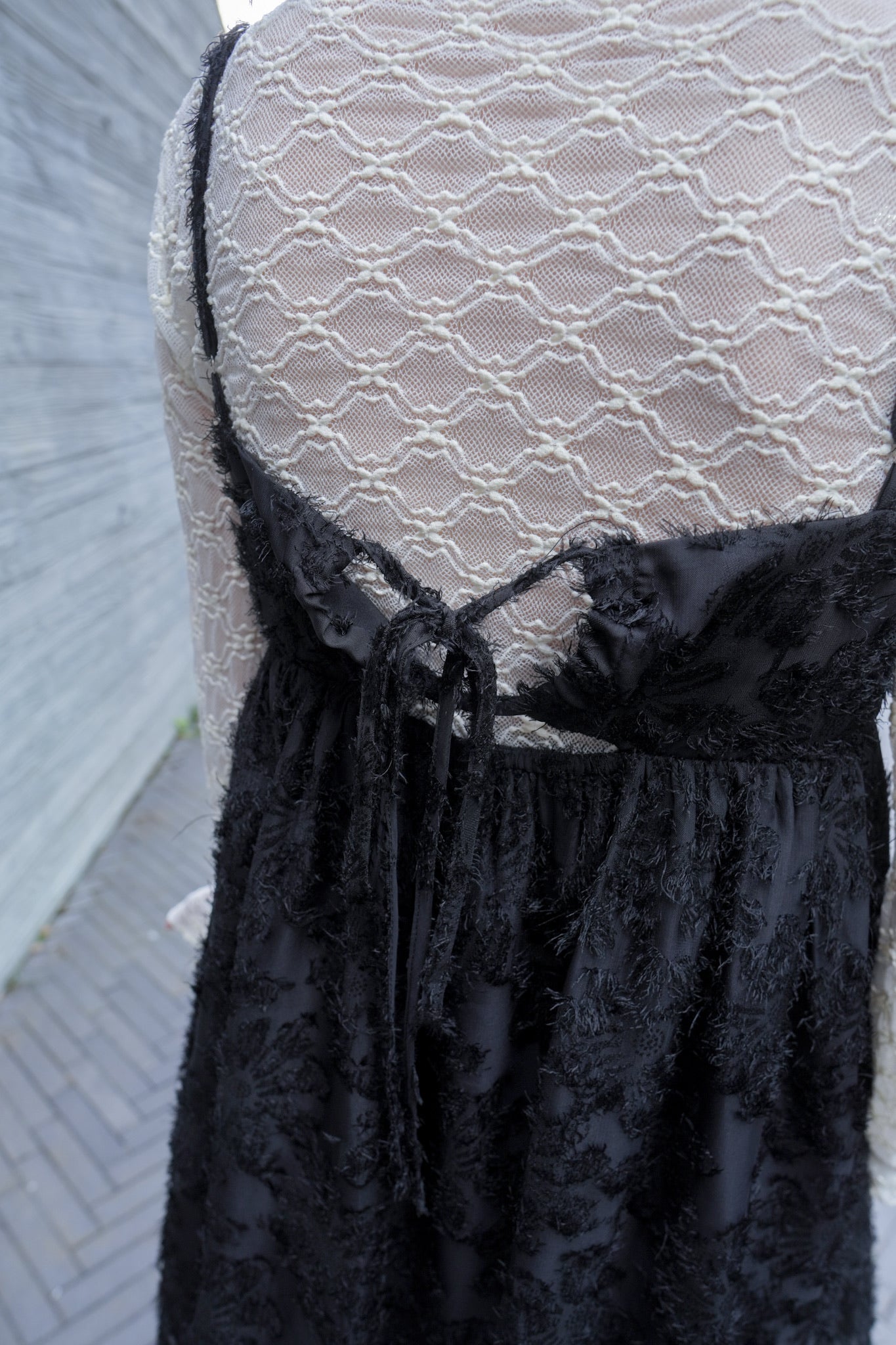 背後鏤空綁帶細節 若隱若現展露優雅肌膚