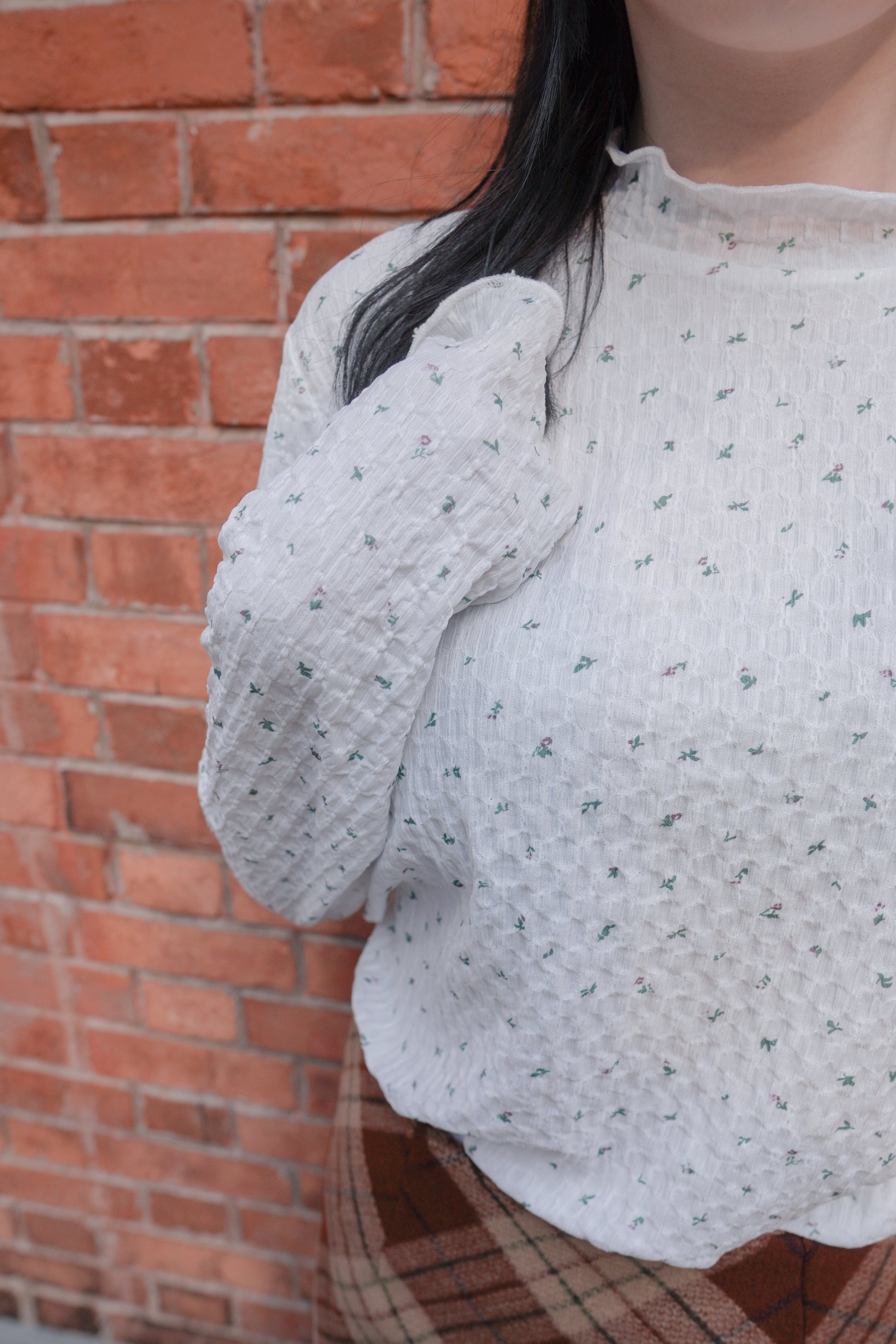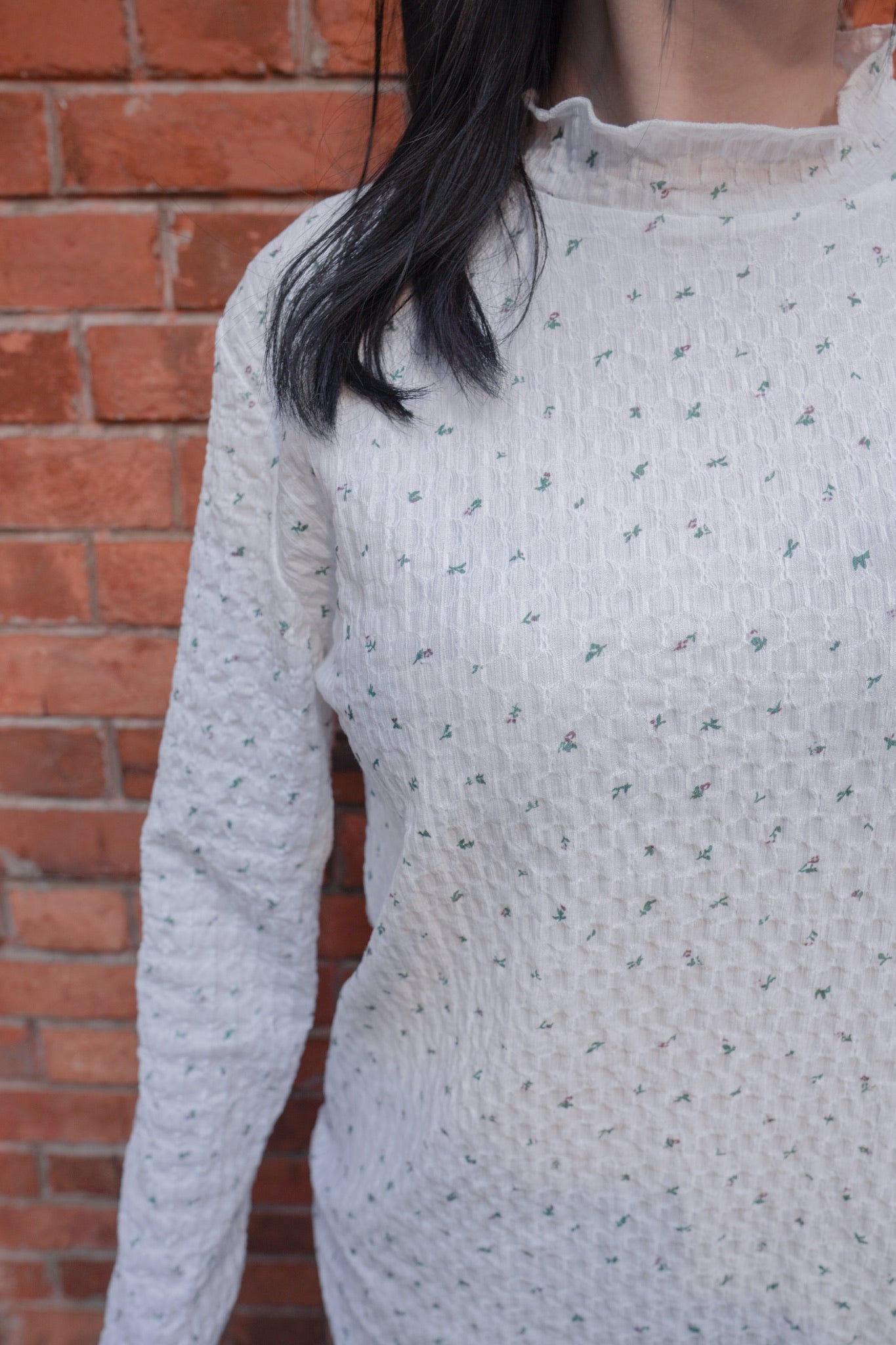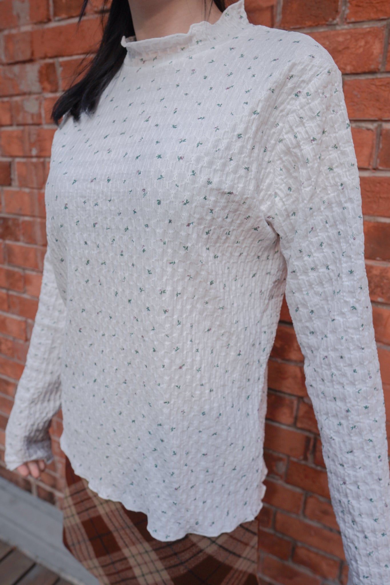 <現貨> 肌理感ruffle邊碎花打底長袖上衣