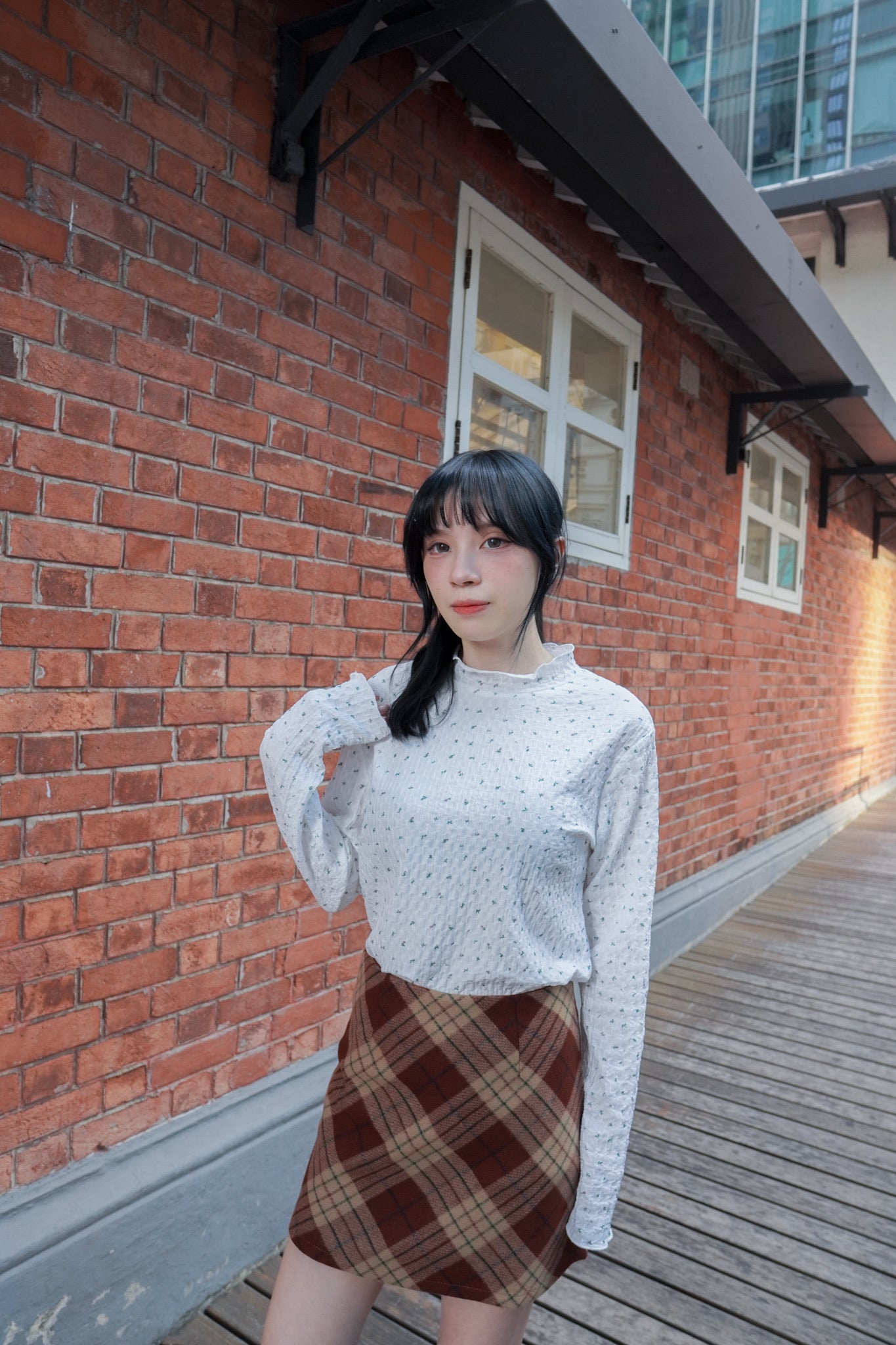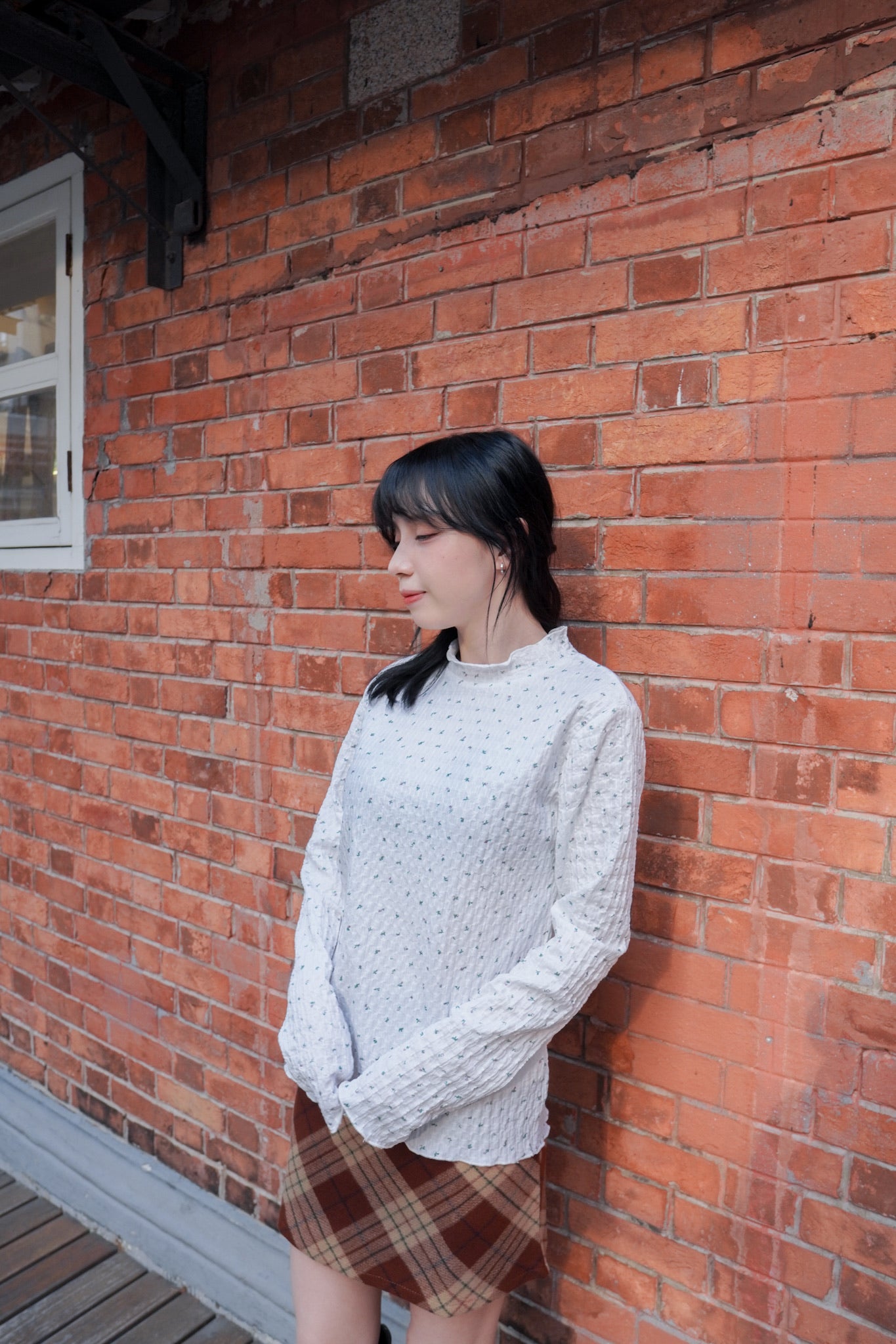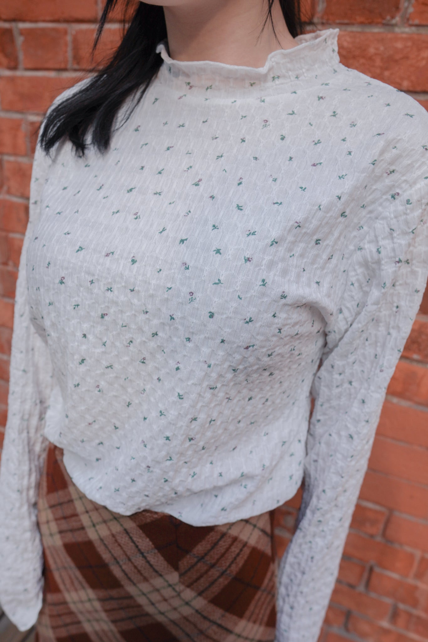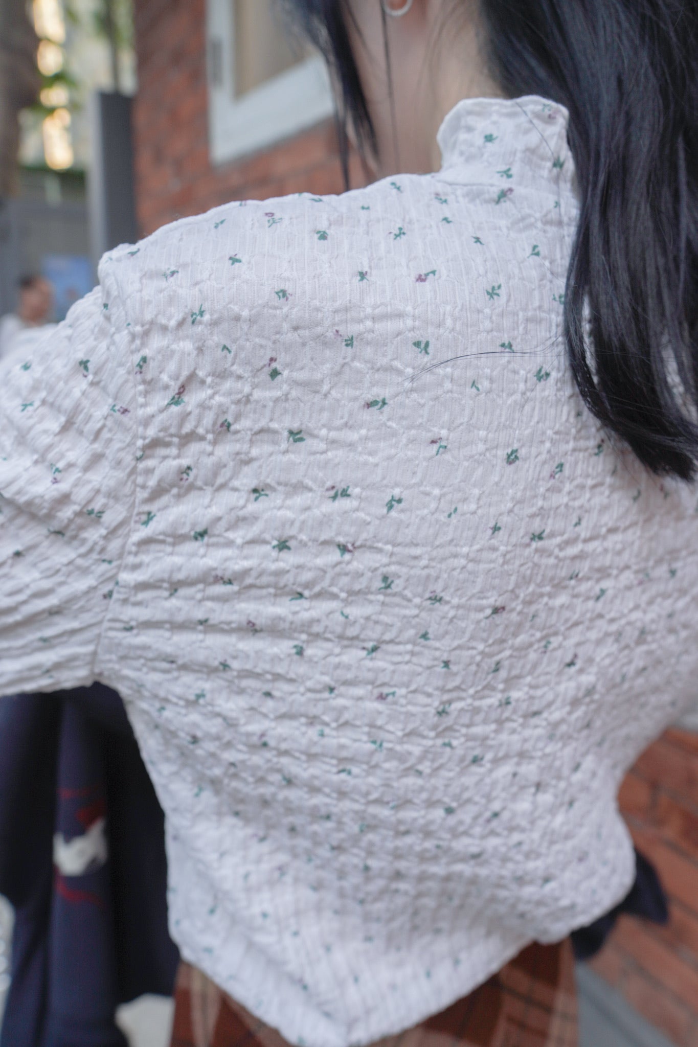 <現貨> 肌理感ruffle邊碎花打底長袖上衣