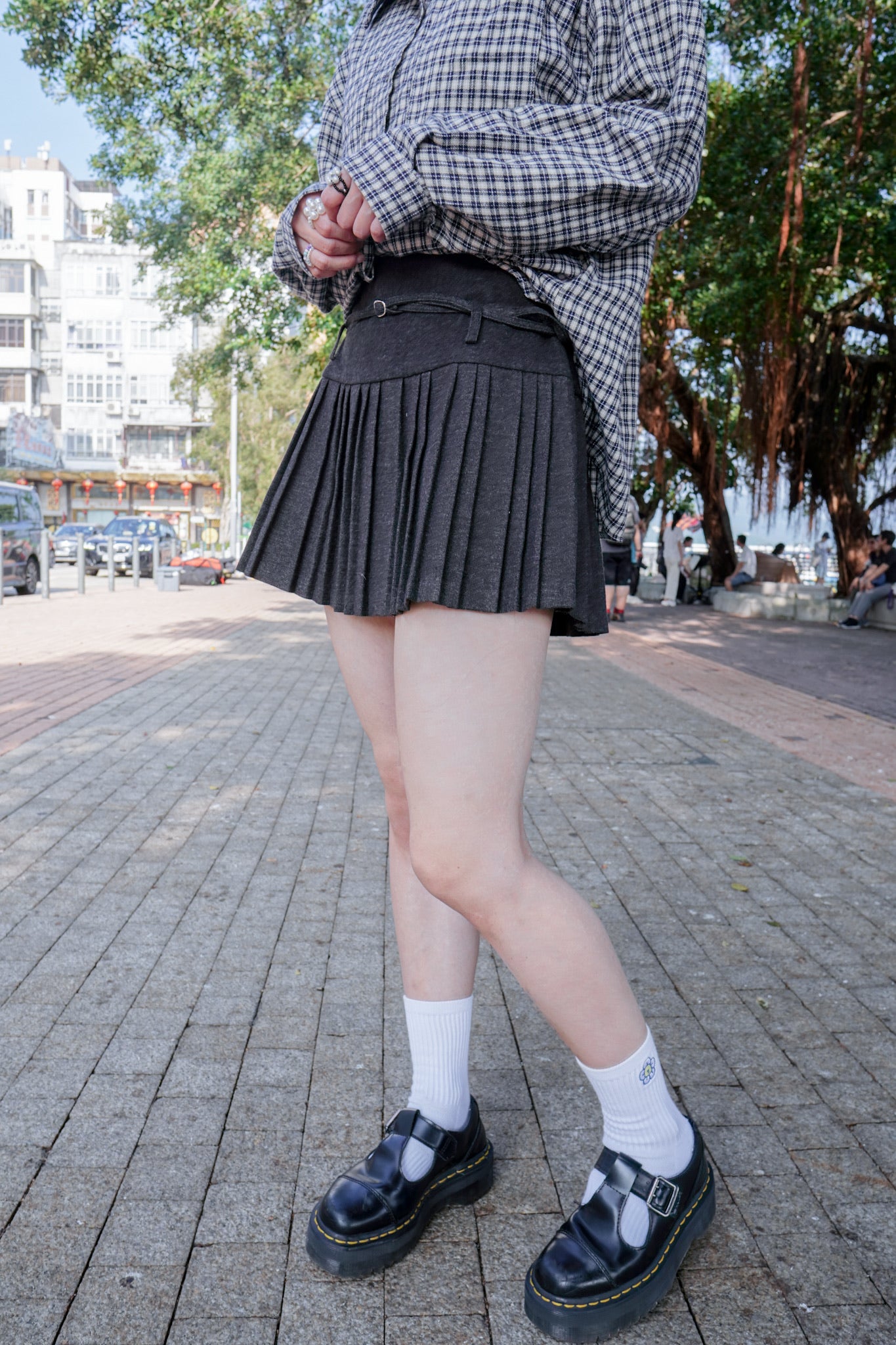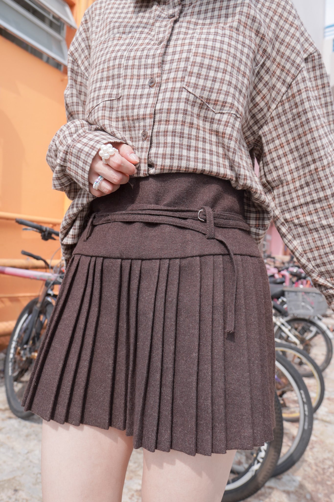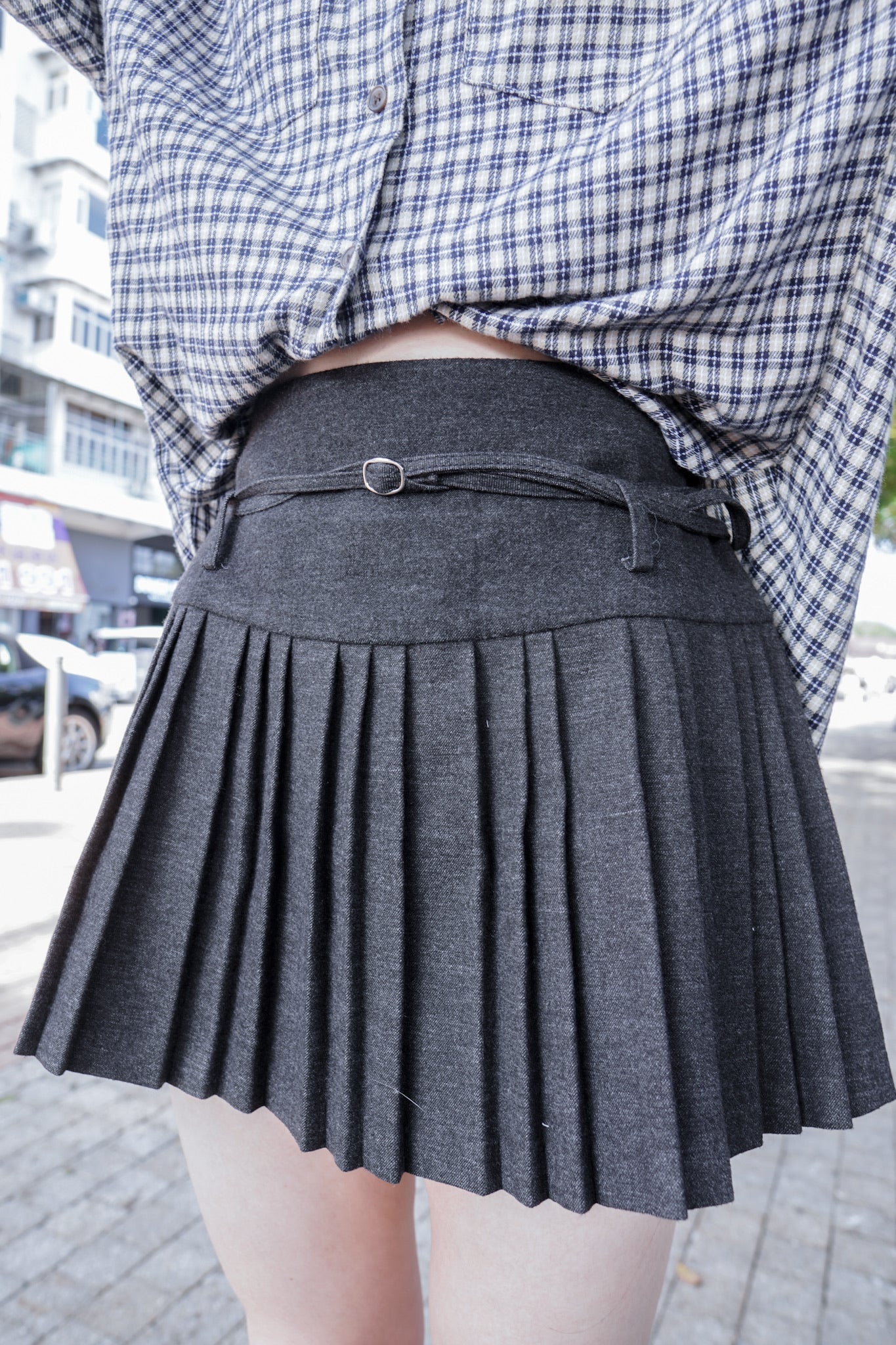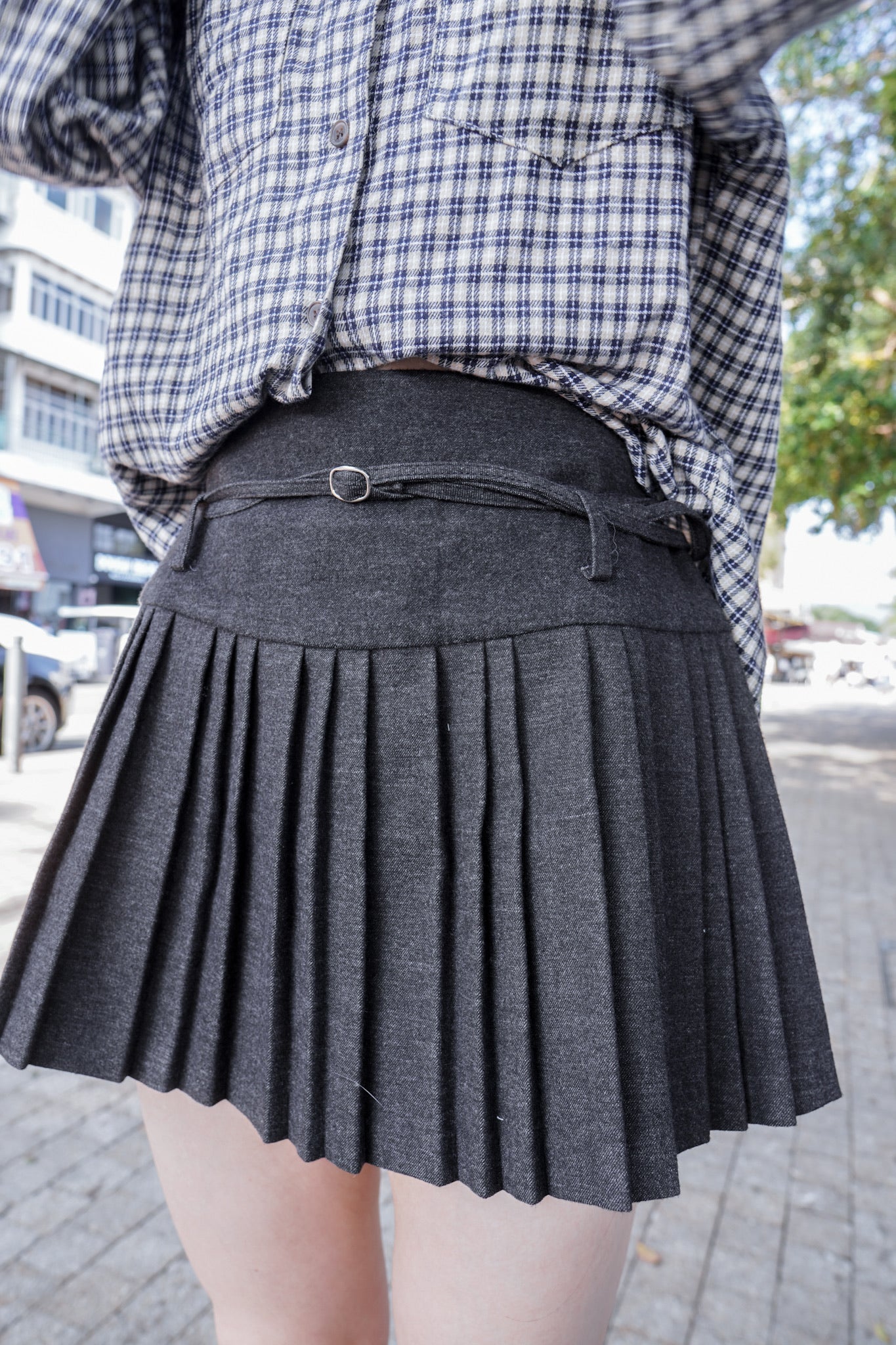 <現貨> 自家製 學院風高腰毛呢半身短裙+腰帶兩件套|兩色入