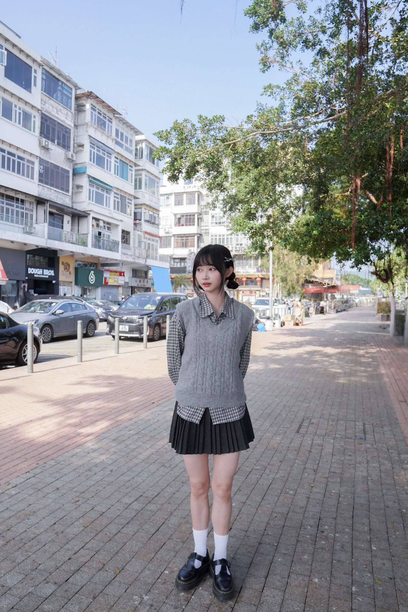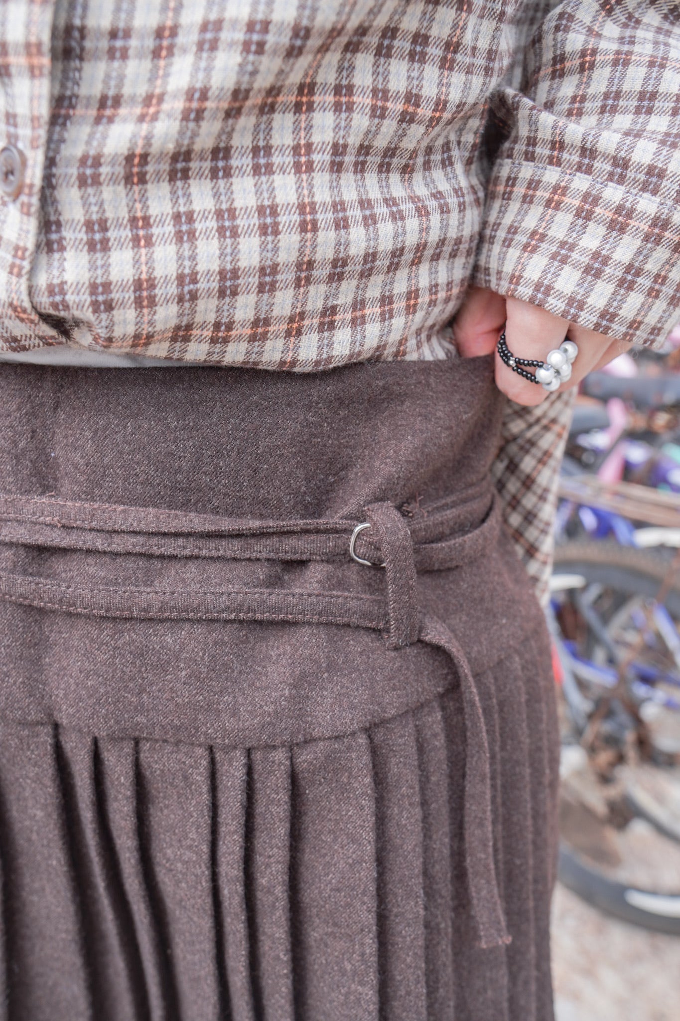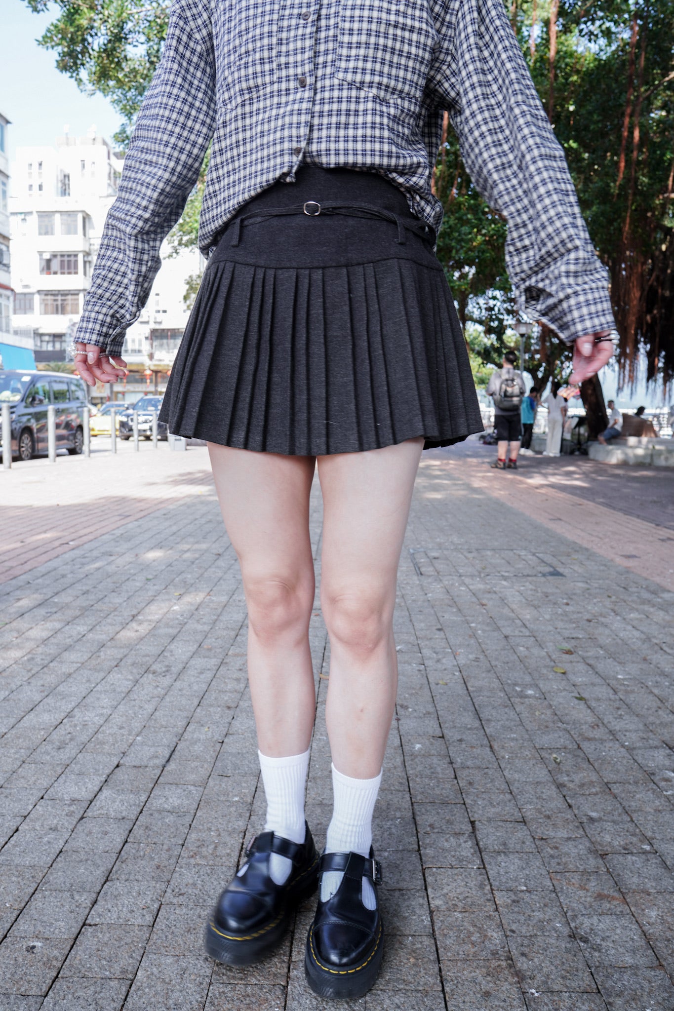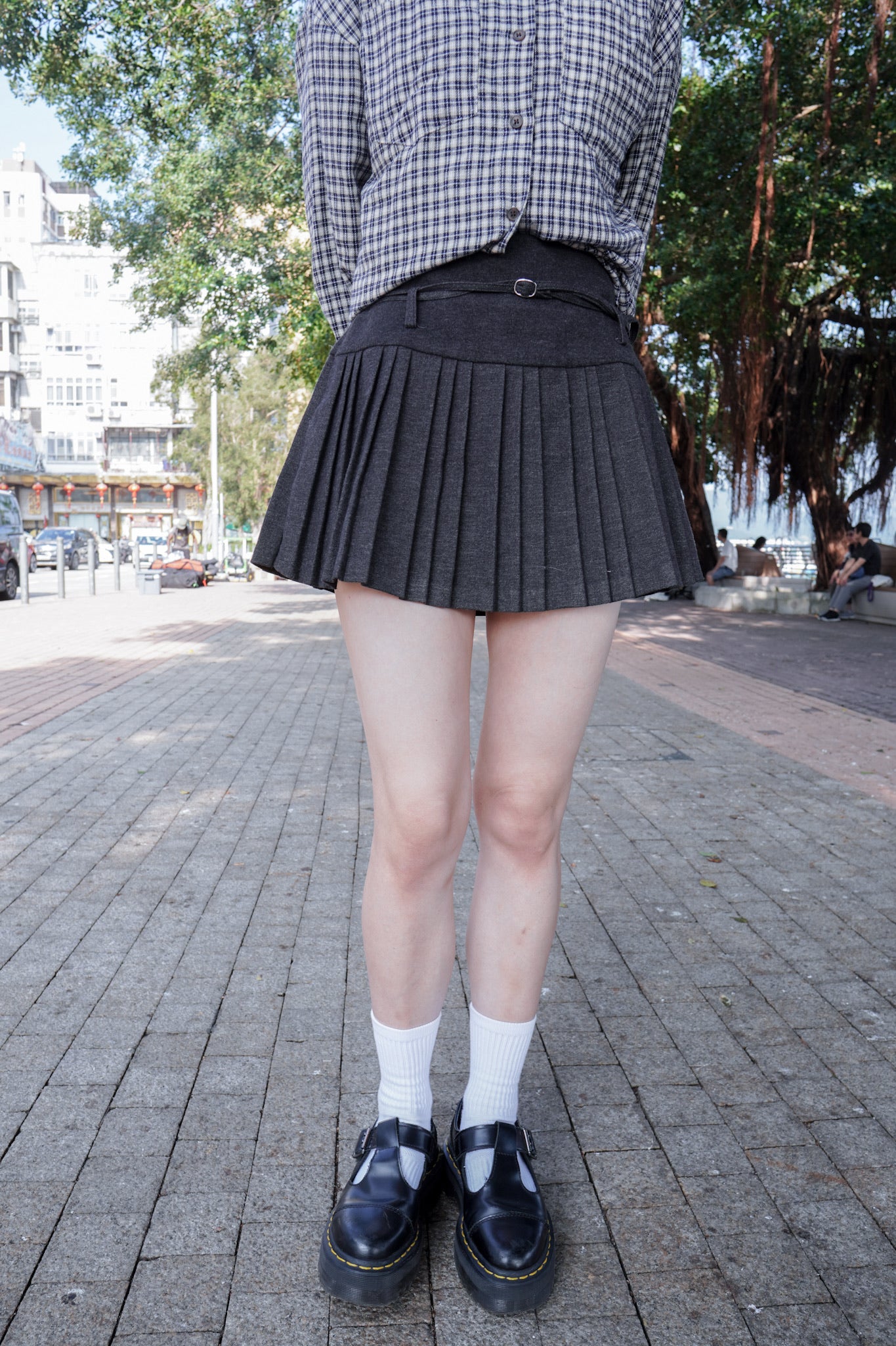 <現貨> 自家製 學院風高腰毛呢半身短裙+腰帶兩件套|兩色入