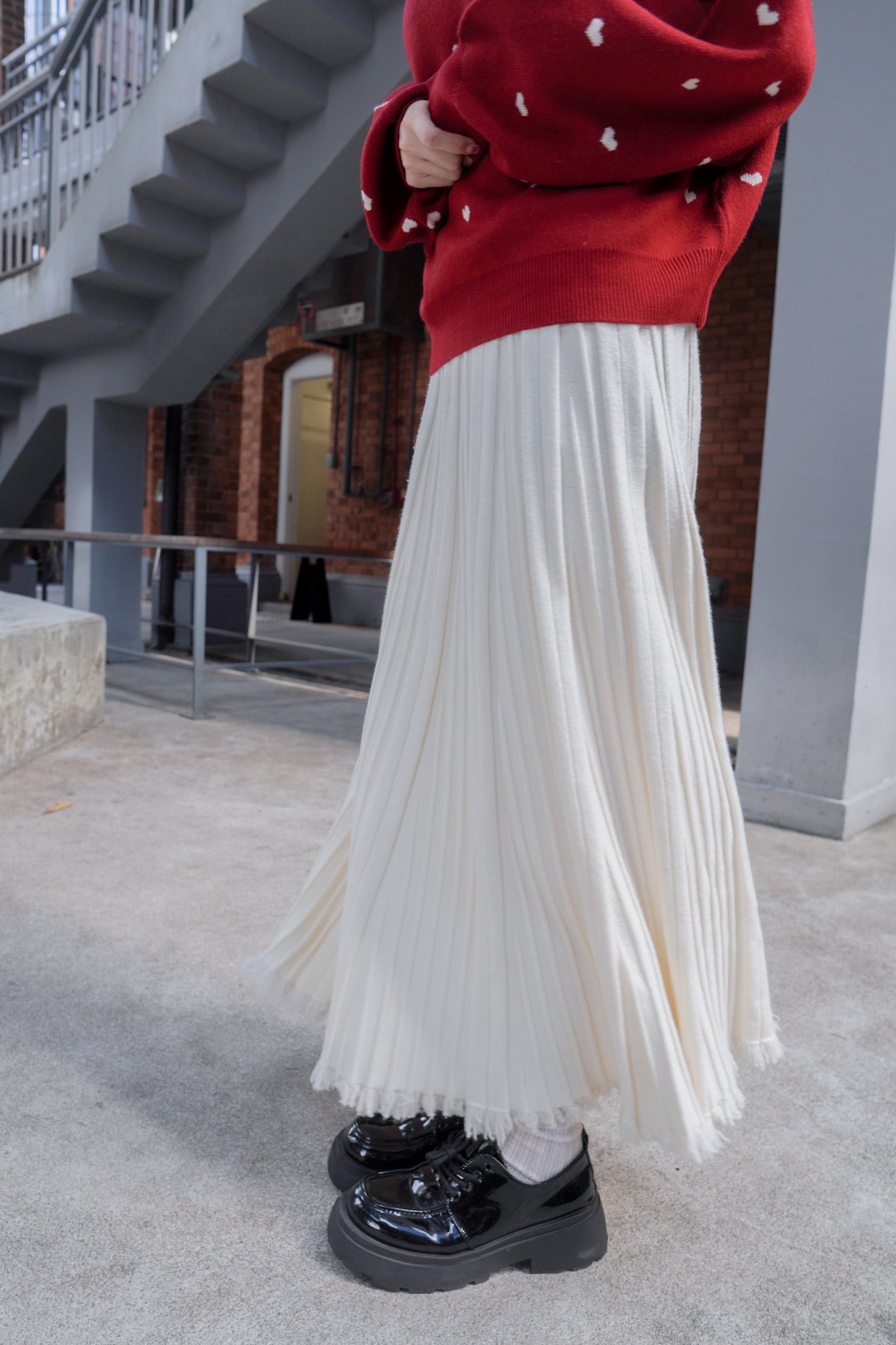<預訂> 自家製 流蘇針織半身長裙|兩色入