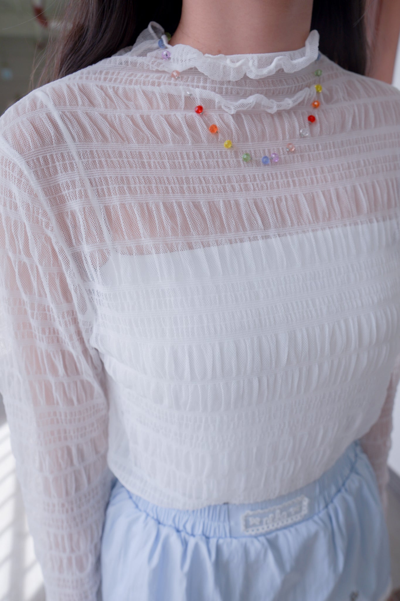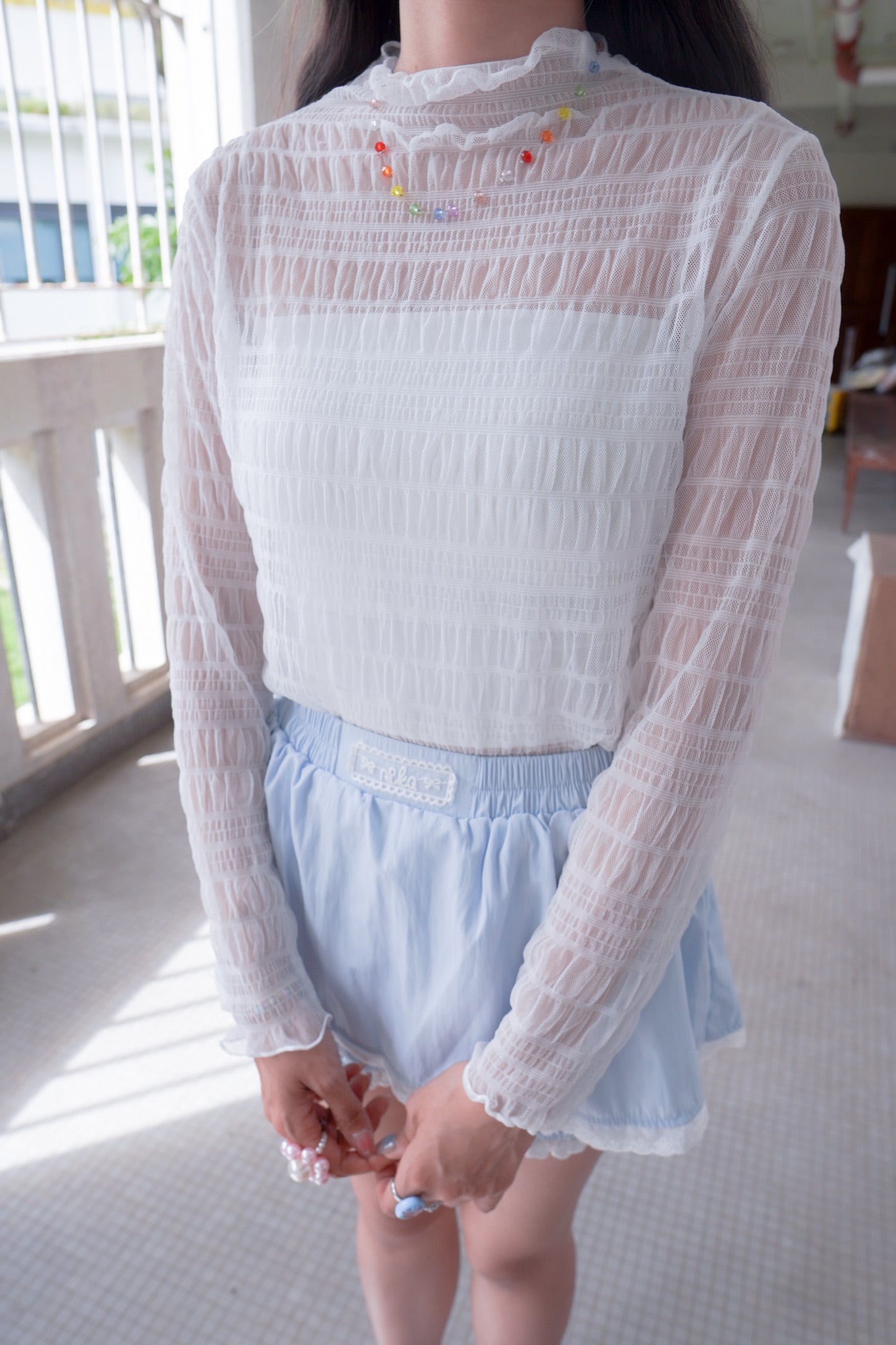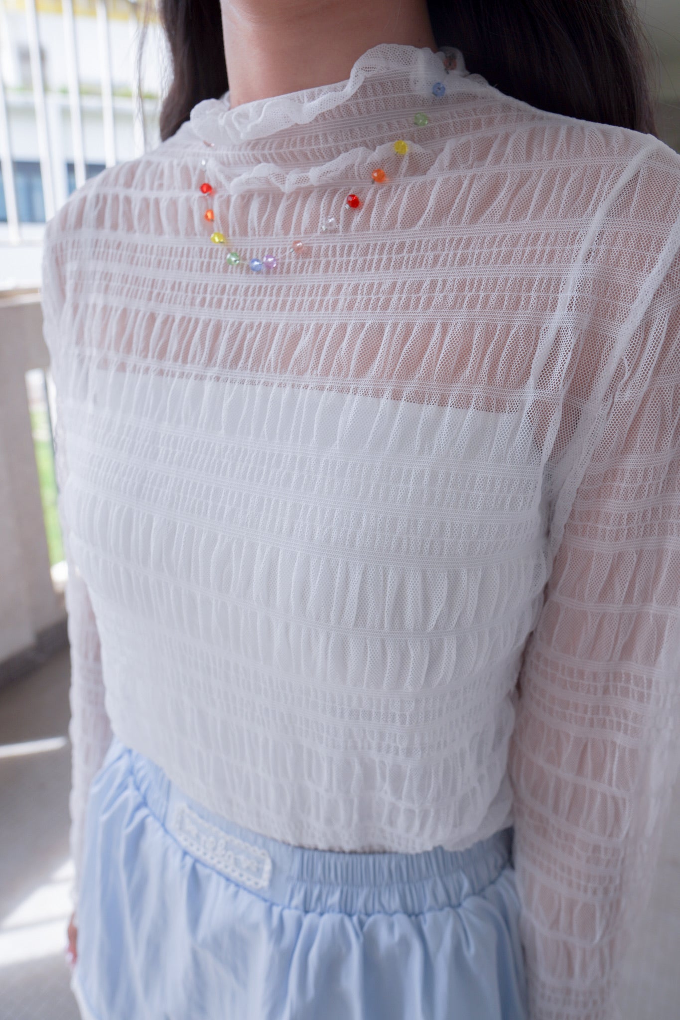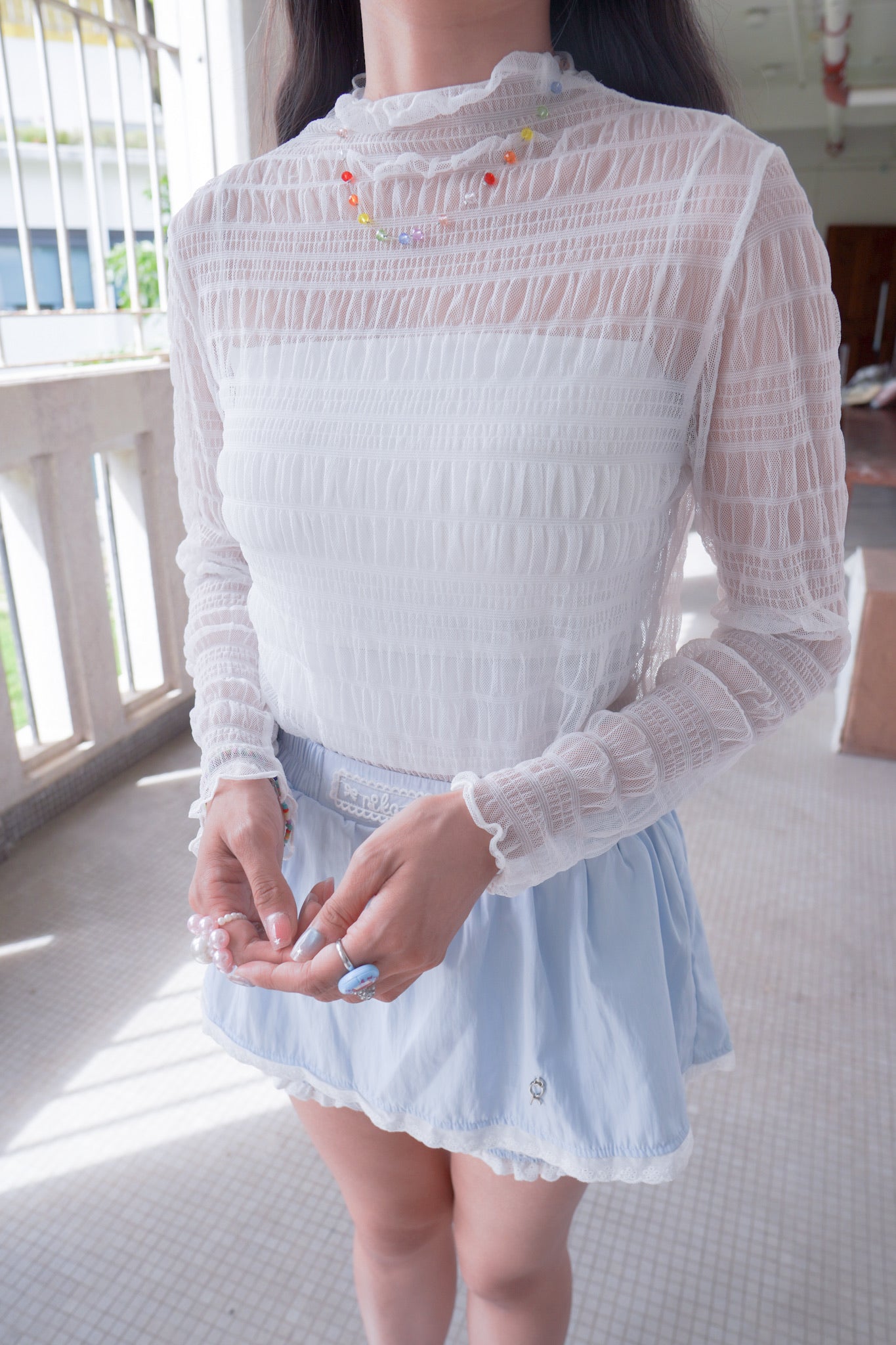 <現貨> 自家製 衣櫃必備!褶皺透明Ruffle邊高領內搭打底上衣