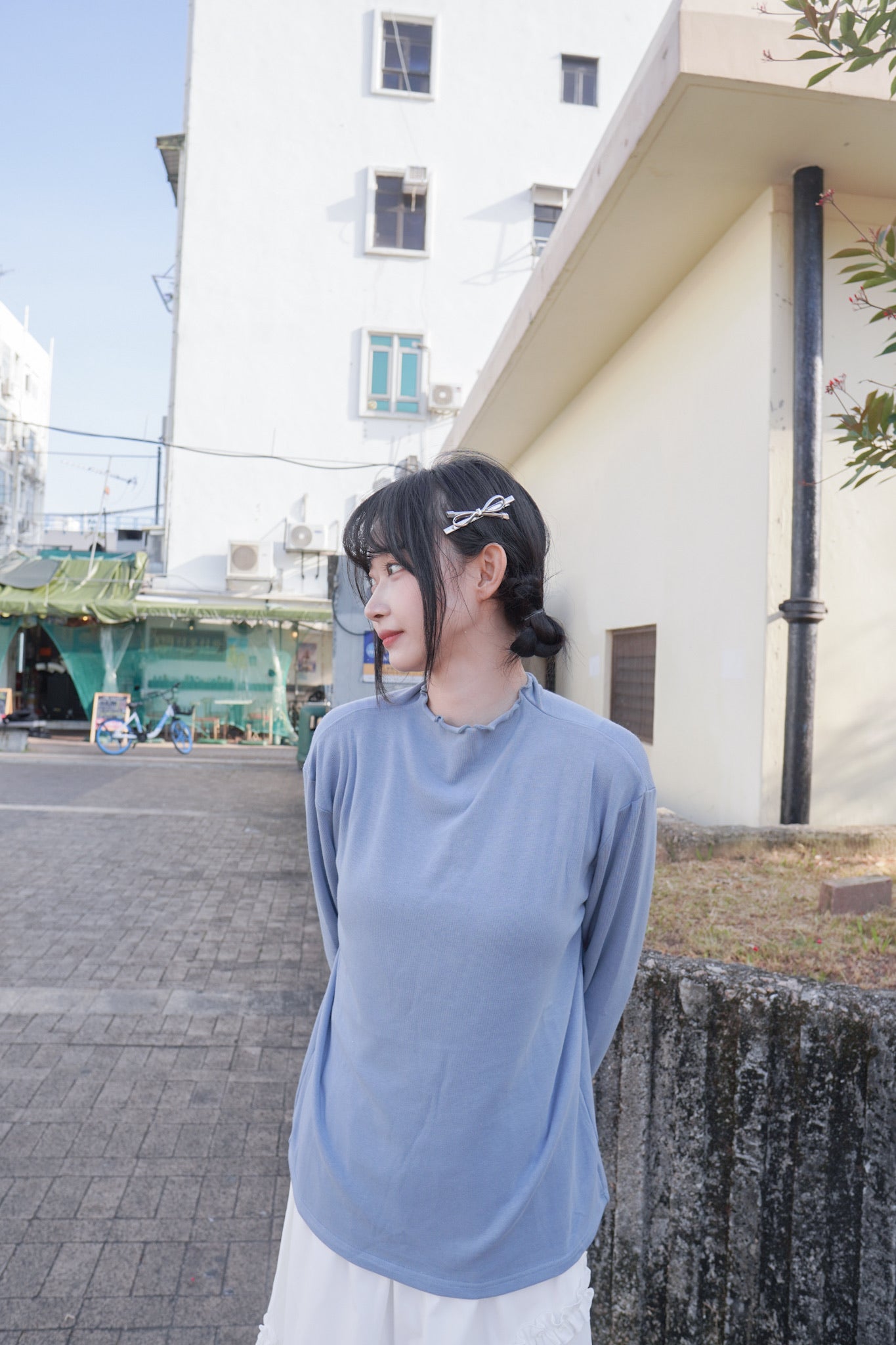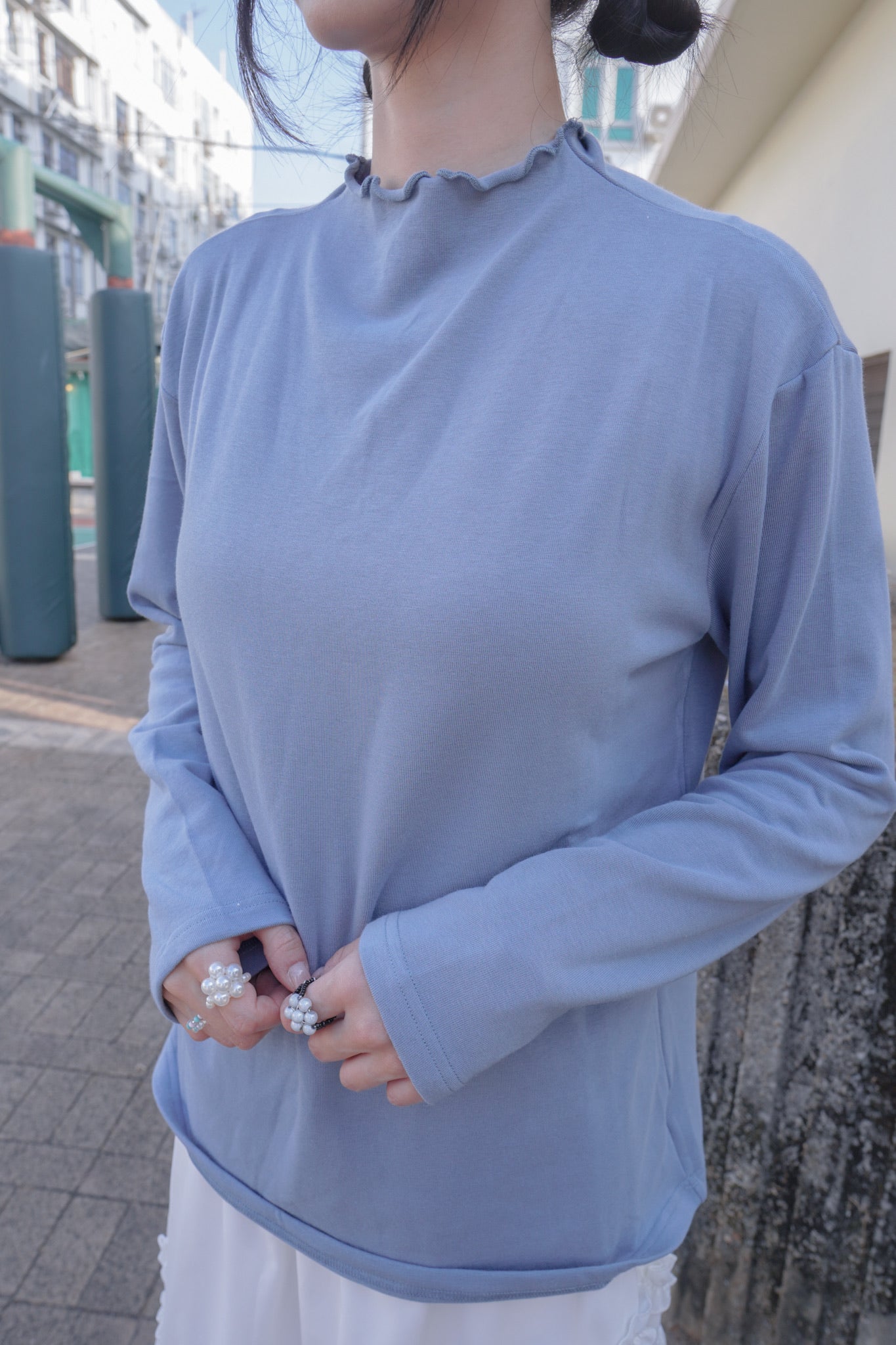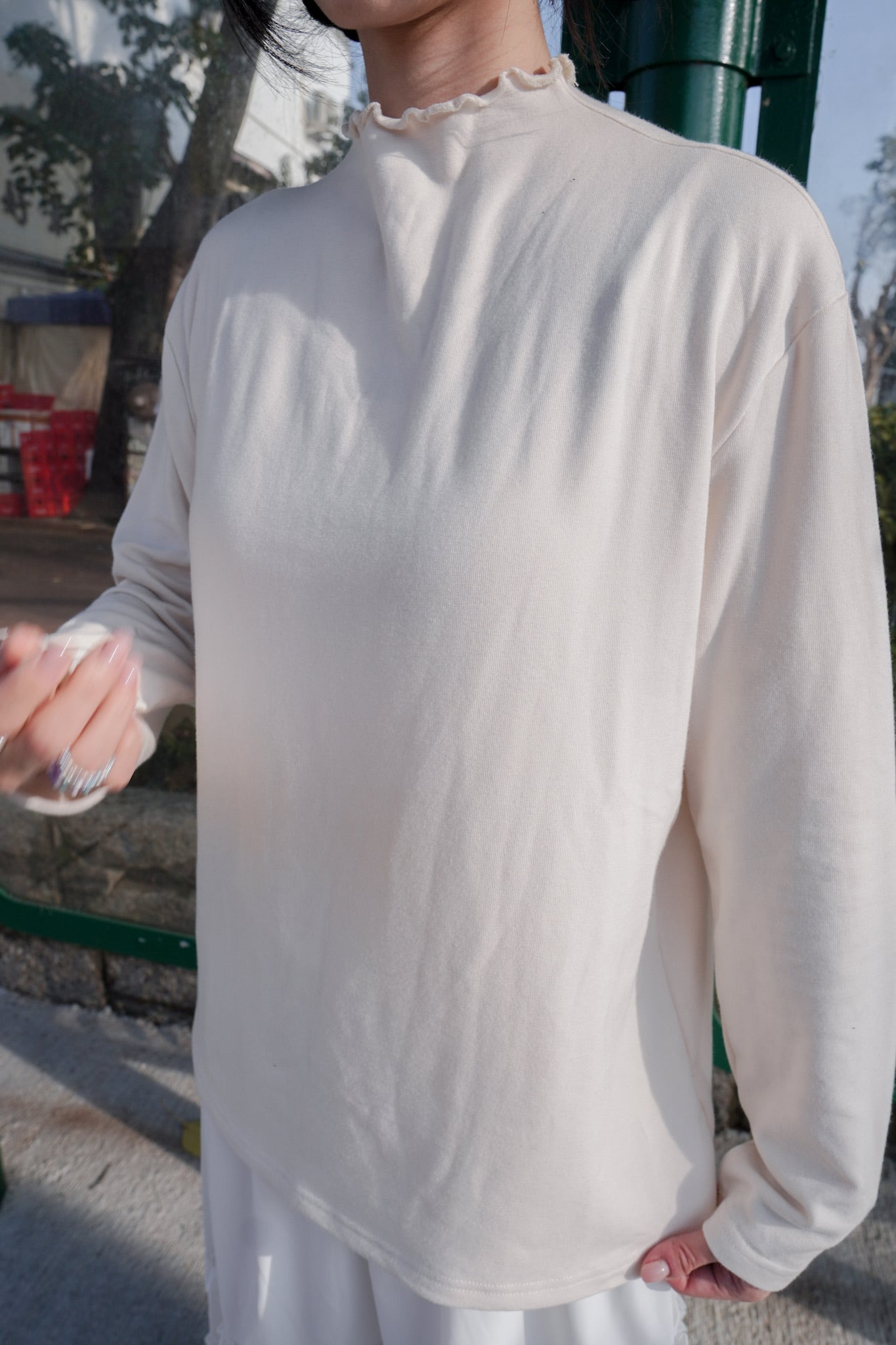 <現貨> 自家製 超厚實! ruffle邊半高領純色內搭上衣|三色入