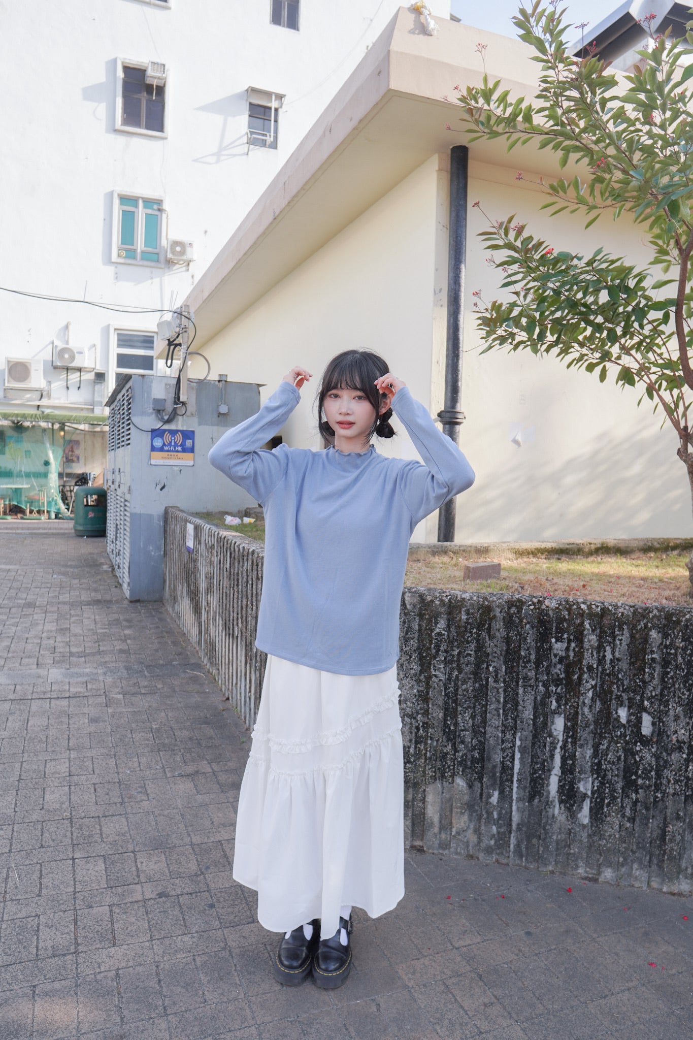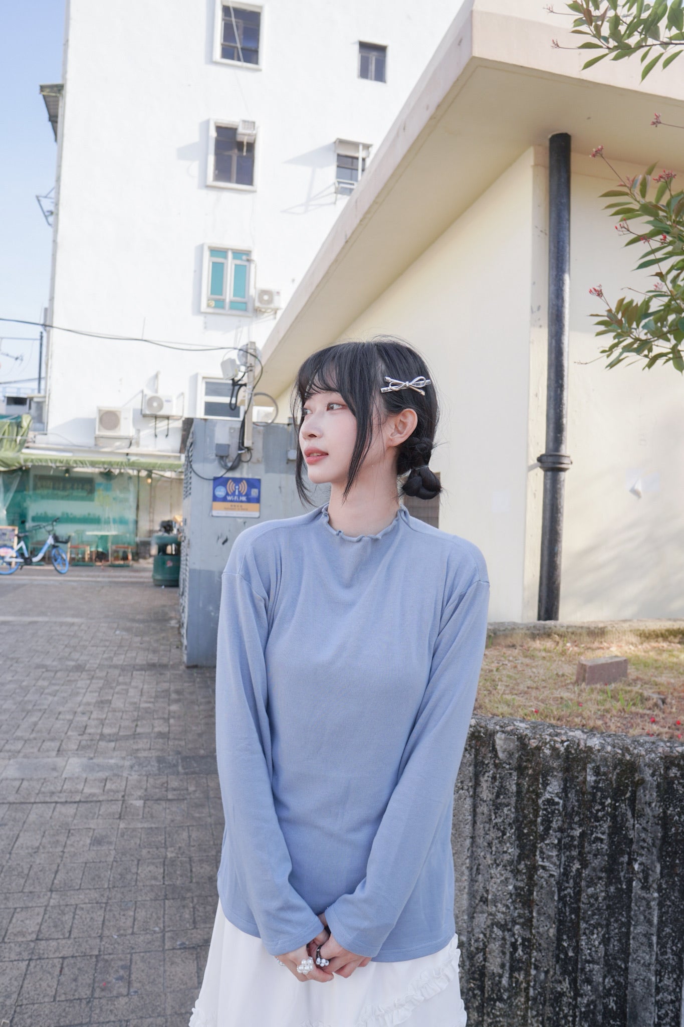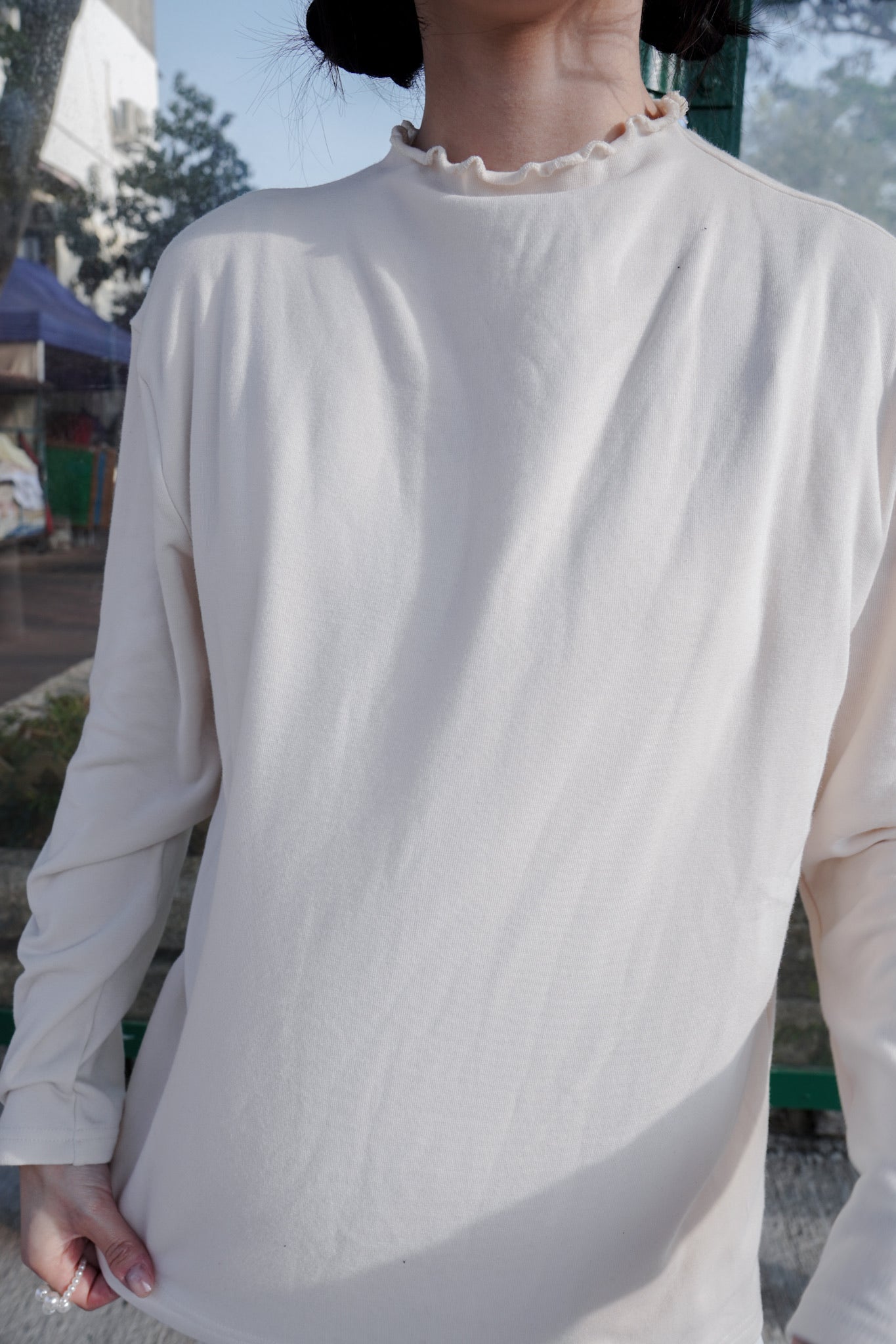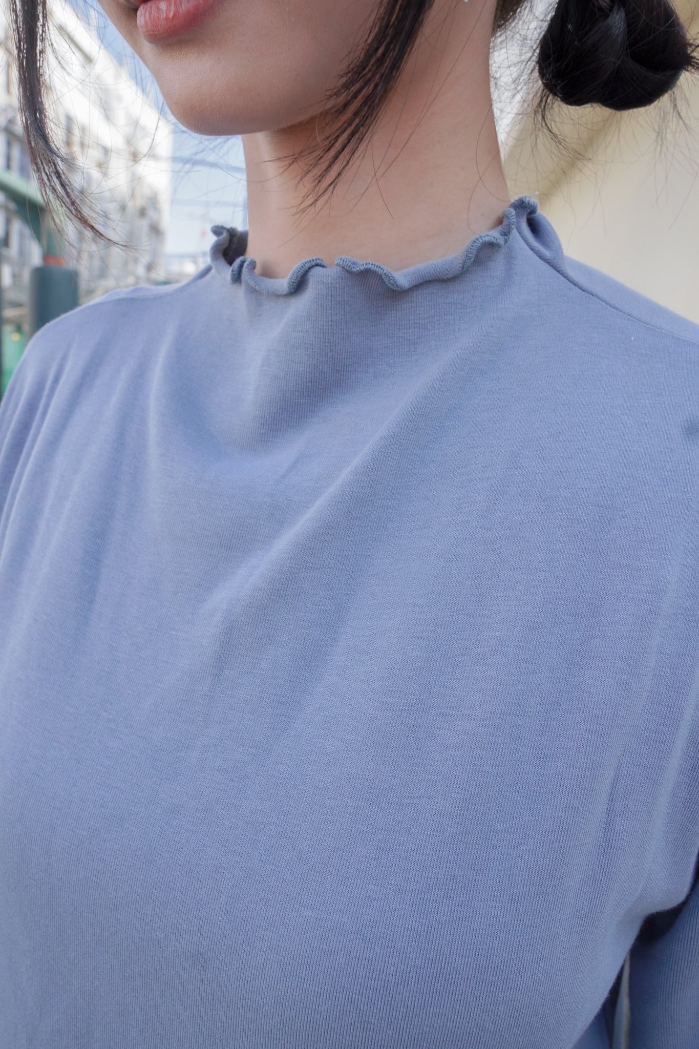 <現貨> 自家製 超厚實! ruffle邊半高領純色內搭上衣|三色入