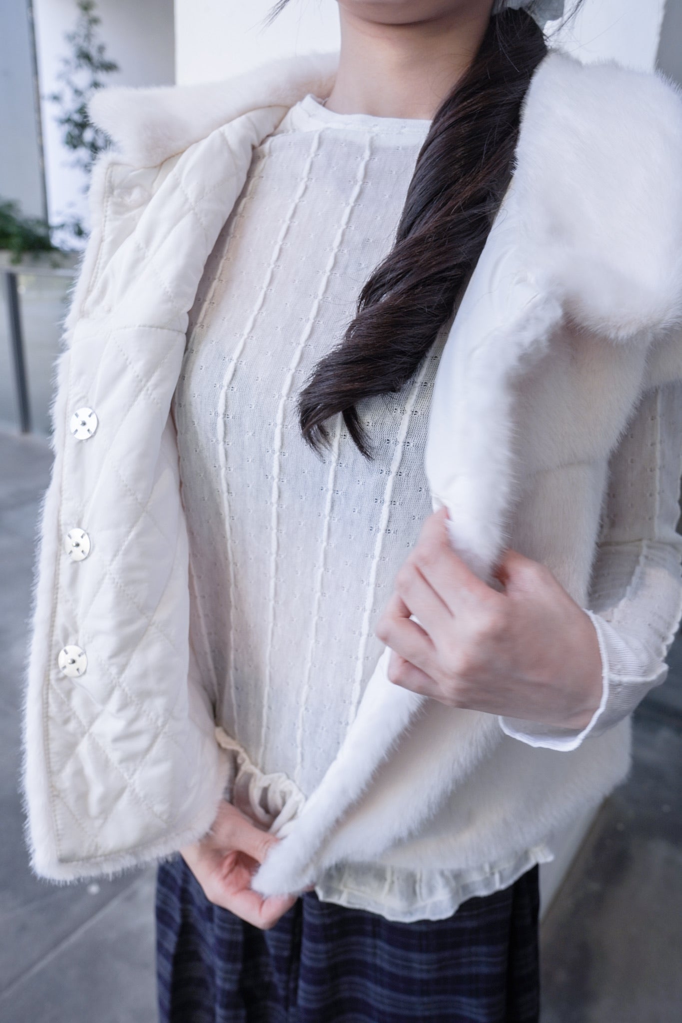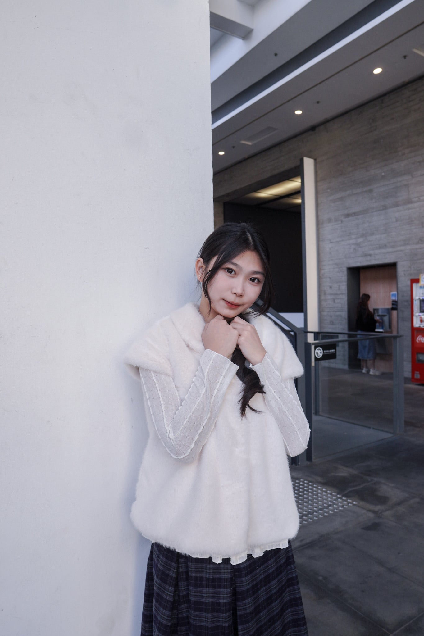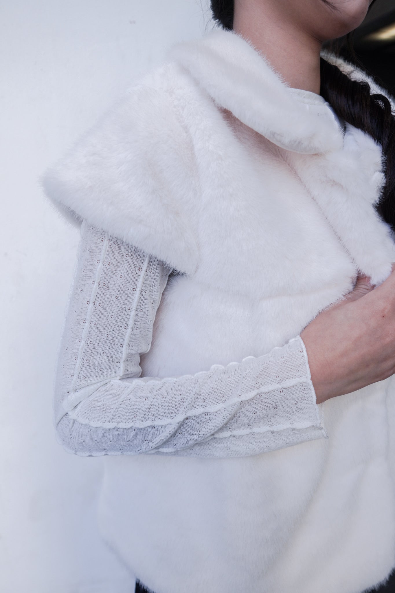 《 小眾毛茸茸短袖開胸馬甲外套 》