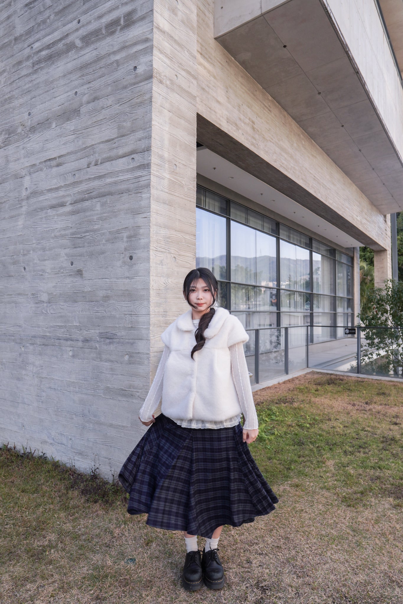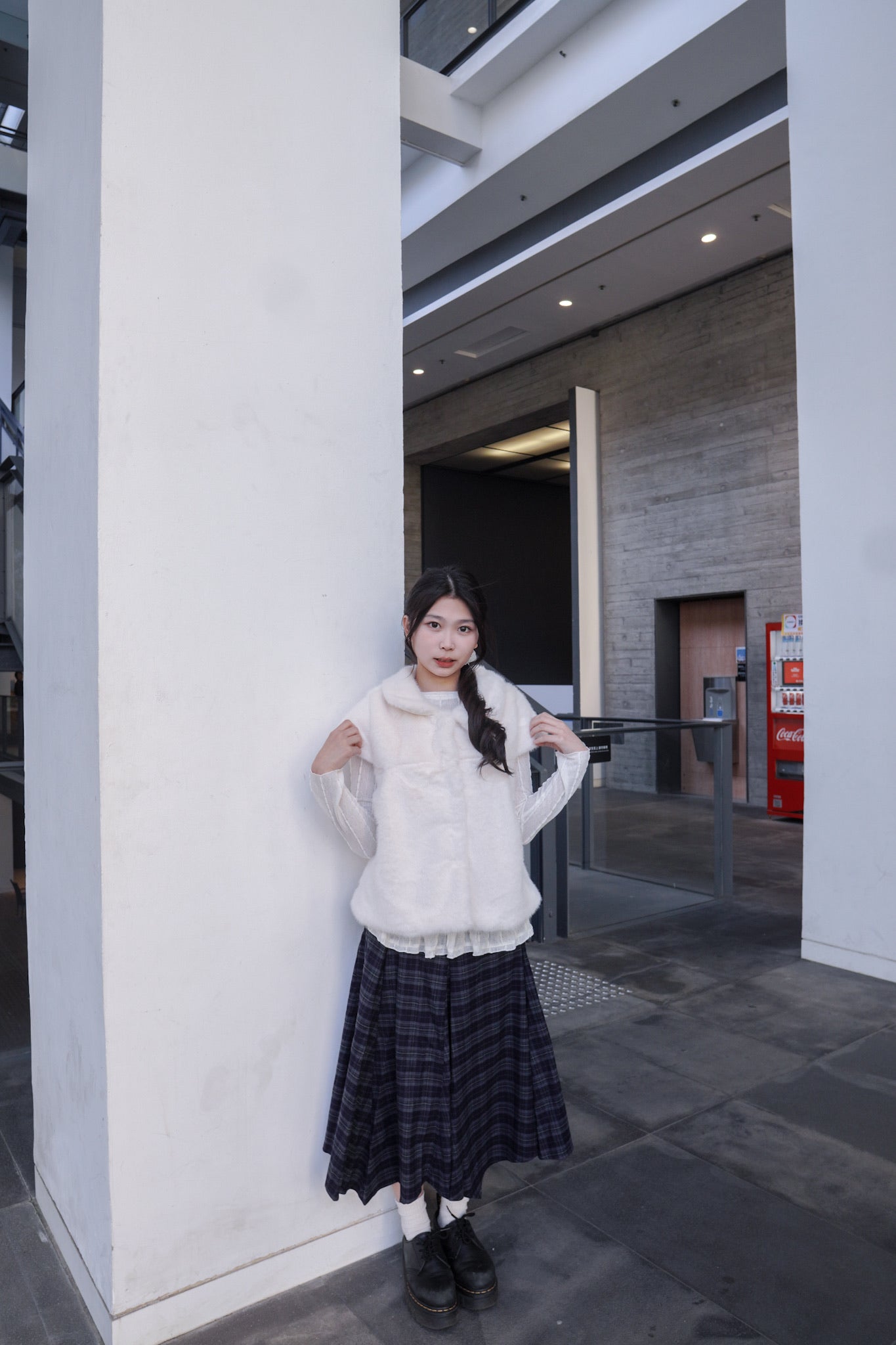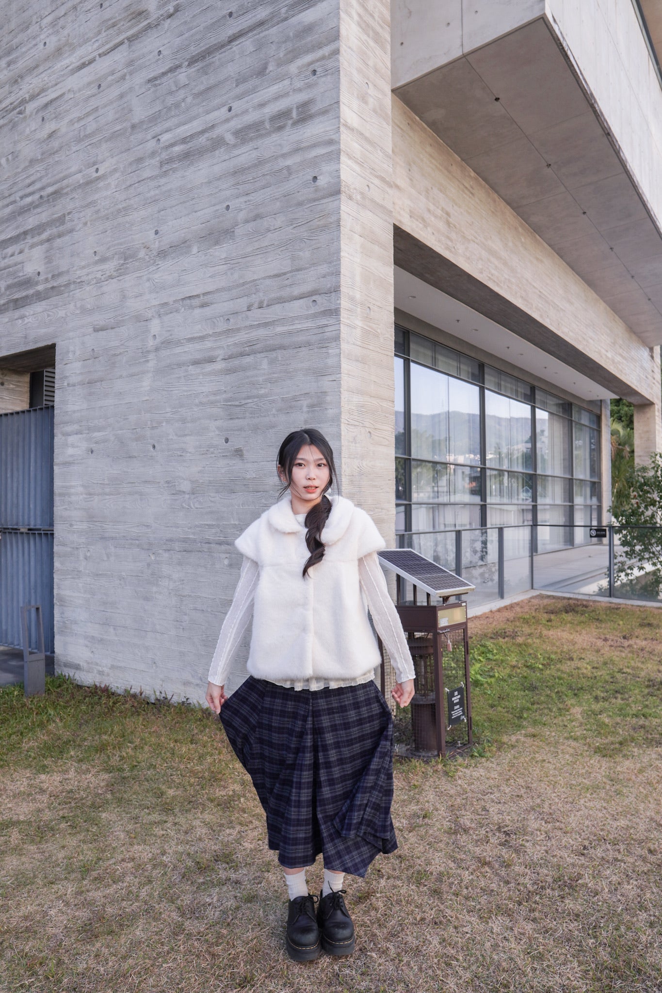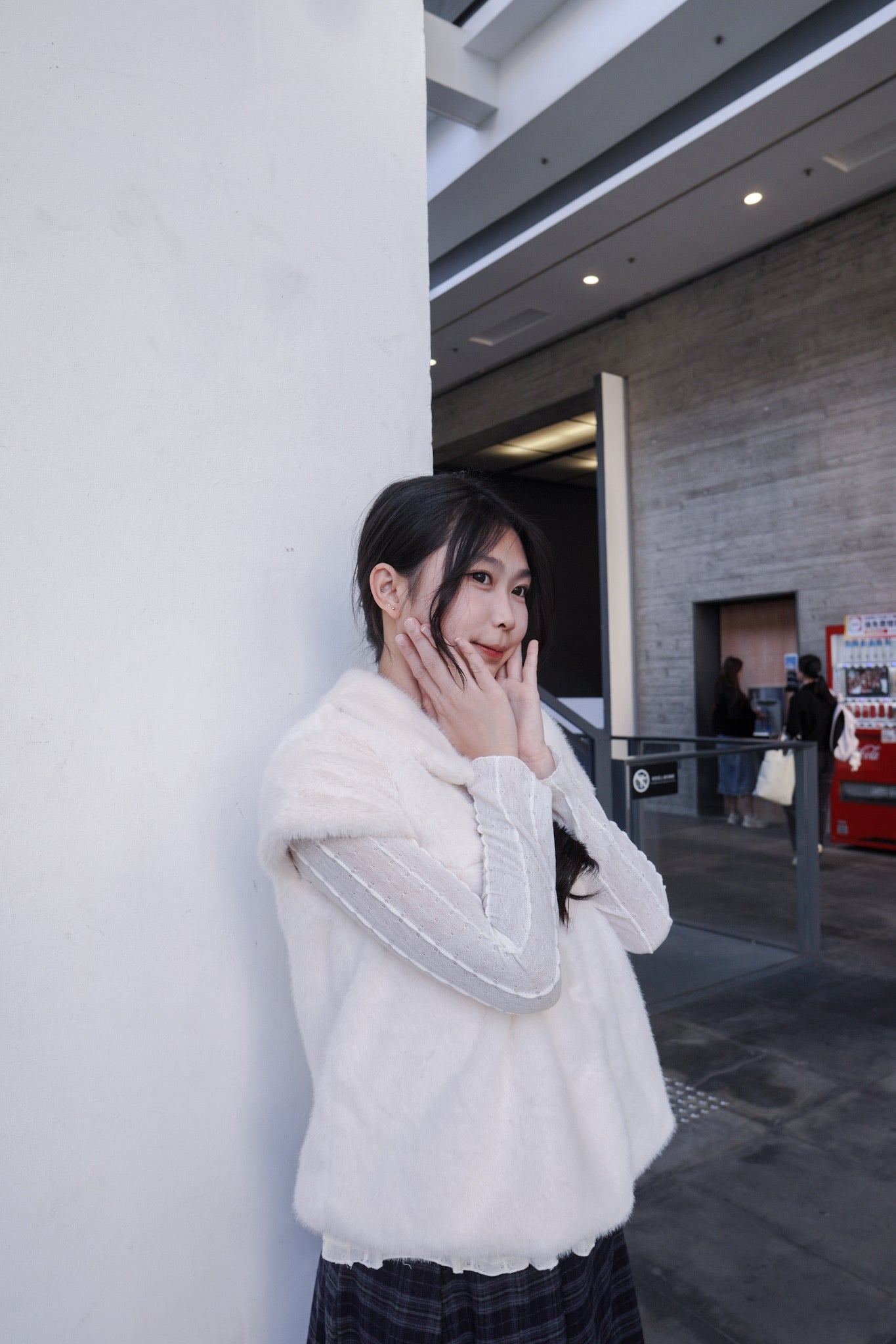 《 小眾毛茸茸短袖開胸馬甲外套 》