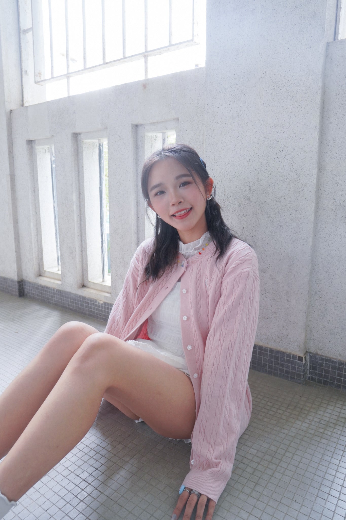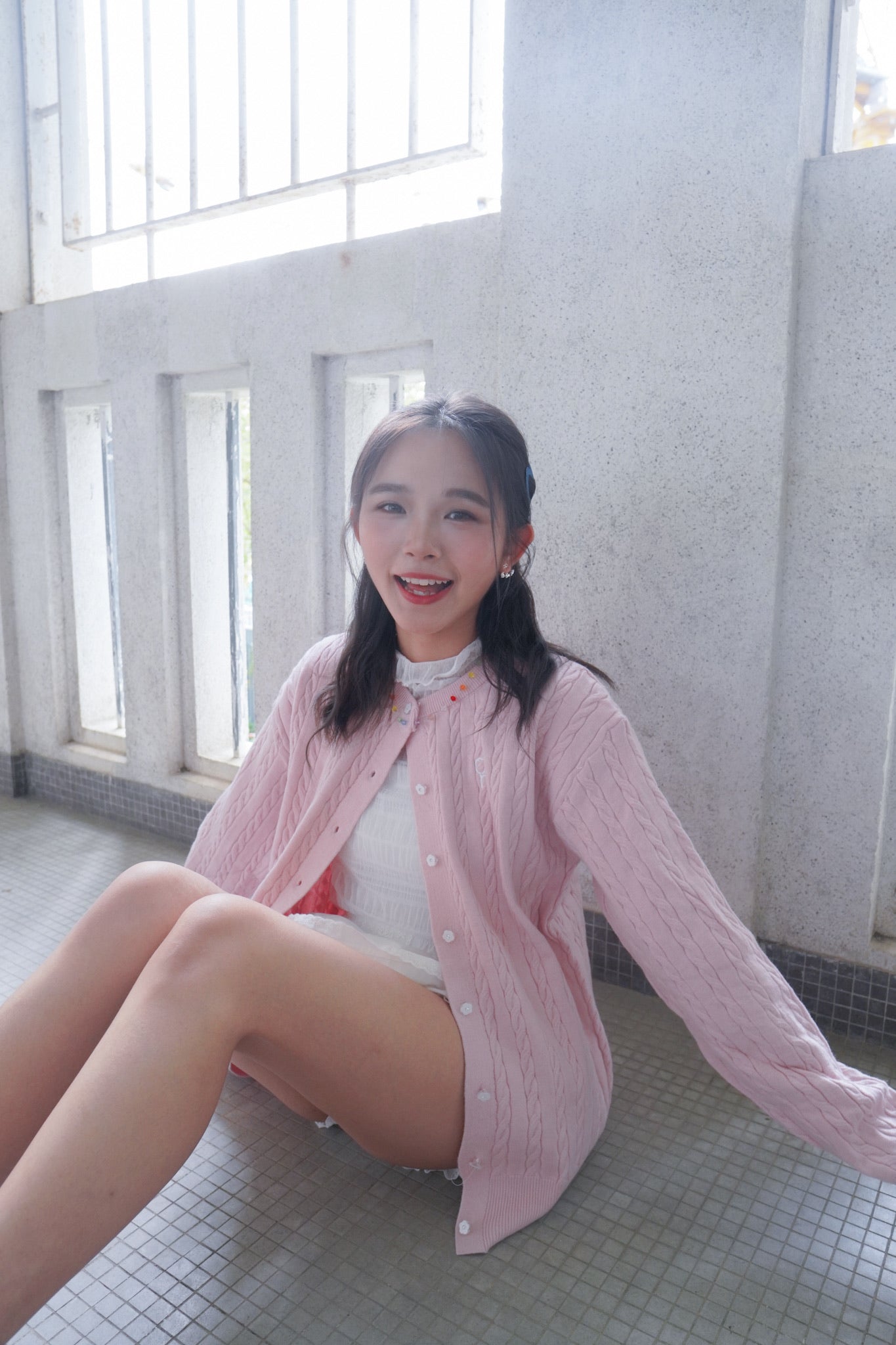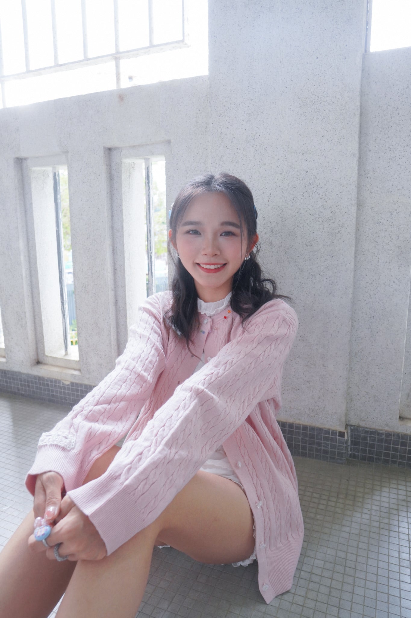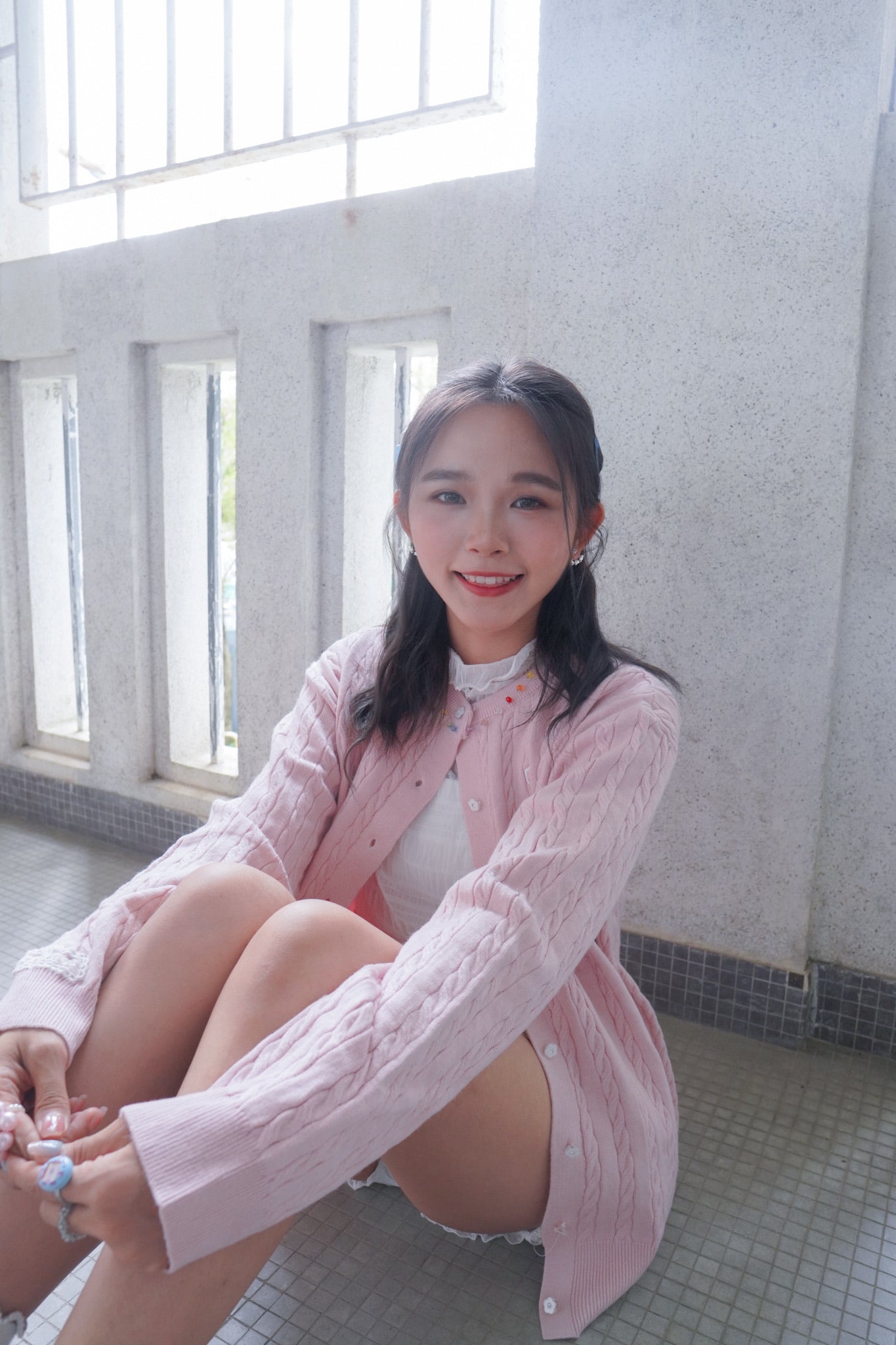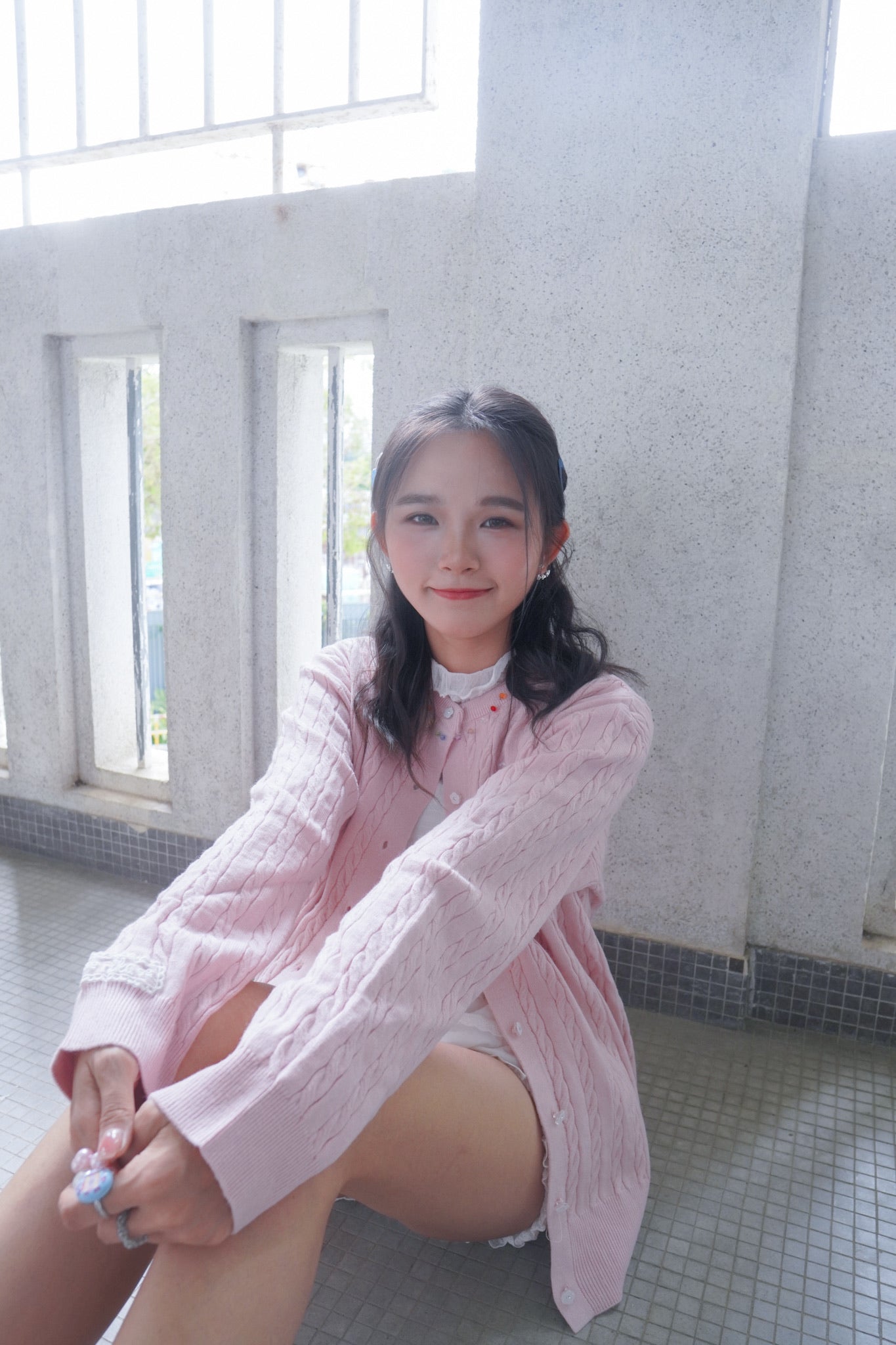 <現貨> 超可愛糖果色~棉花中長款花朵扣麻花開胸外套|淺粉