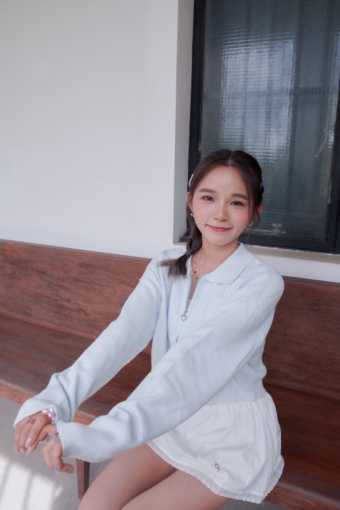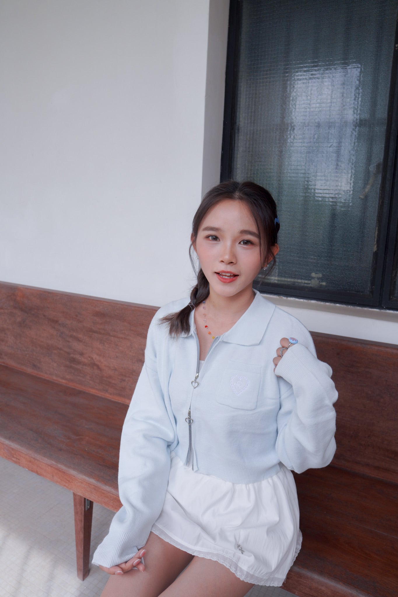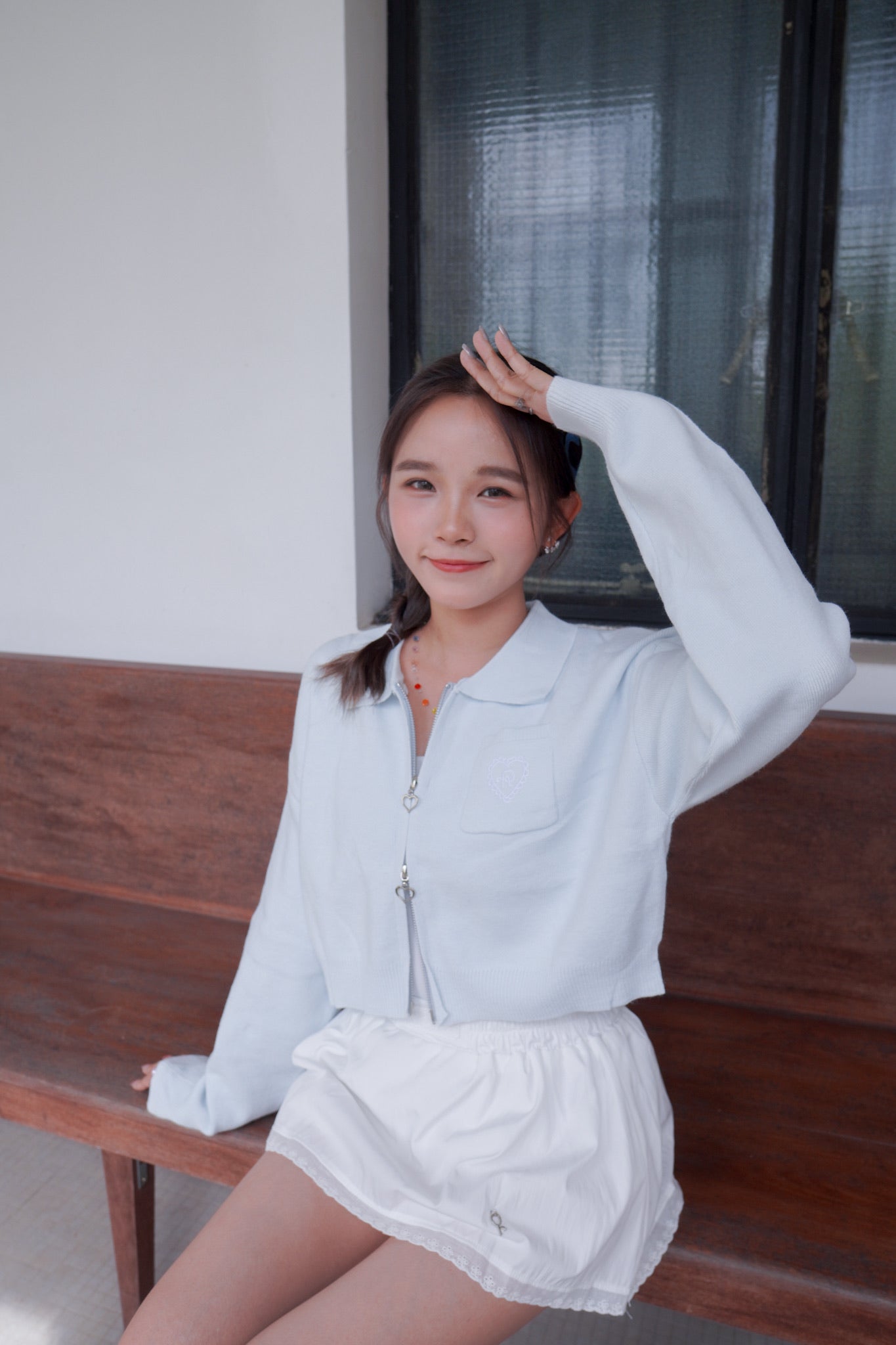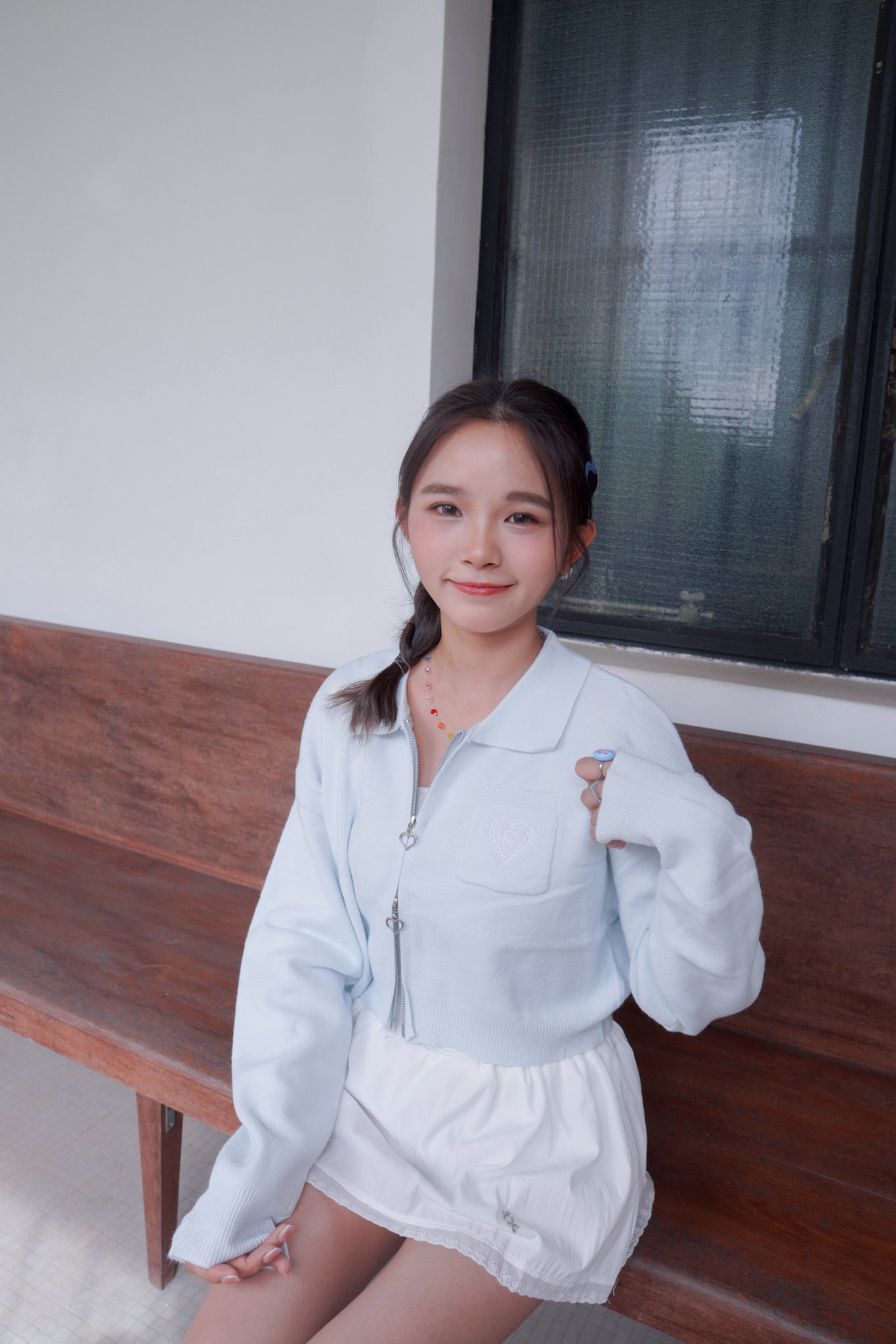 <預訂> 超可愛~馬卡龍愛心刺繡拉鍊口袋針織上衣|天藍