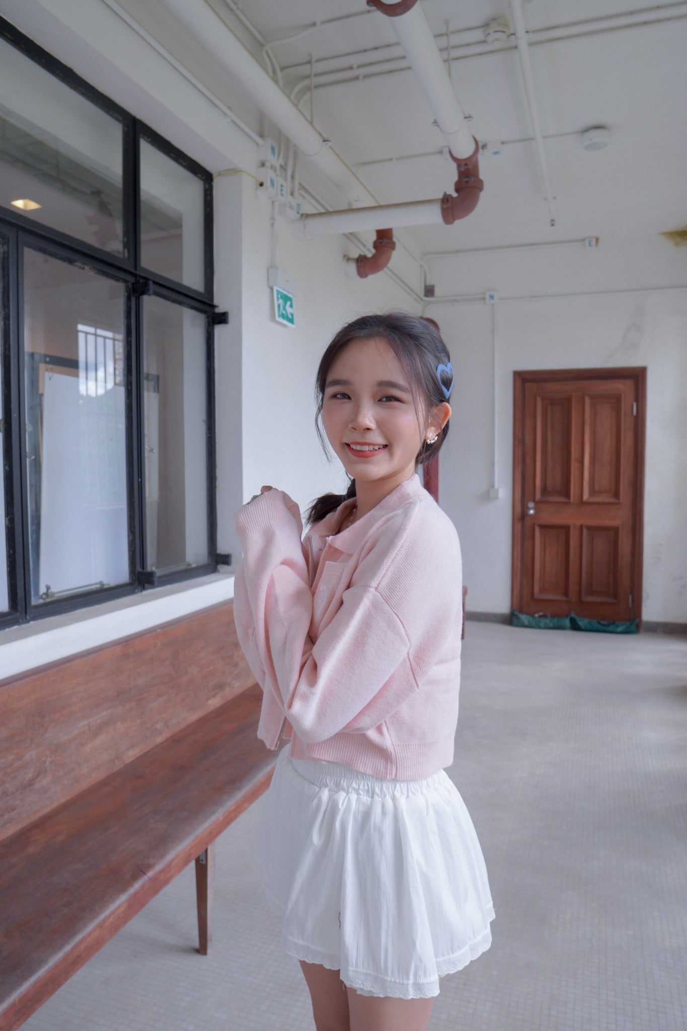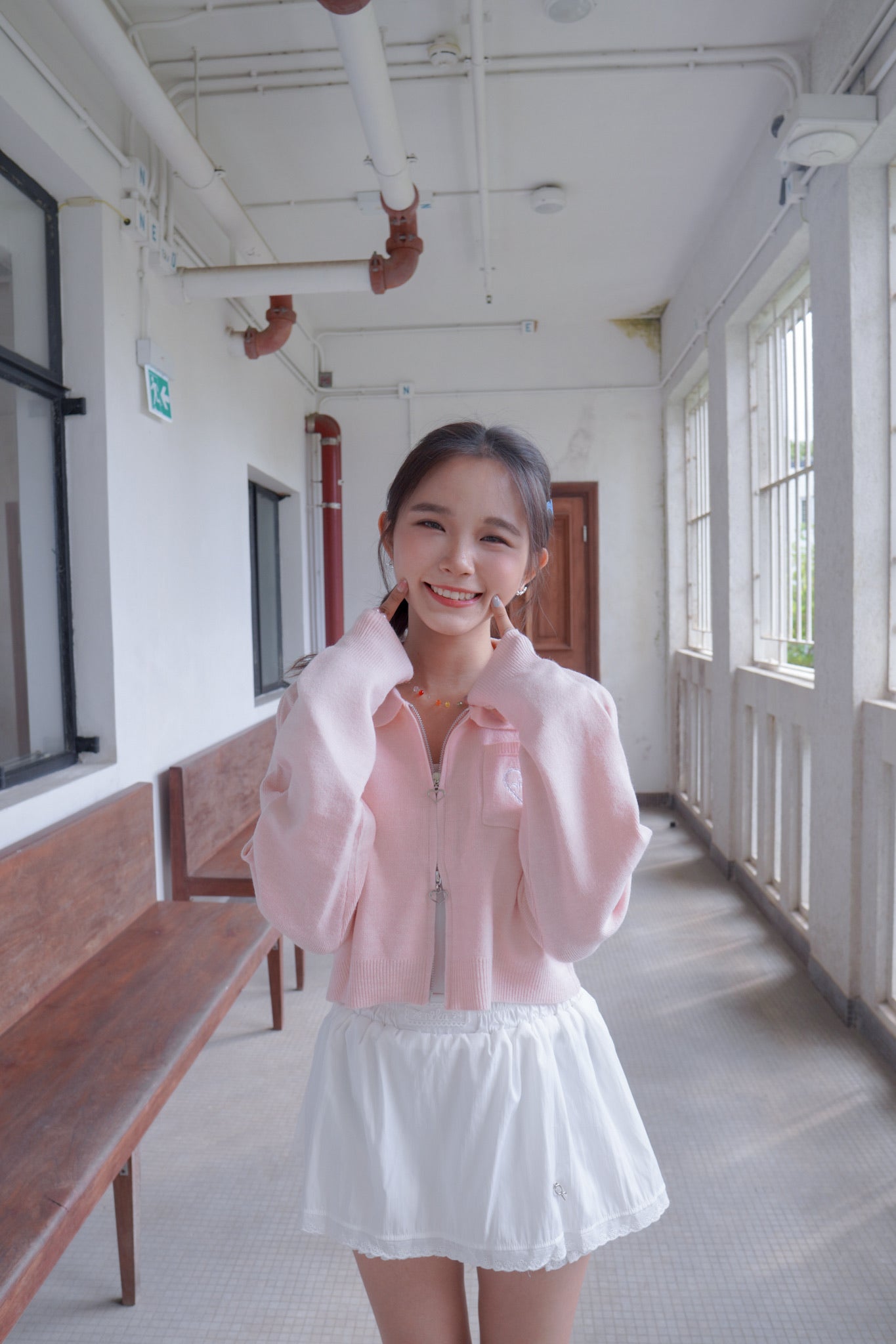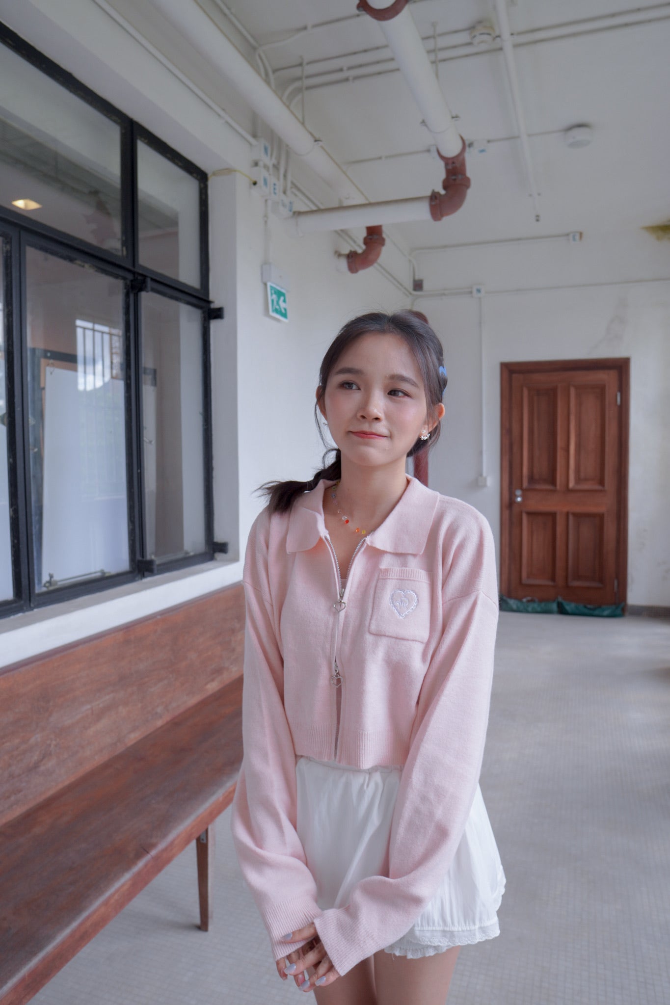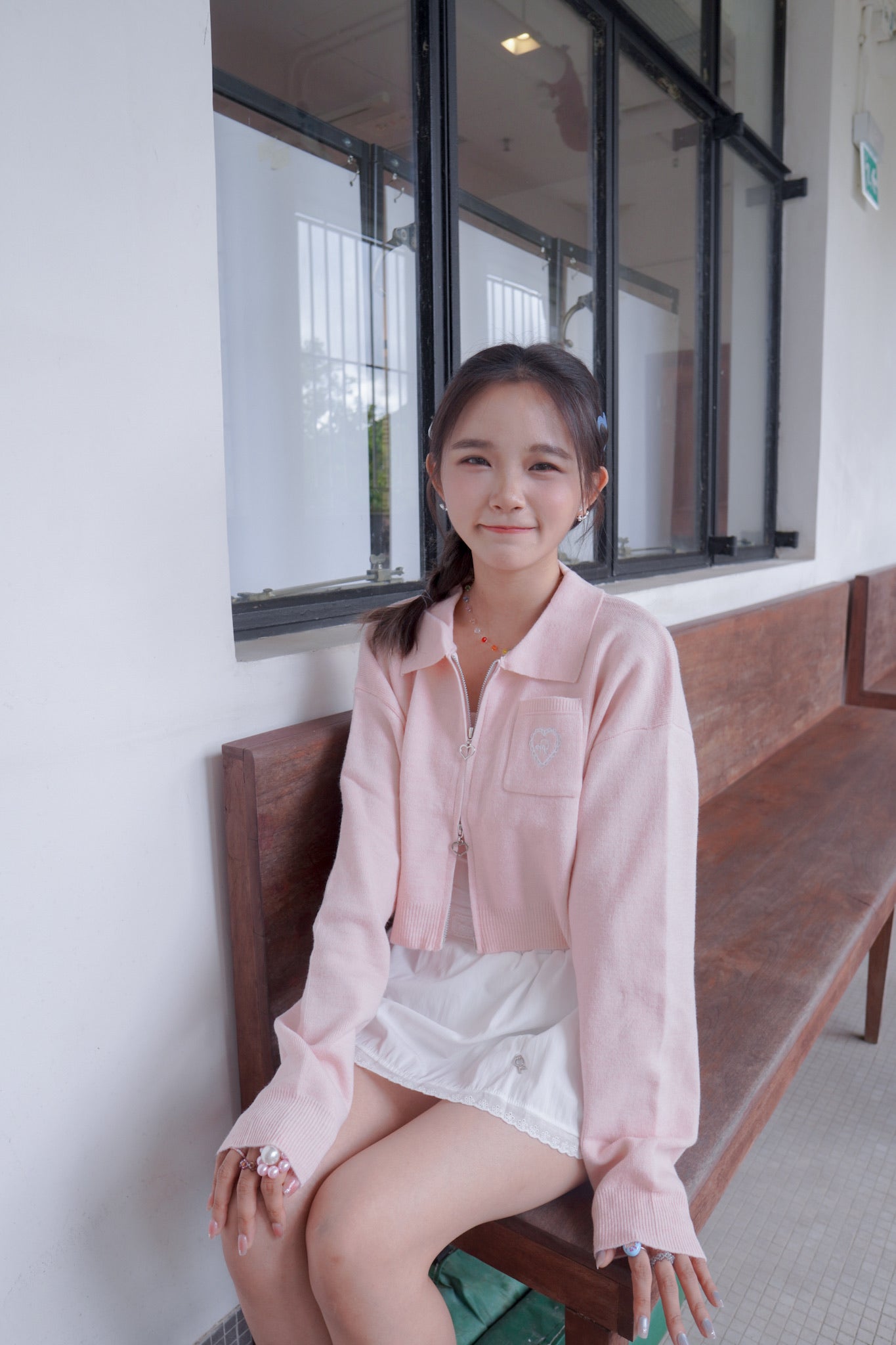 <現貨> 超可愛~馬卡龍愛心刺繡拉鍊口袋針織上衣|淺粉