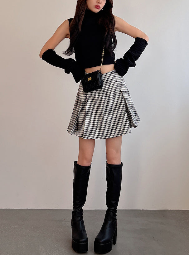 <預訂> 千鳥紋喇叭傘型短款裙(含打底)