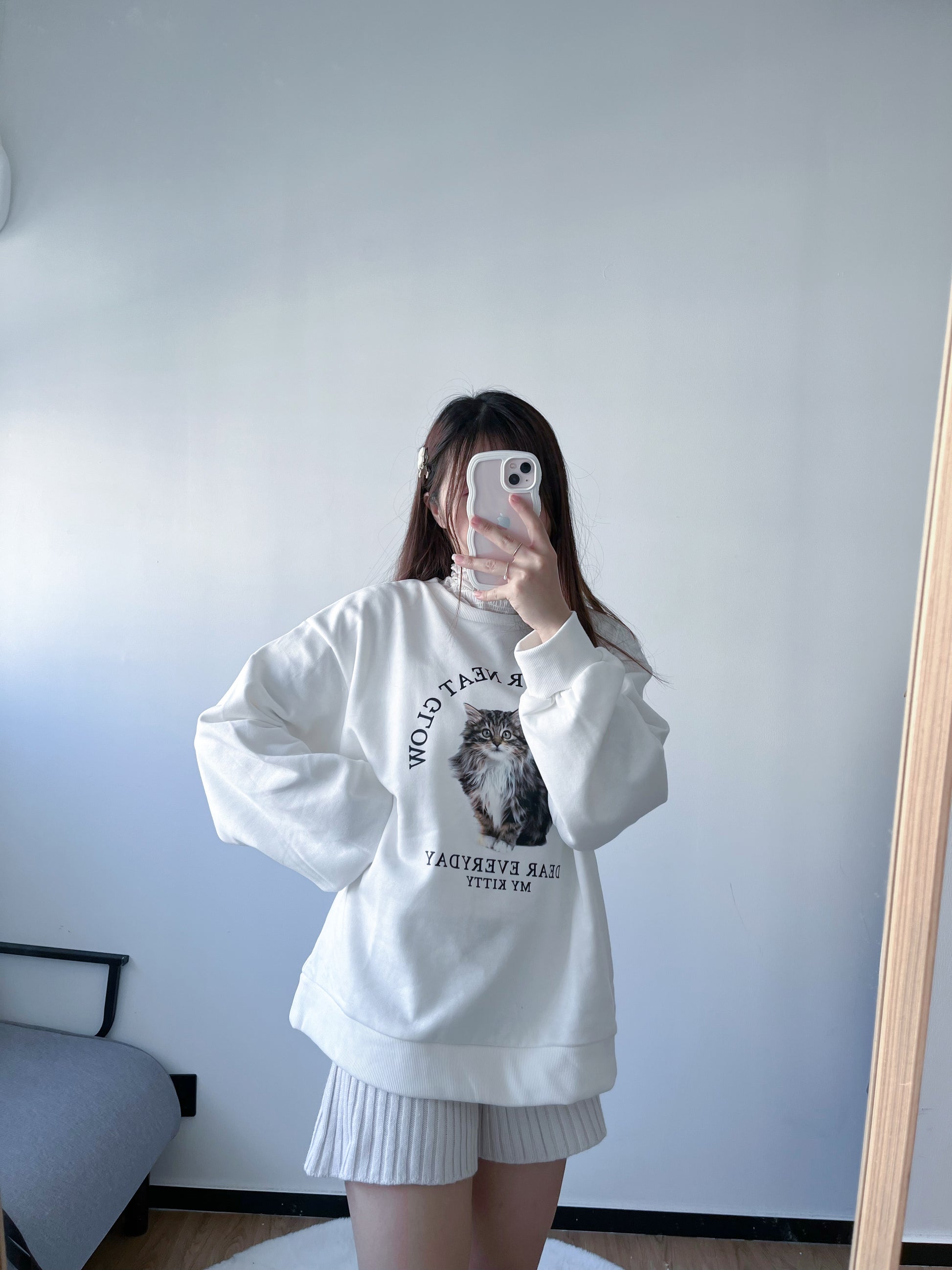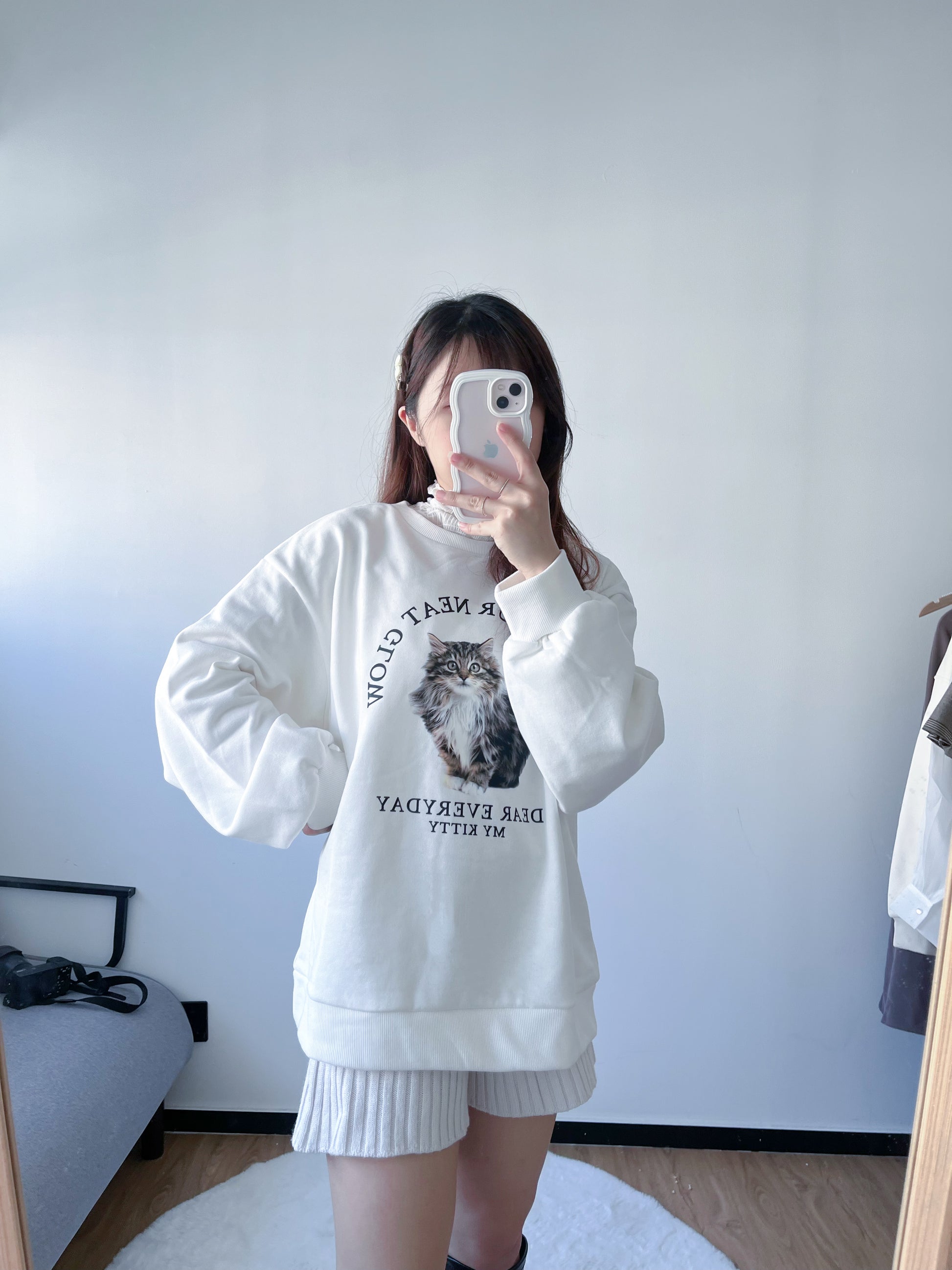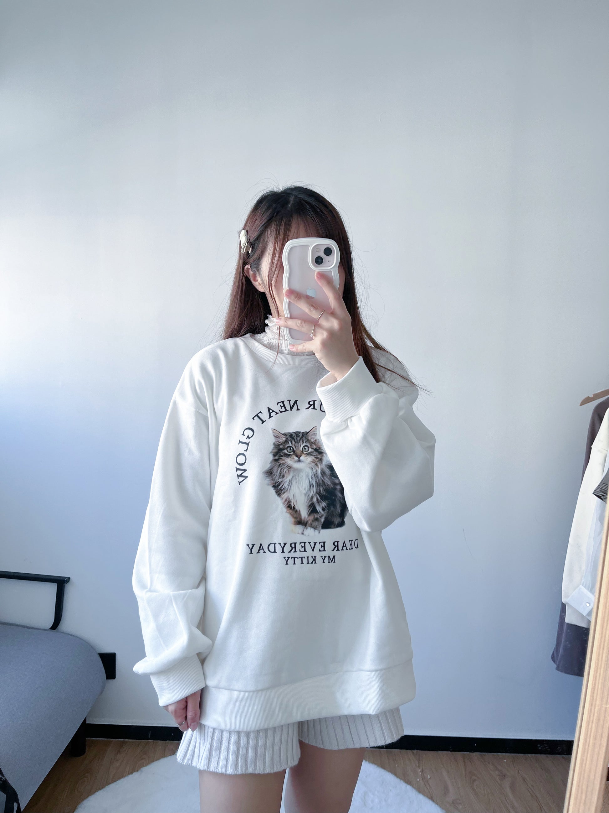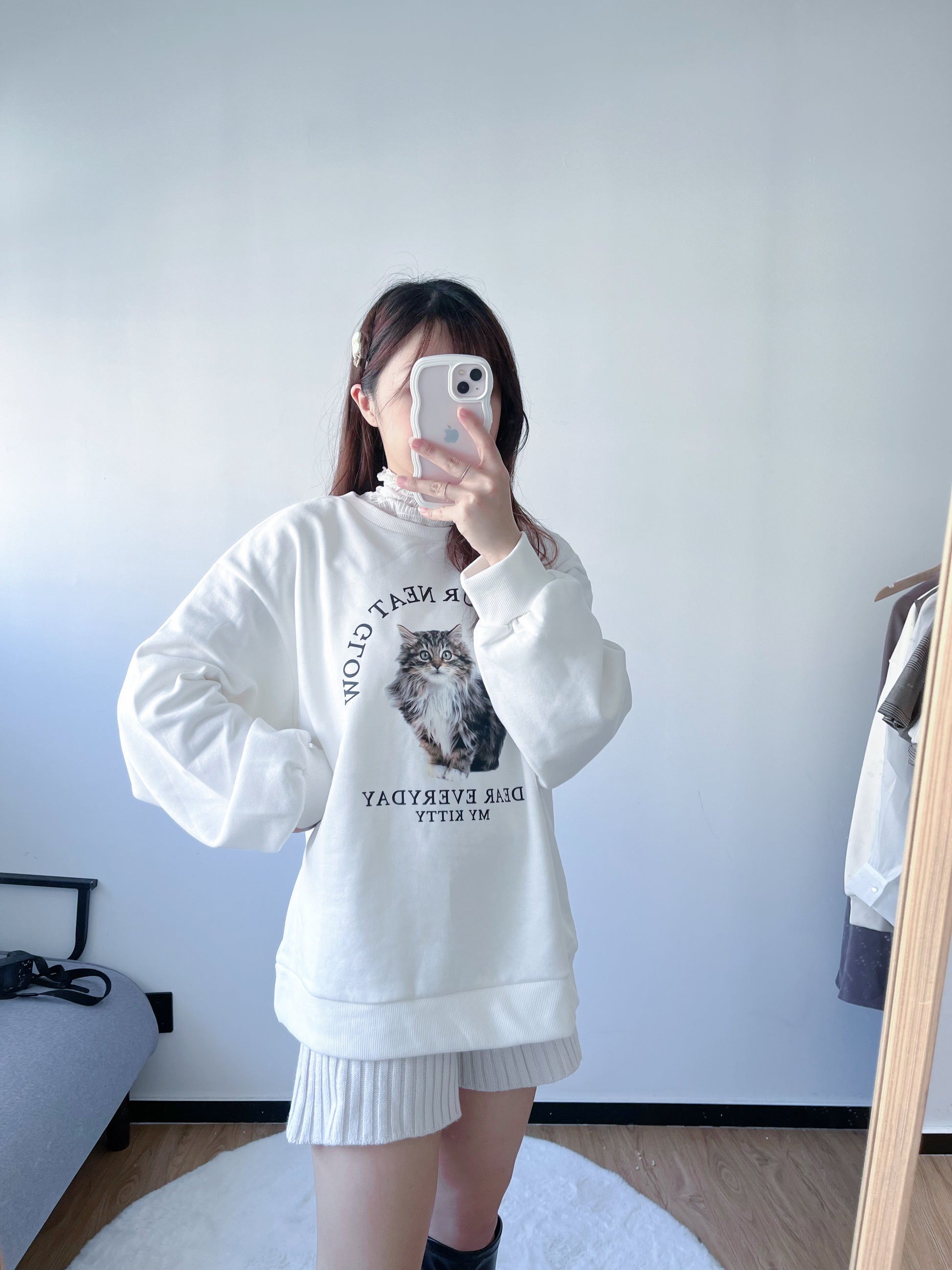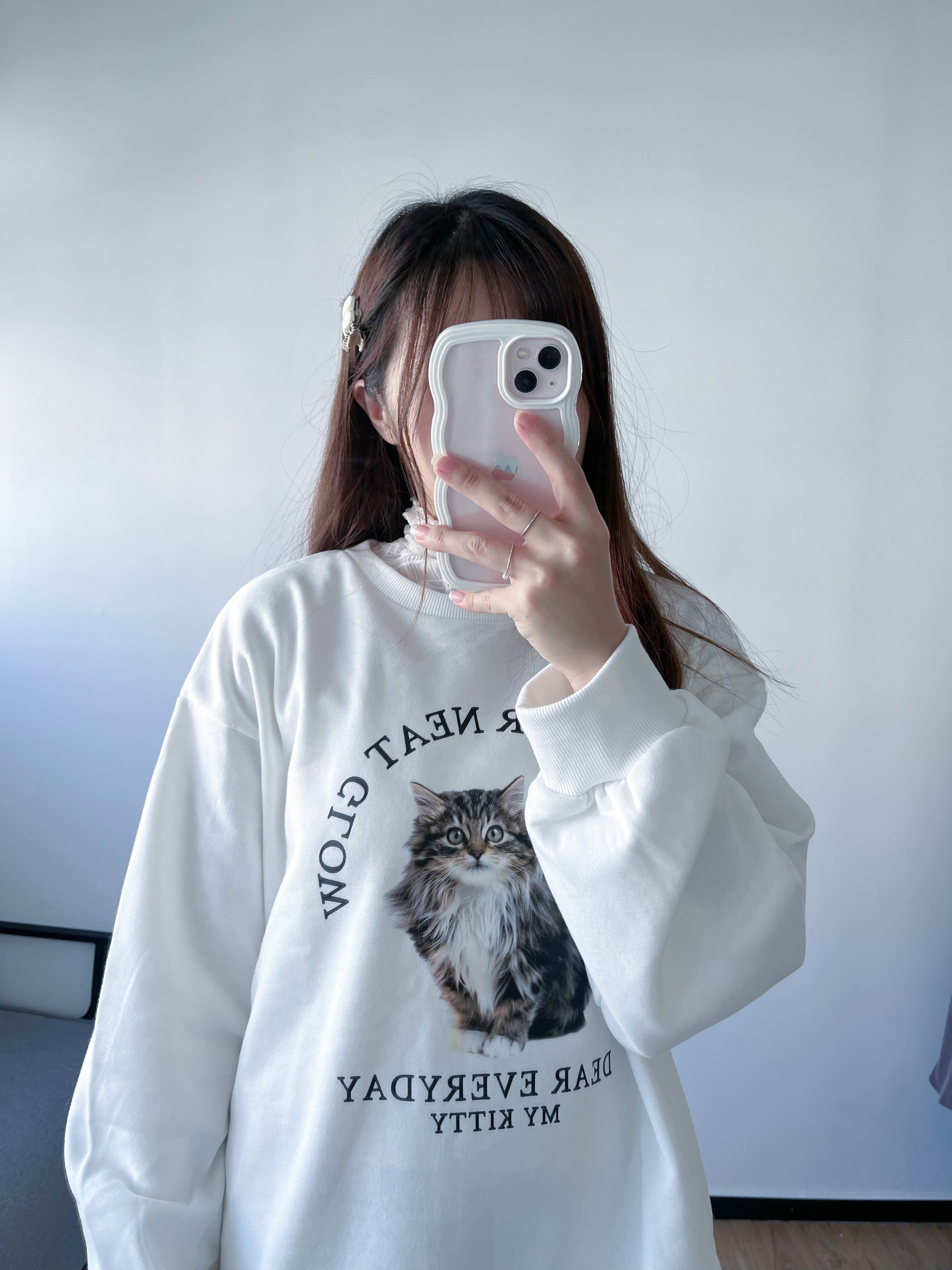 <預訂> 暖笠笠可愛小貓圖案拉絨毛衛衣|兩色入