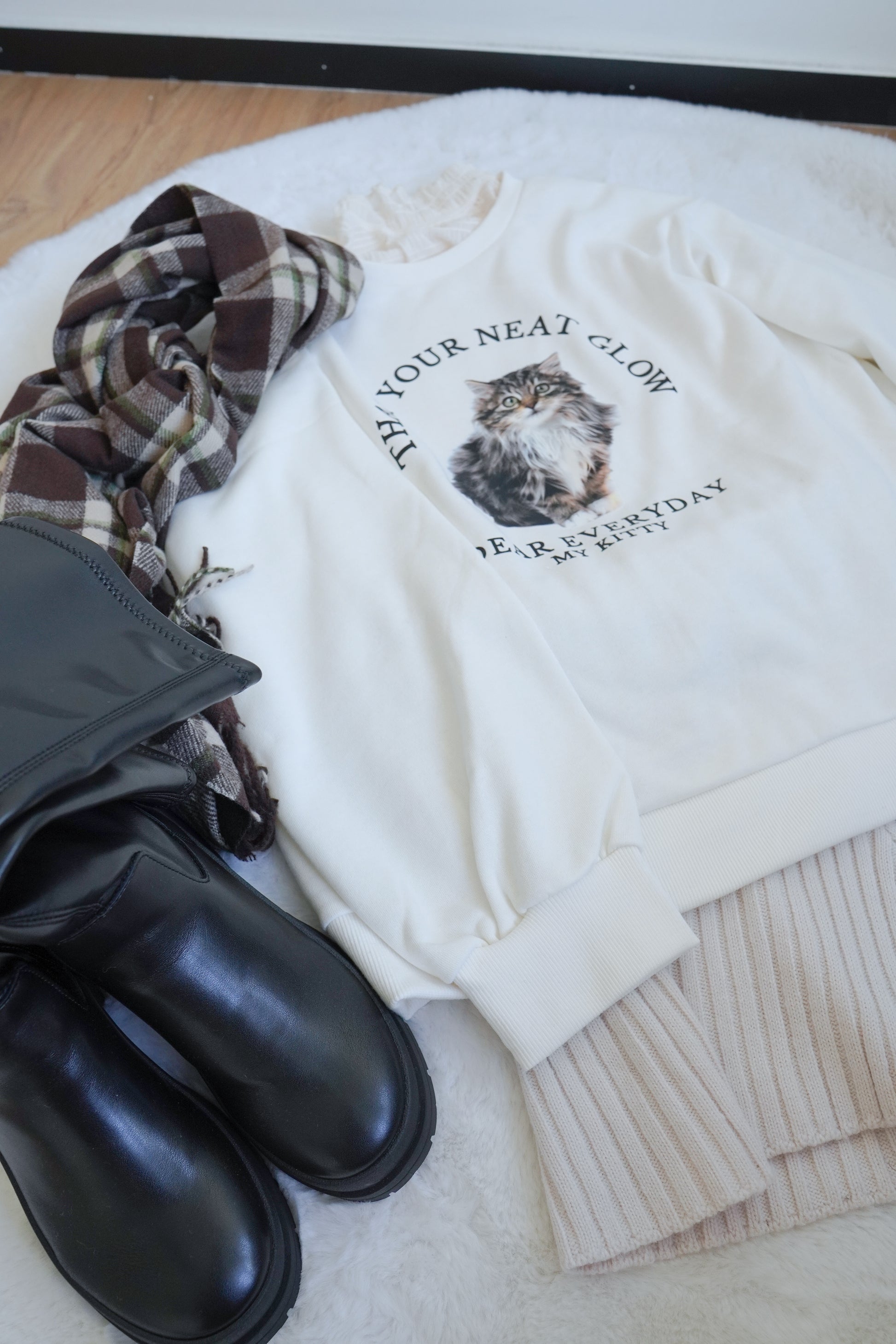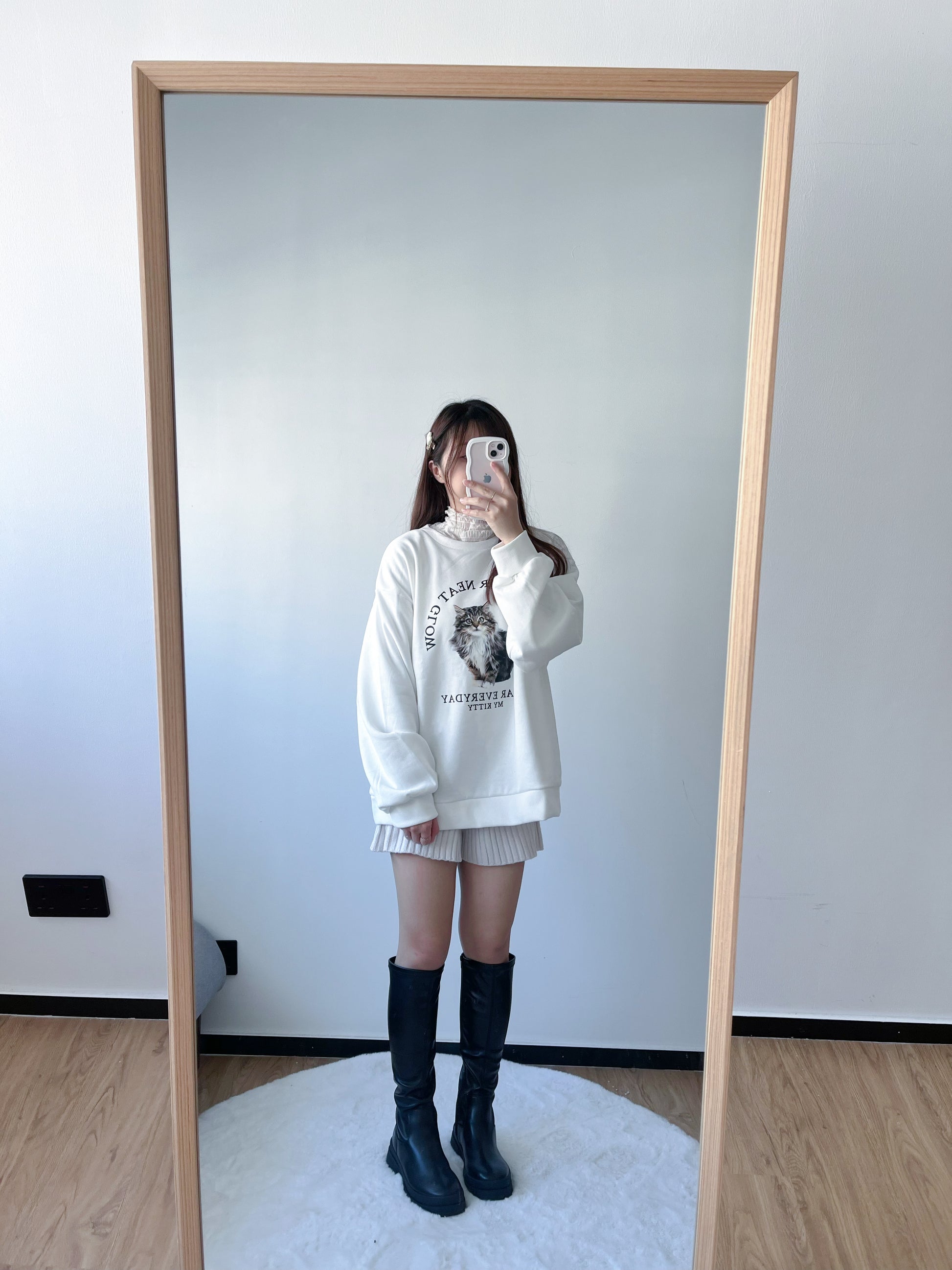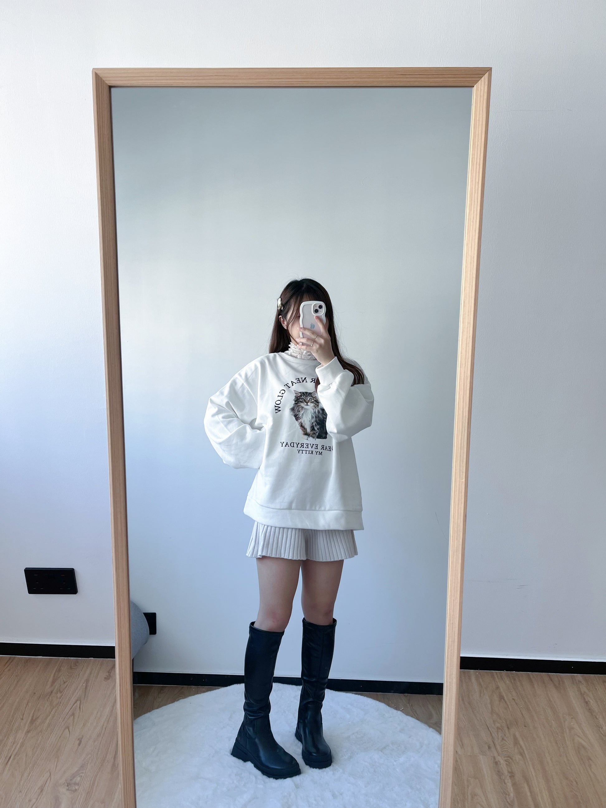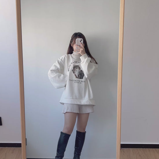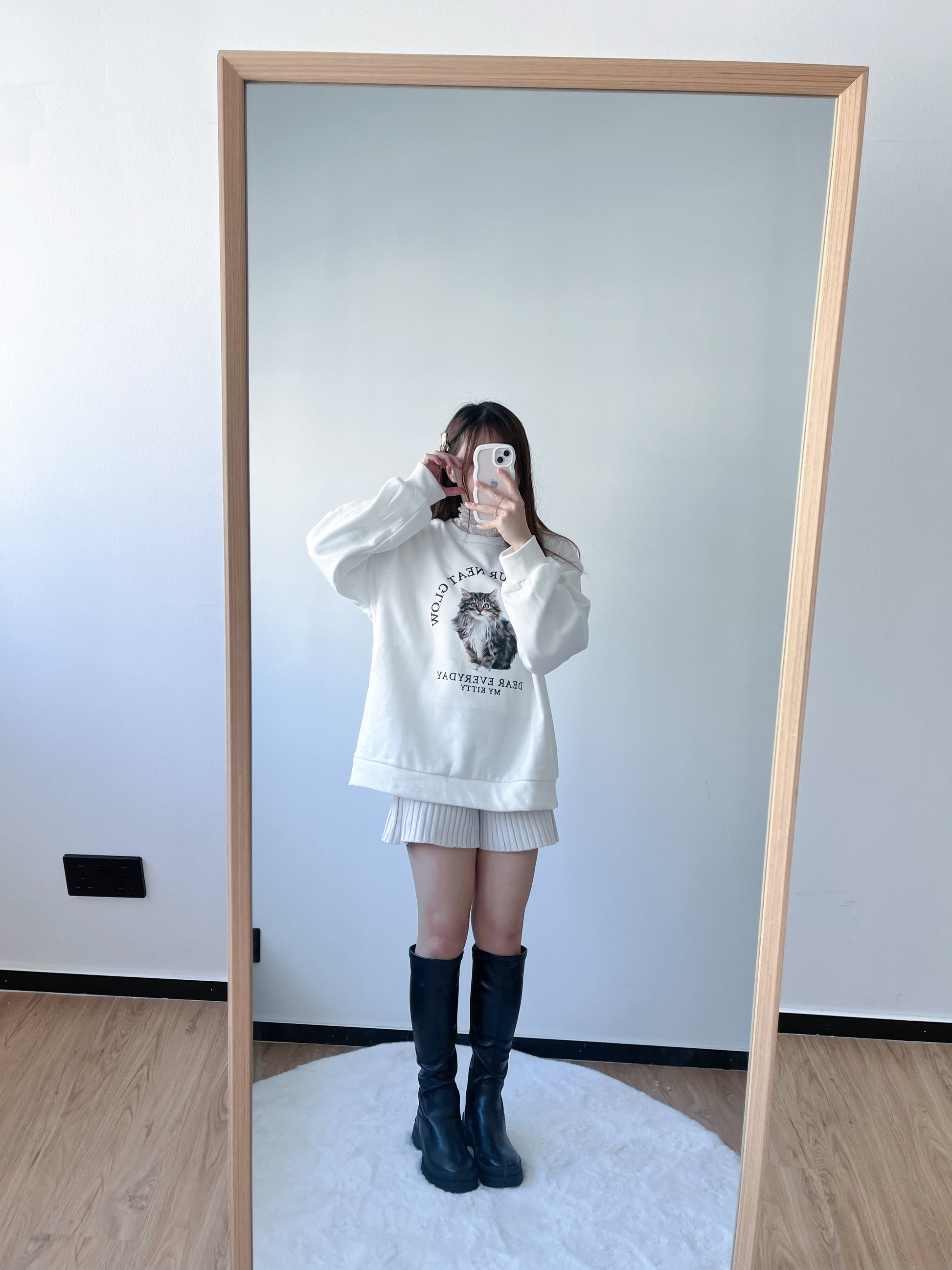 <預訂> 暖笠笠可愛小貓圖案拉絨毛衛衣|兩色入