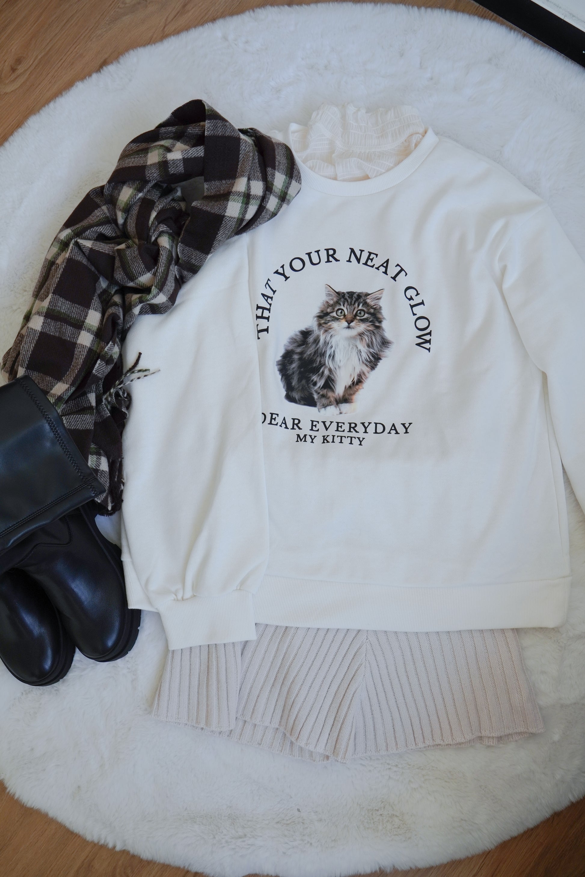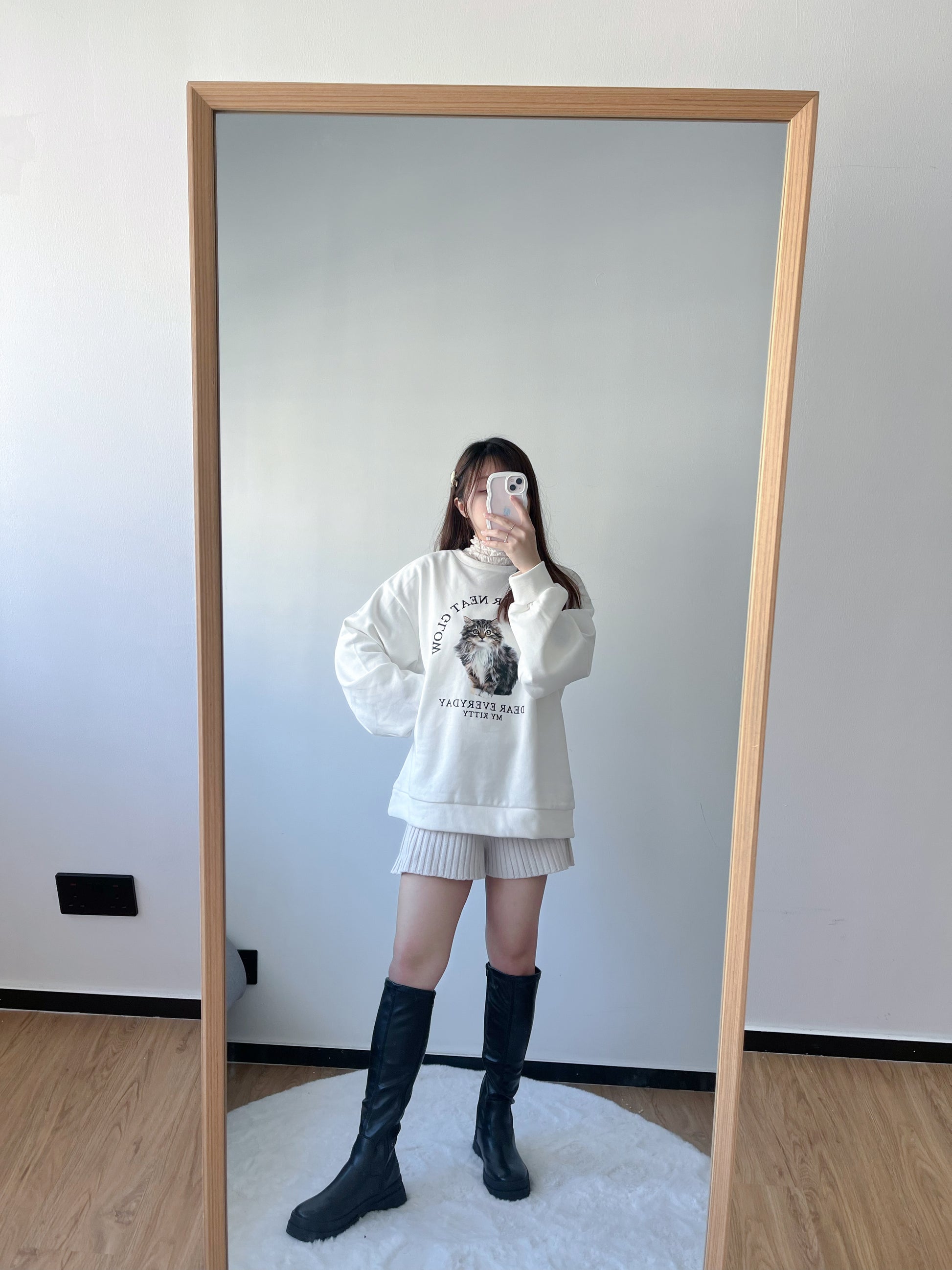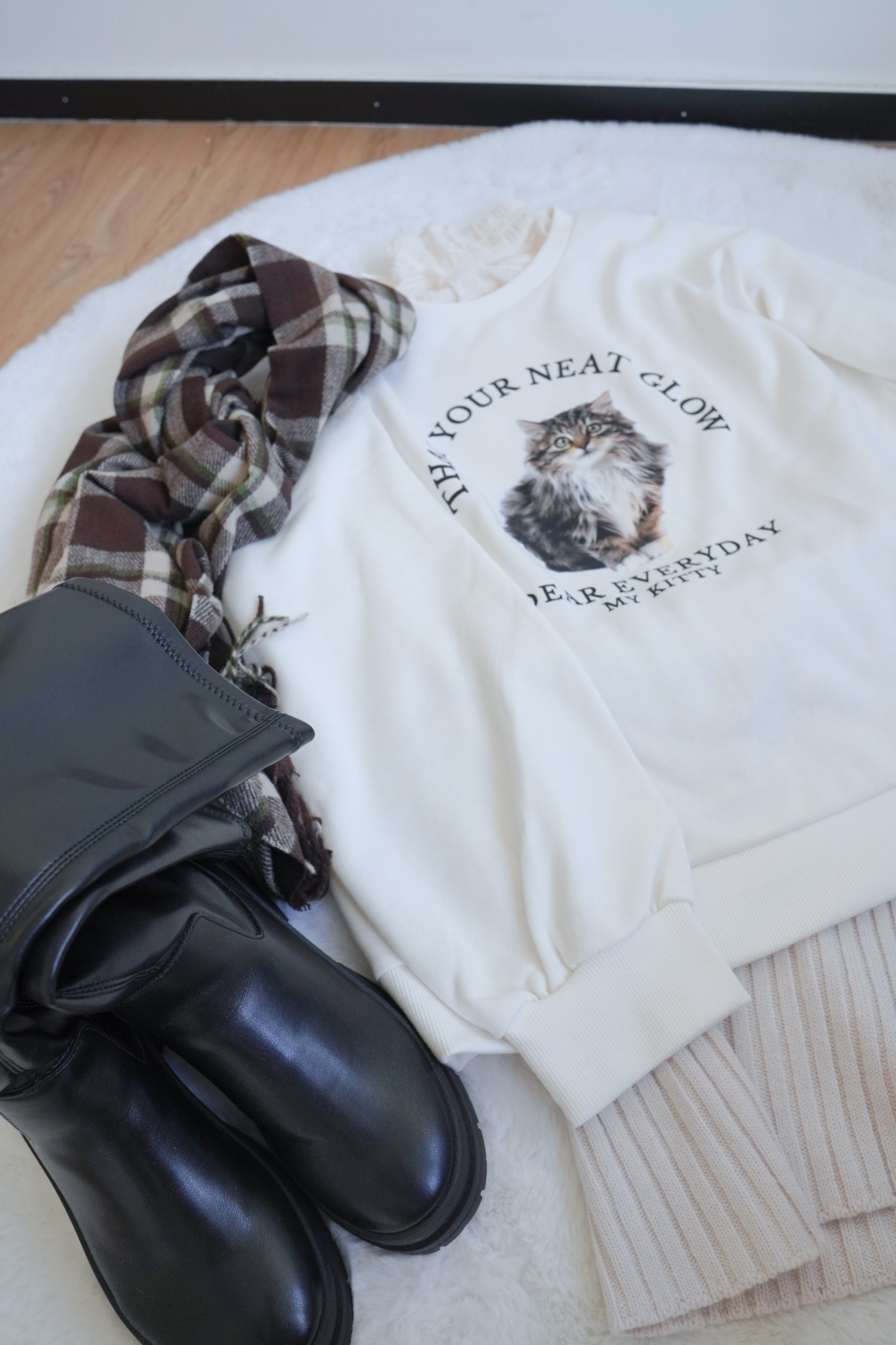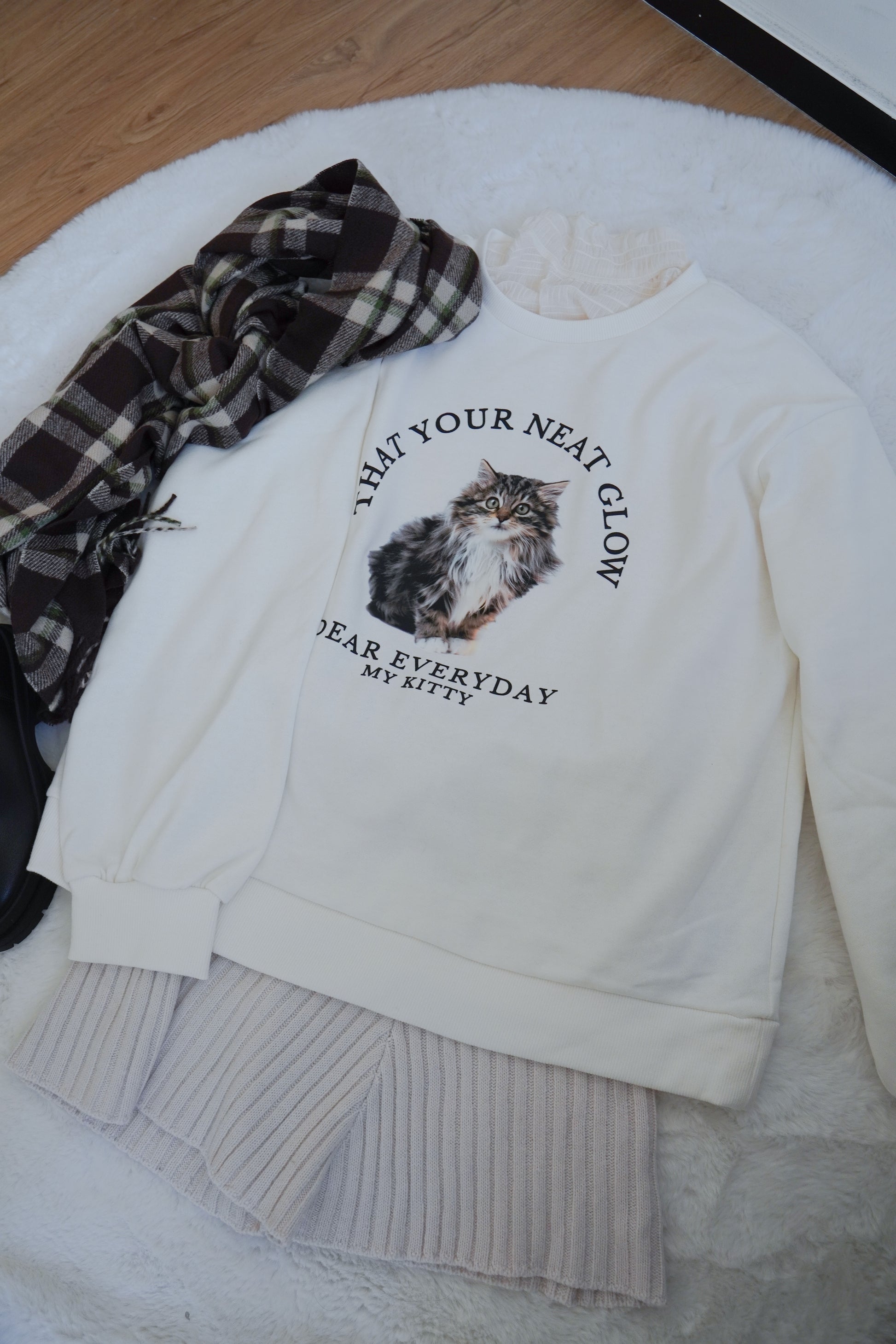 <預訂> 暖笠笠可愛小貓圖案拉絨毛衛衣|兩色入