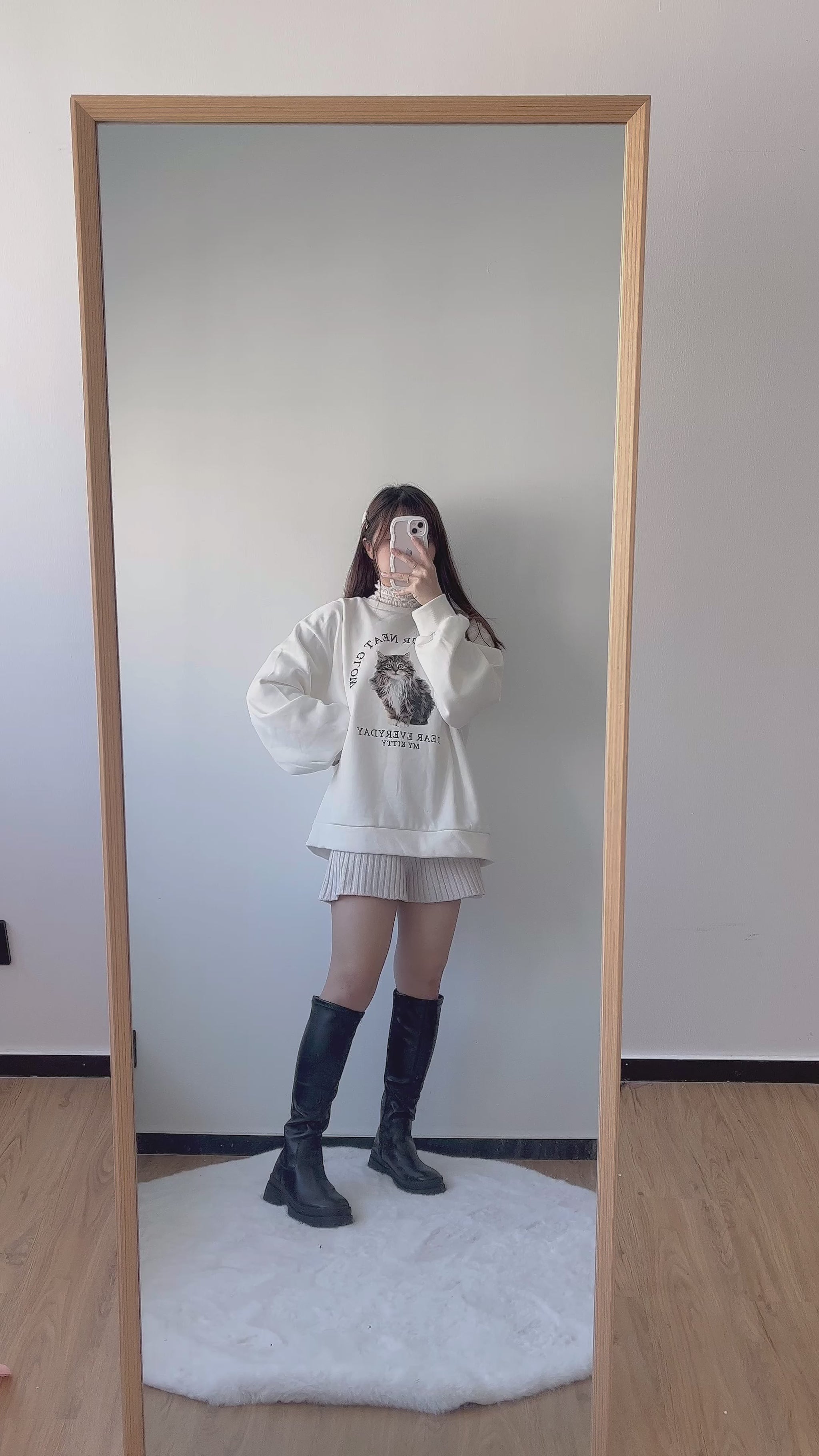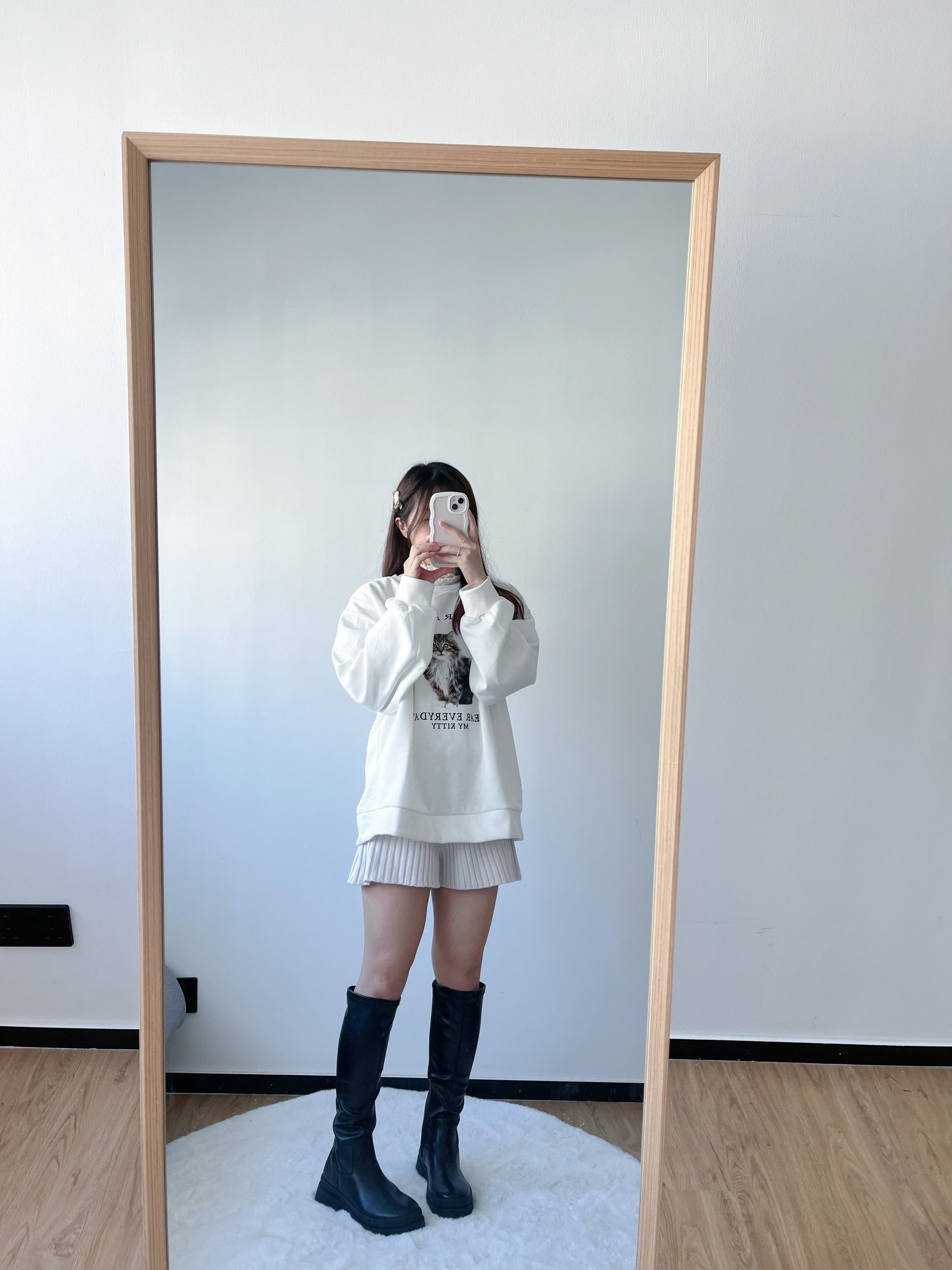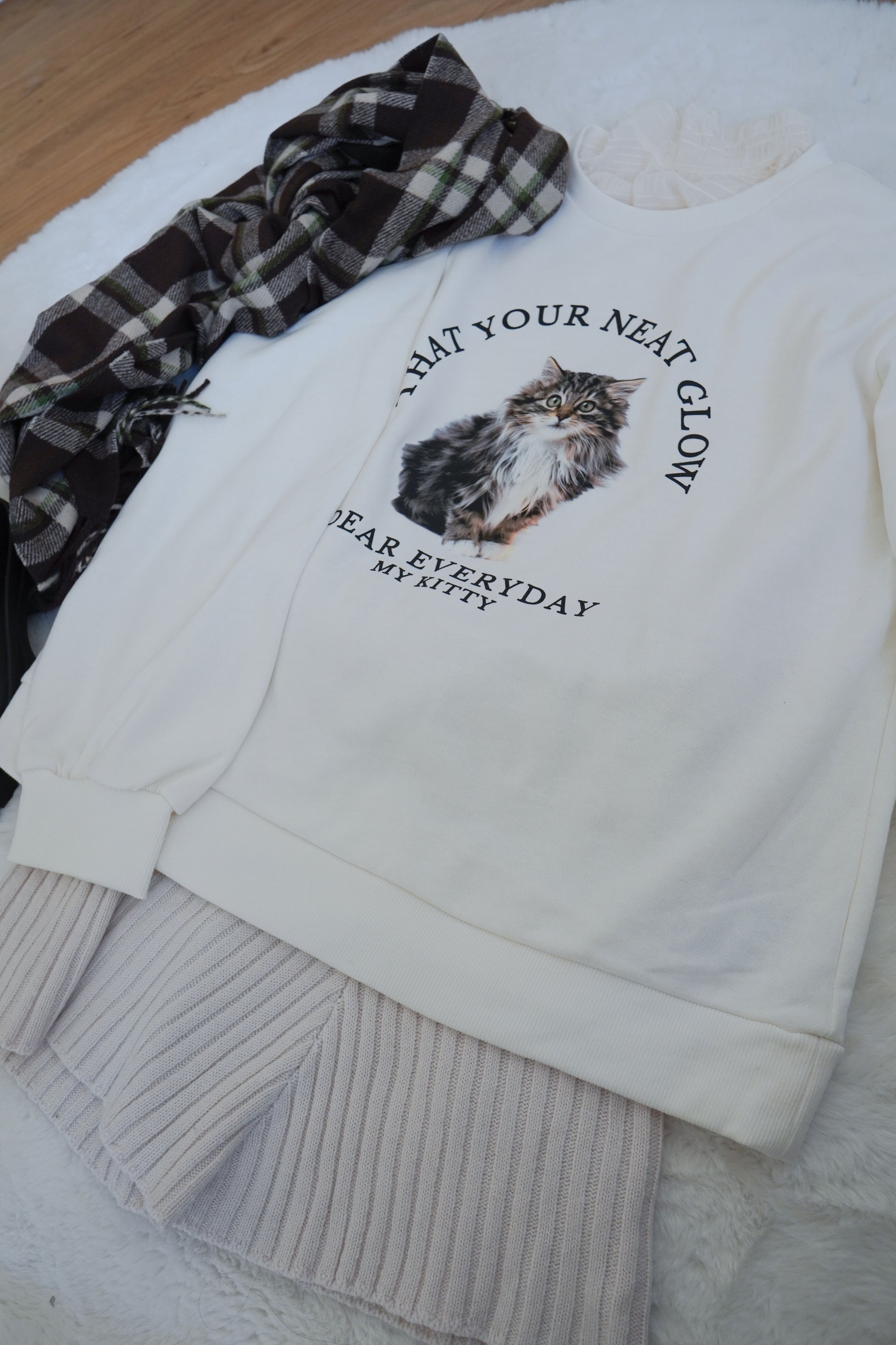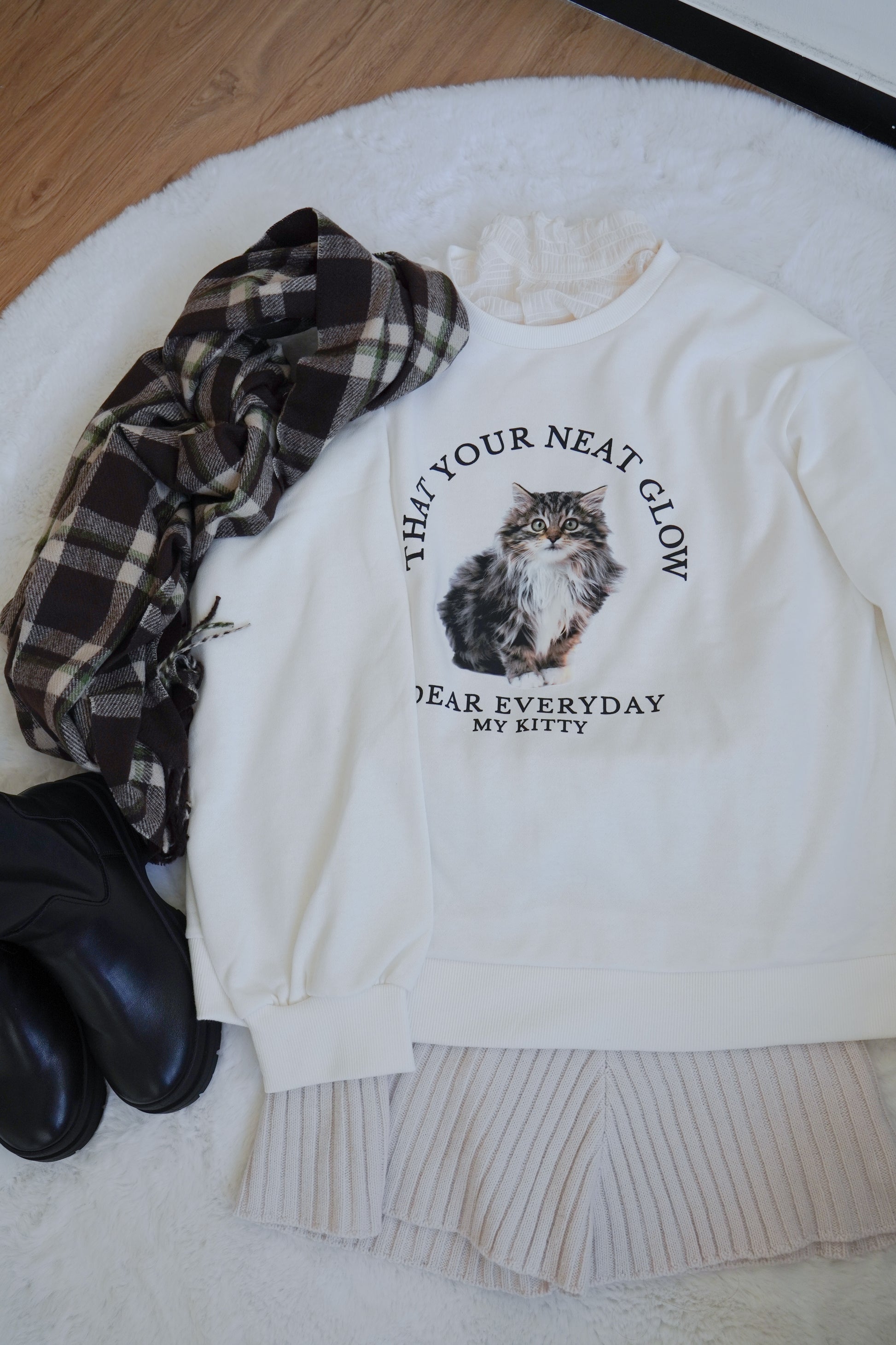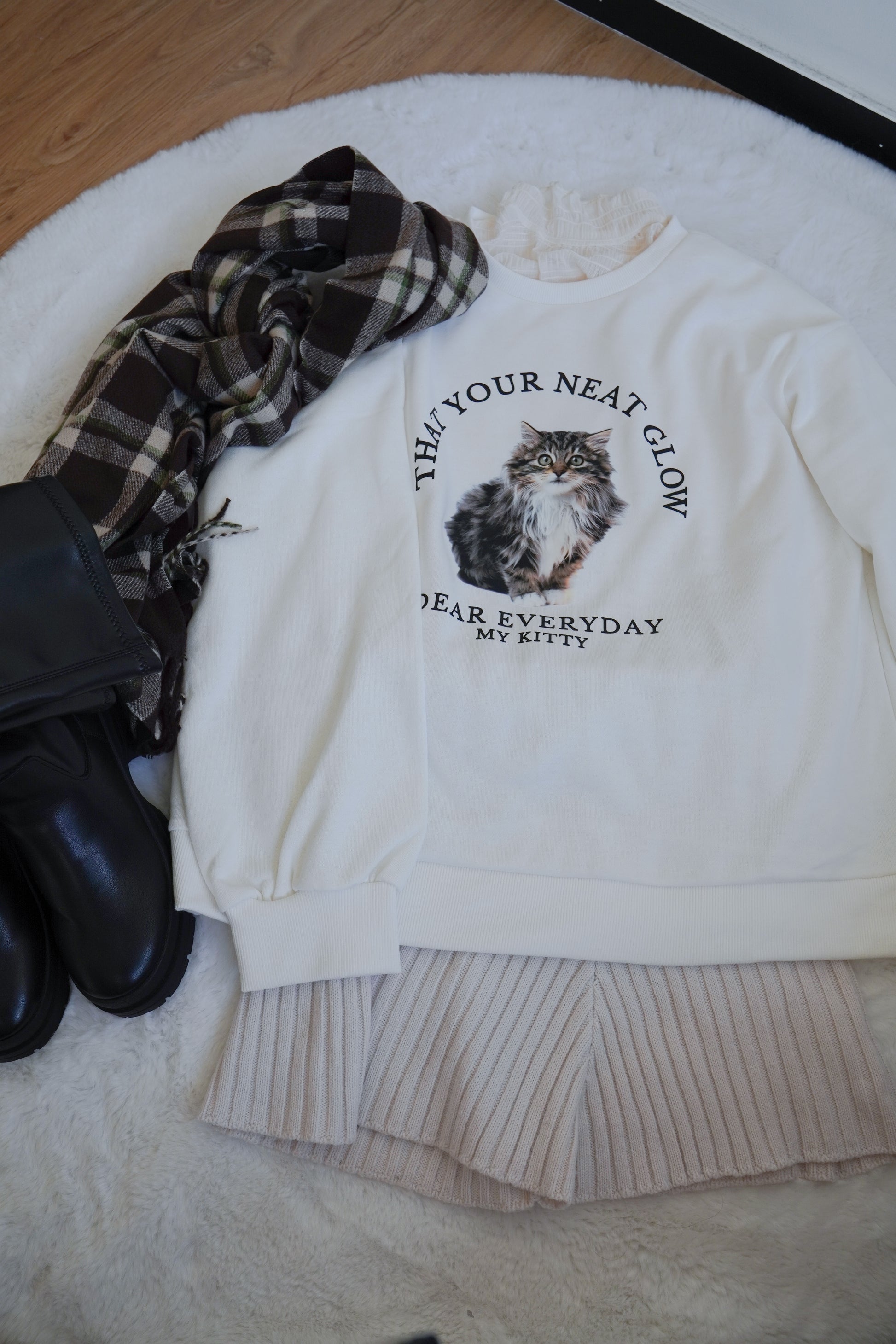 <預訂> 暖笠笠可愛小貓圖案拉絨毛衛衣|兩色入