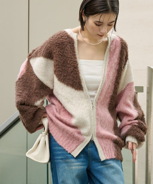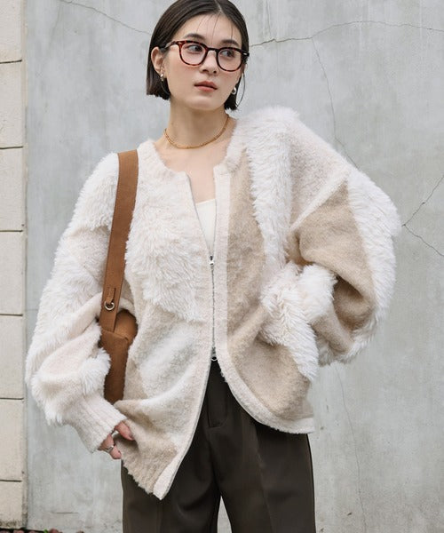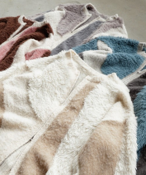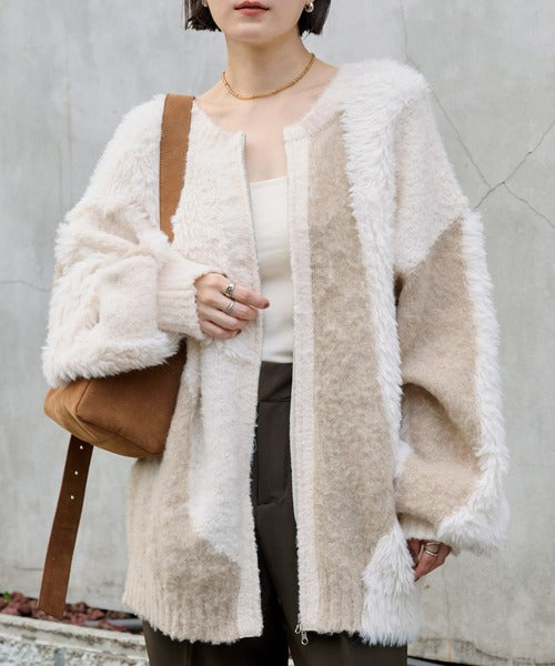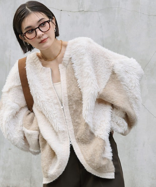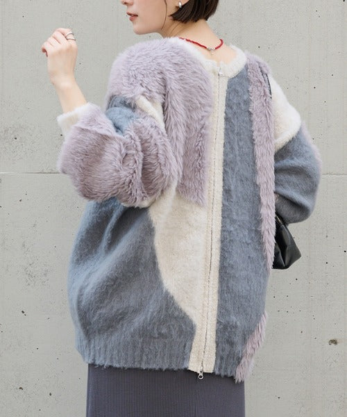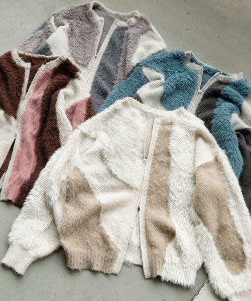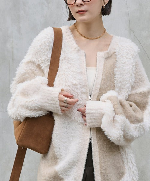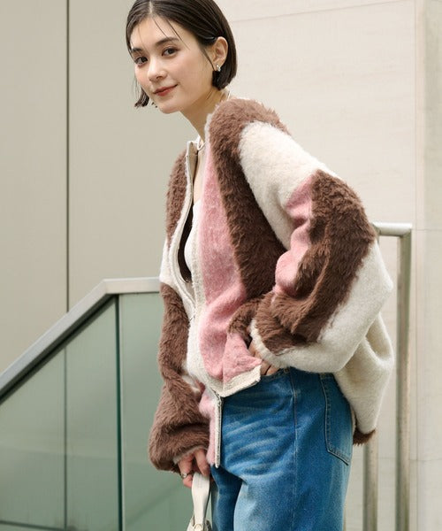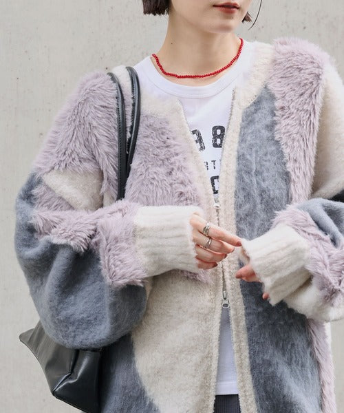 <預訂> 日本大人氣♡日牌 Mono Mart 2-Ways 毛茸茸蓬鬆混色雙拉鍊針織開胸外套|四色入