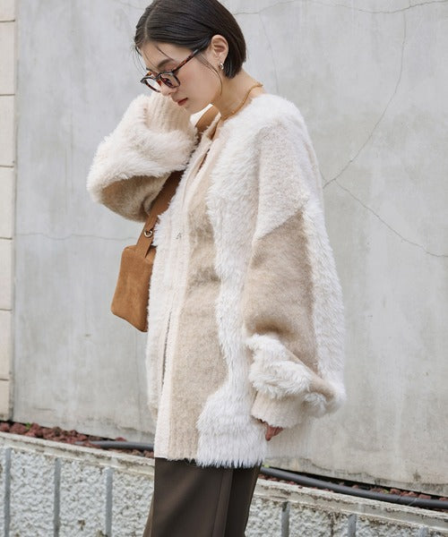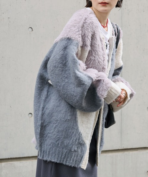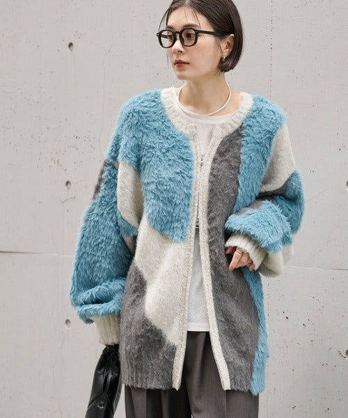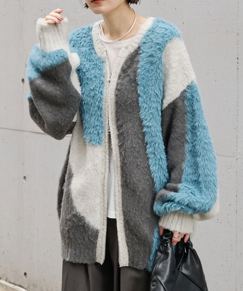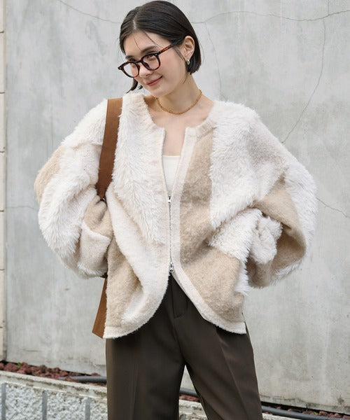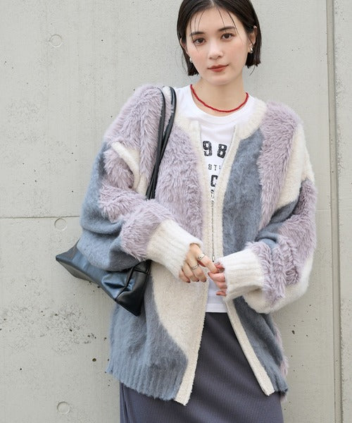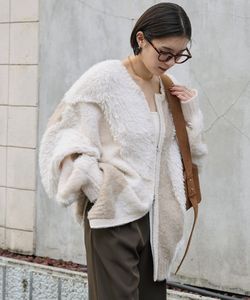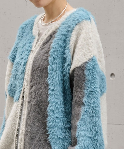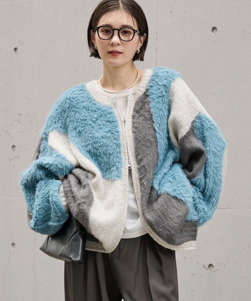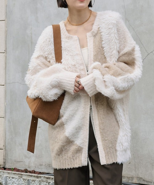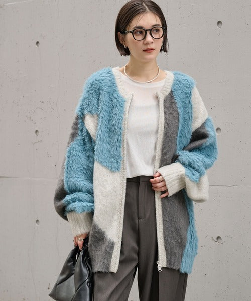 <預訂> 日本大人氣♡日牌 Mono Mart 2-Ways 毛茸茸蓬鬆混色雙拉鍊針織開胸外套|四色入