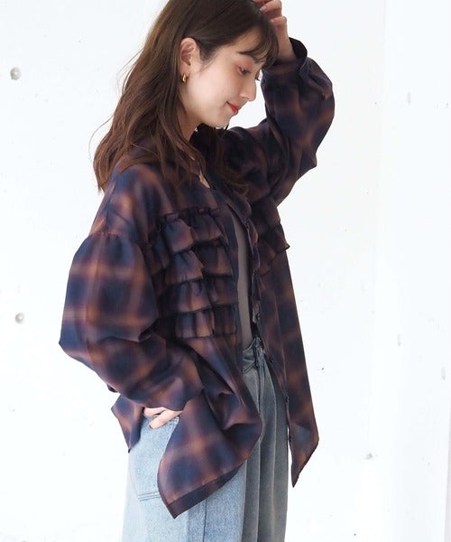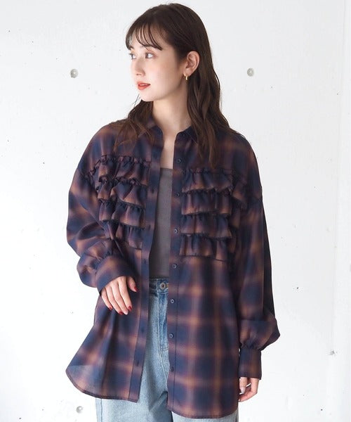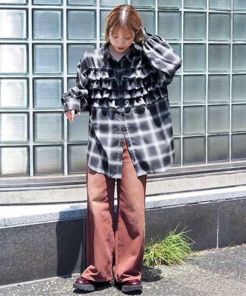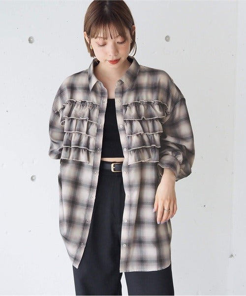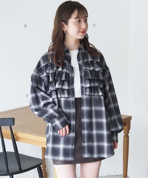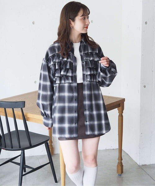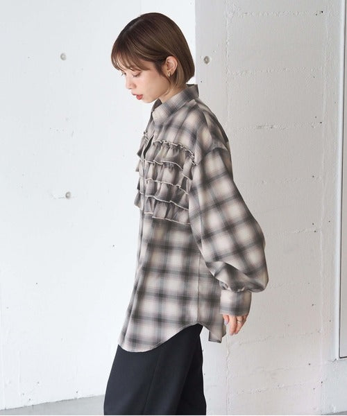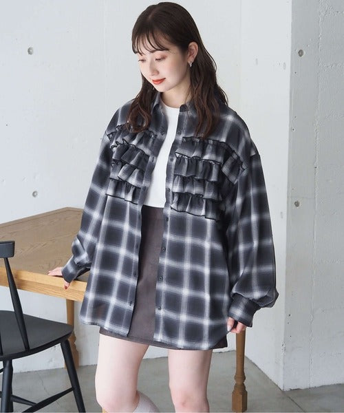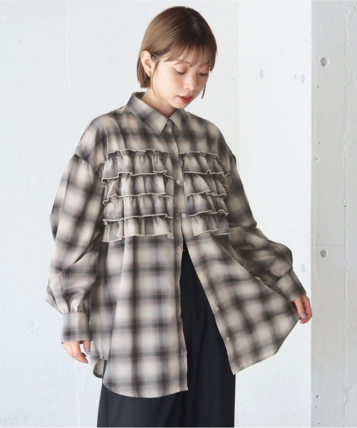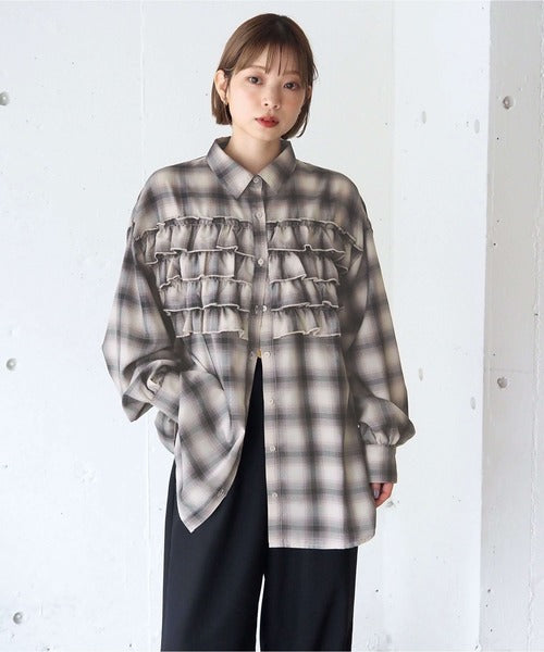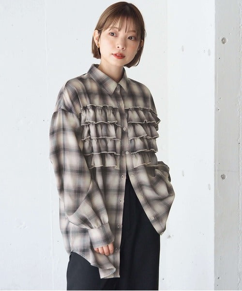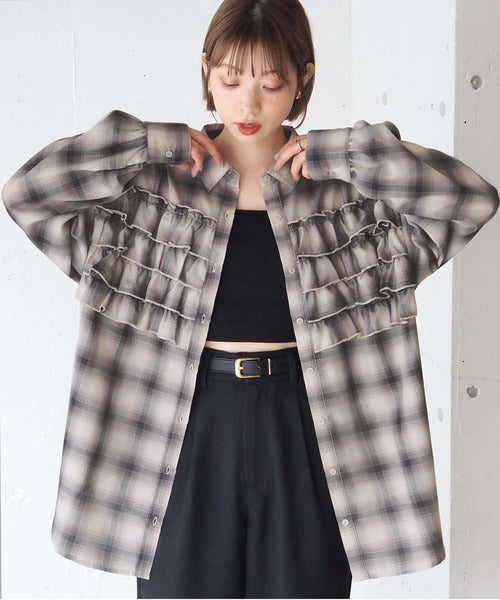 <預訂> 日牌Tiptop 漸層格紋荷葉邊襯衫|三色入