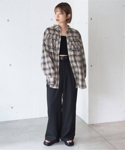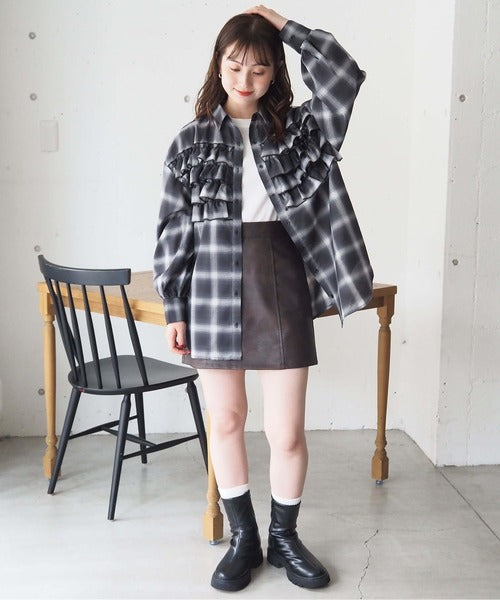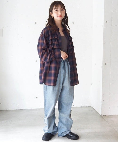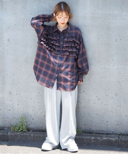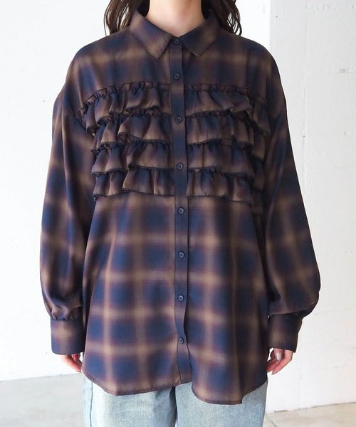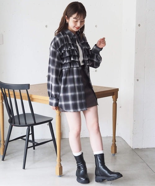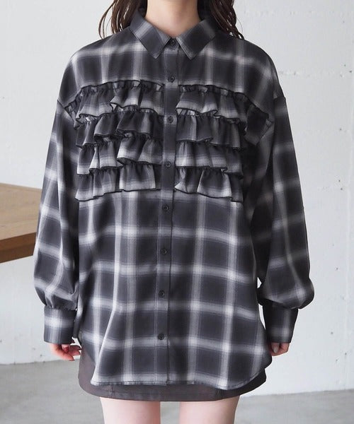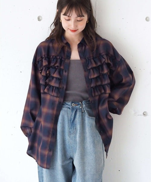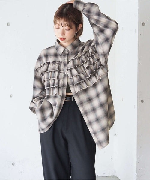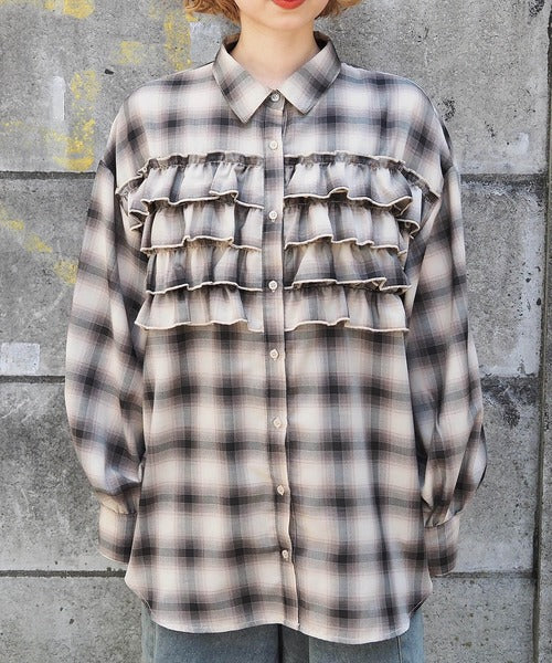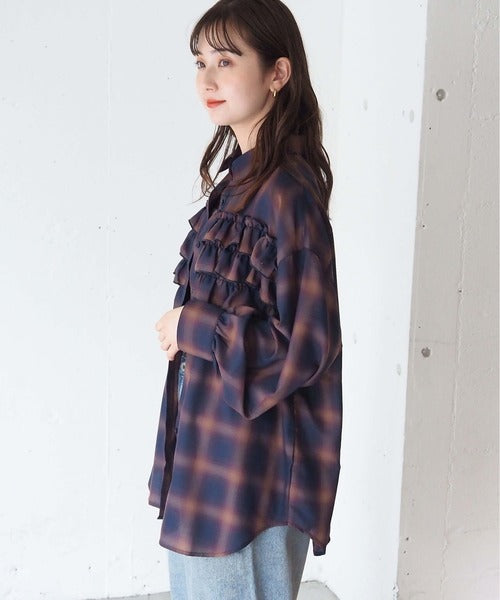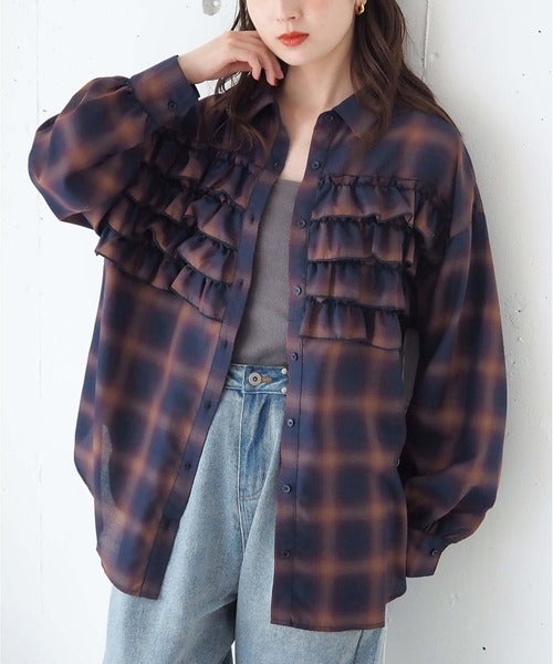 <預訂> 日牌Tiptop 漸層格紋荷葉邊襯衫|三色入