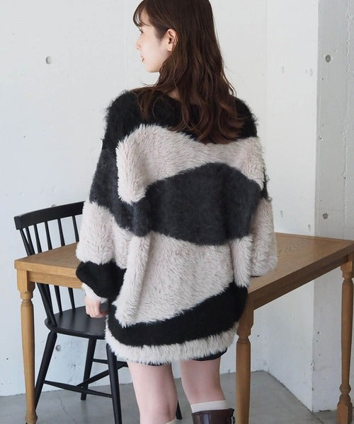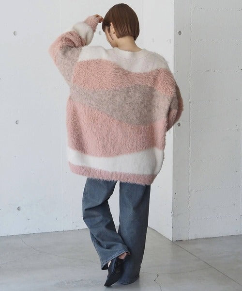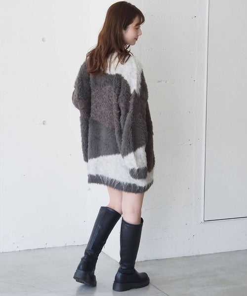 將毛絨針織╳圈圈針織╳立體紋理三種材質無縫拼接