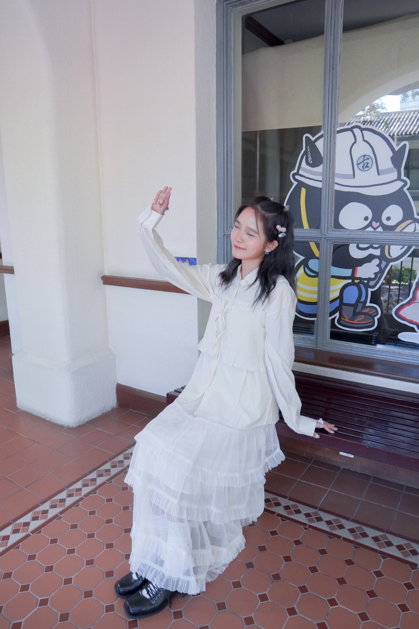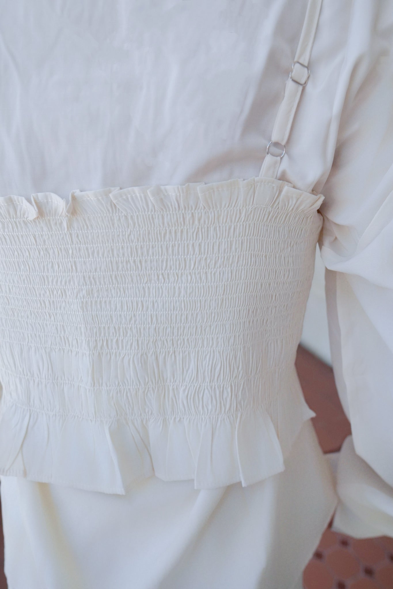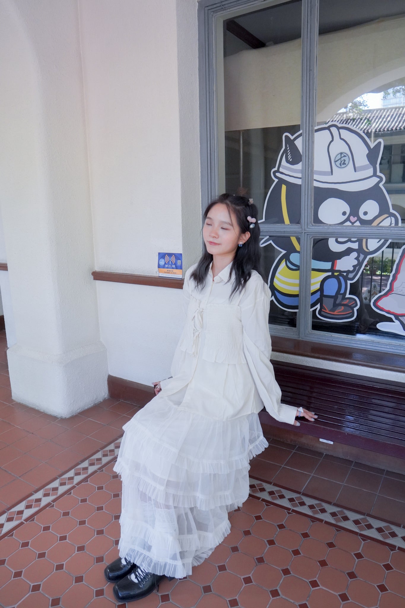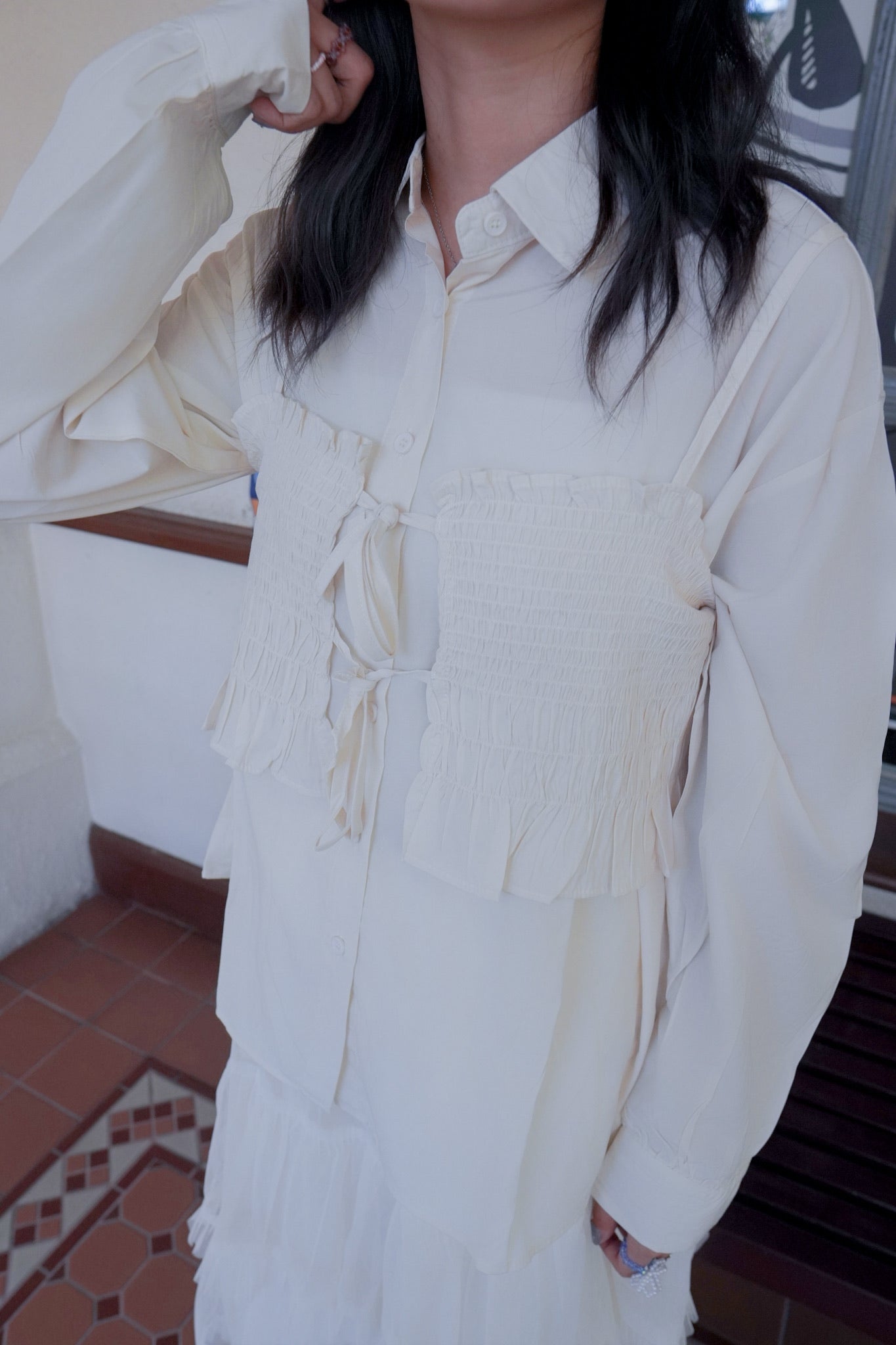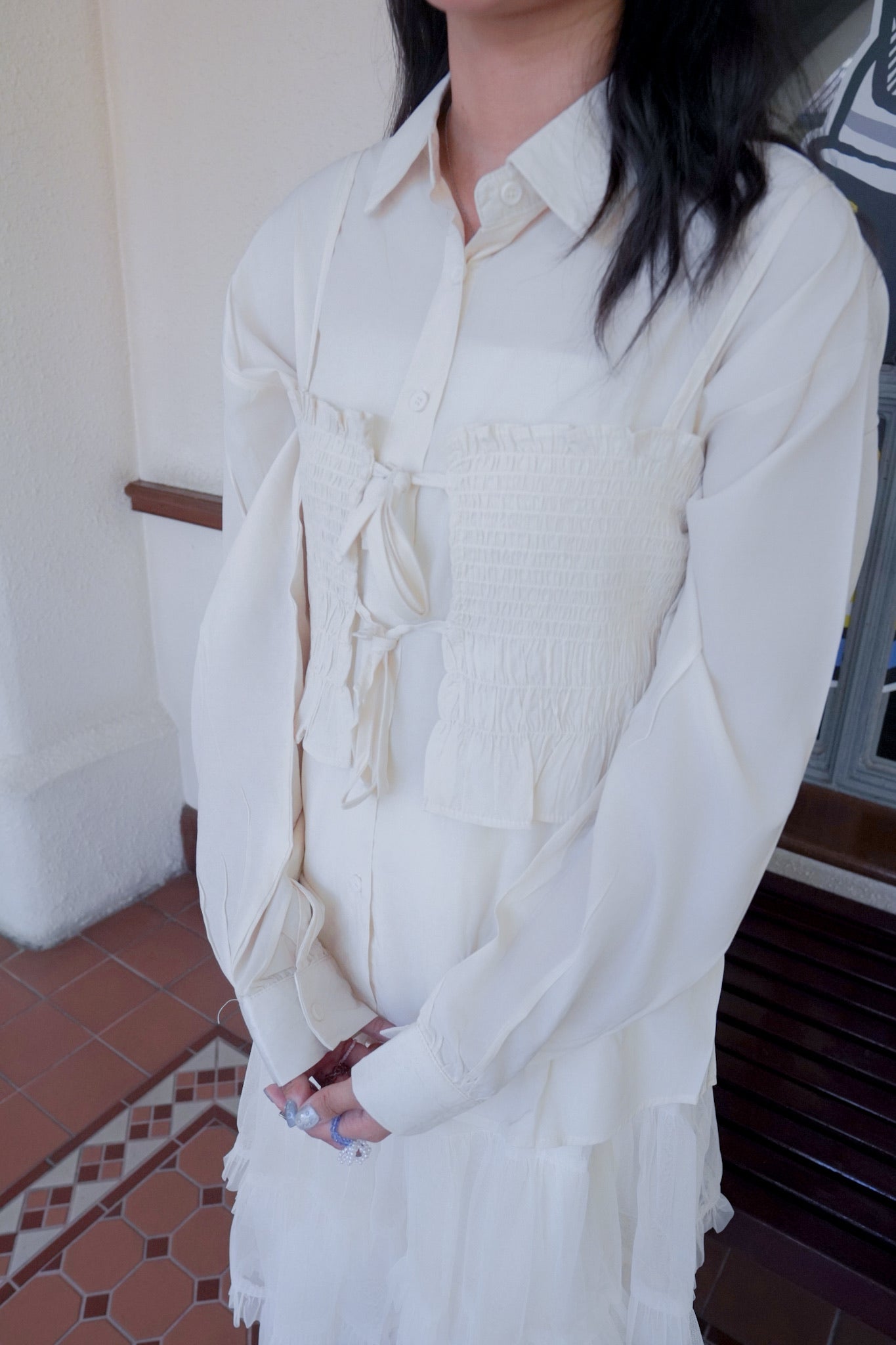<現貨> 皺皺吊帶背心+長袖裇衫兩件套