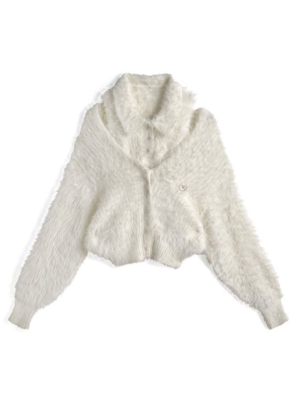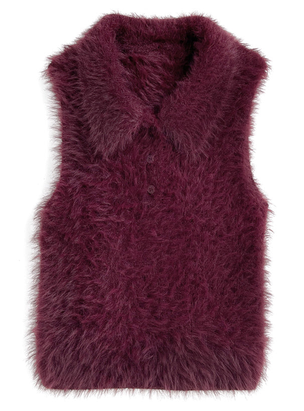 <預訂> 翻領無袖上衣+毛茸茸針織上衣兩件套裝|兩色入