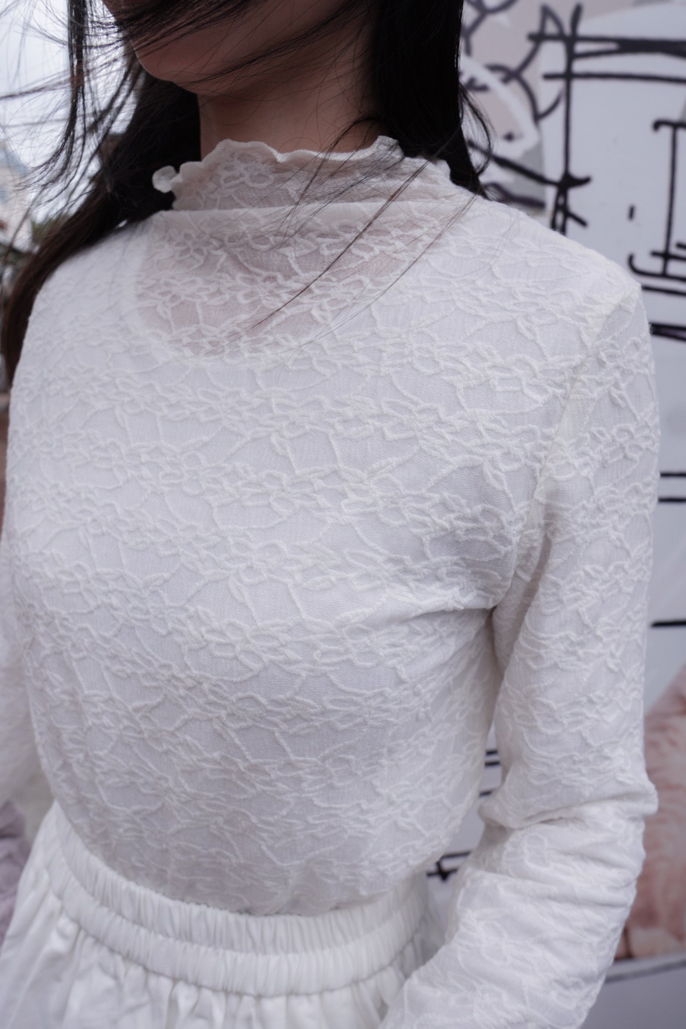 <預訂> 自家製 褶皺透明Ruffle邊立體花花高領內搭打底上衣|兩色入