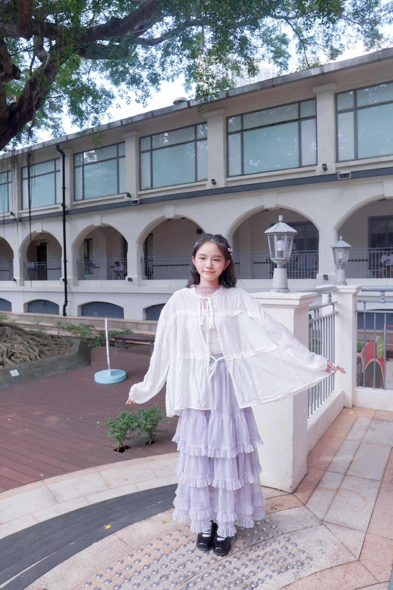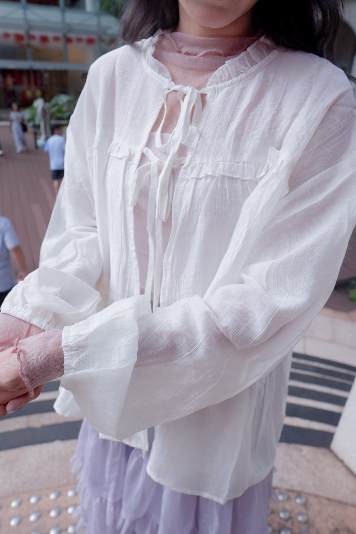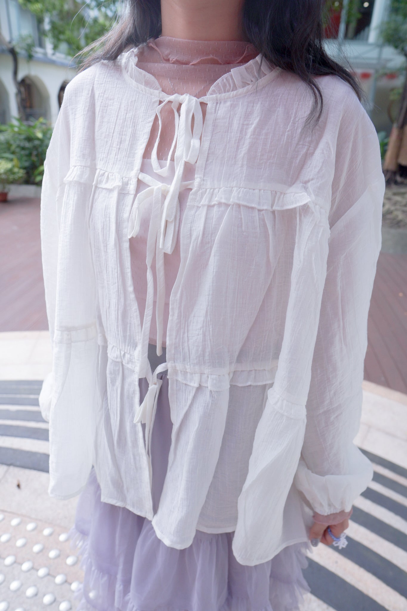 <預訂> 荷葉邊泡泡袖綁帶透紗薄外套