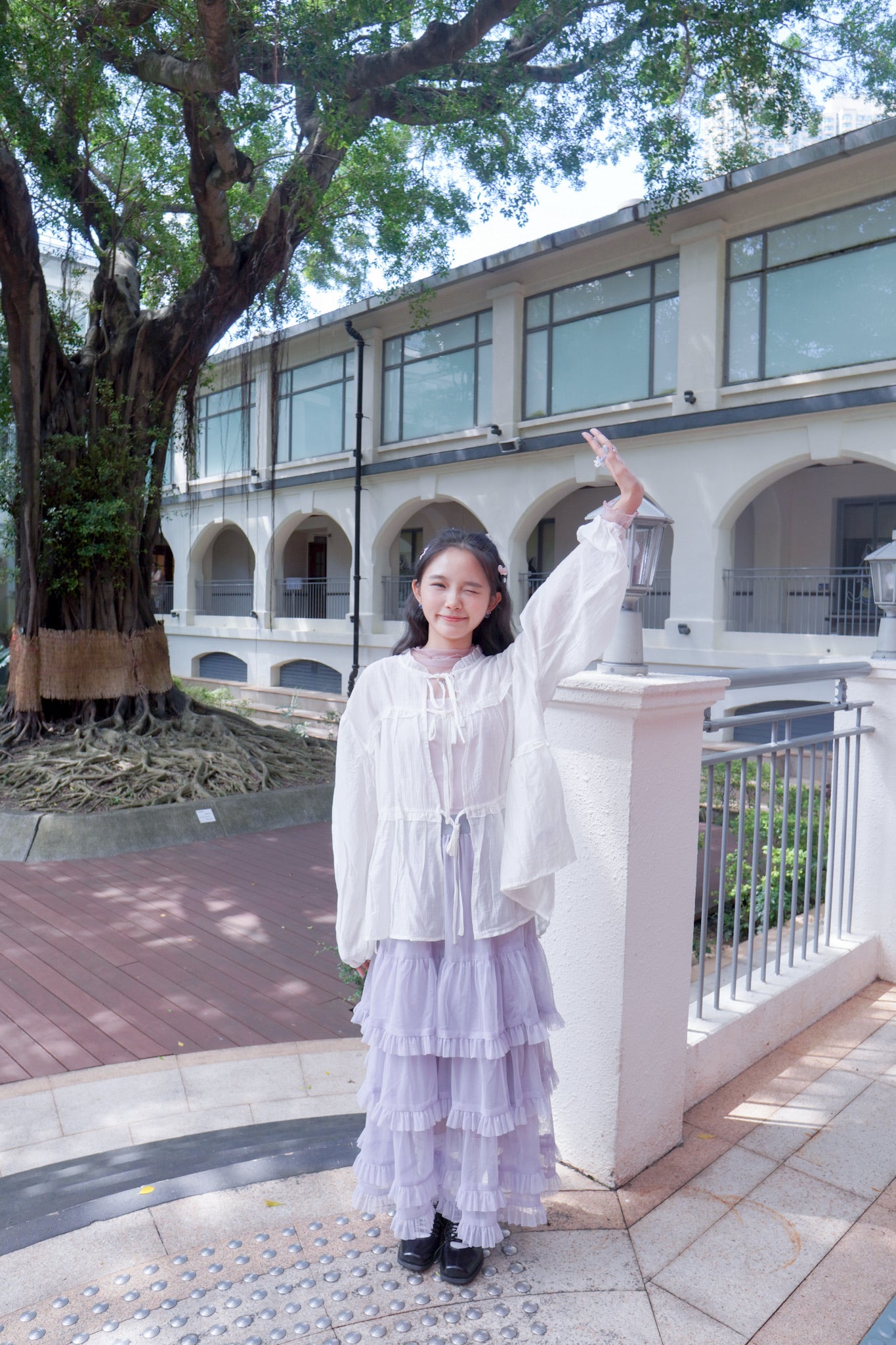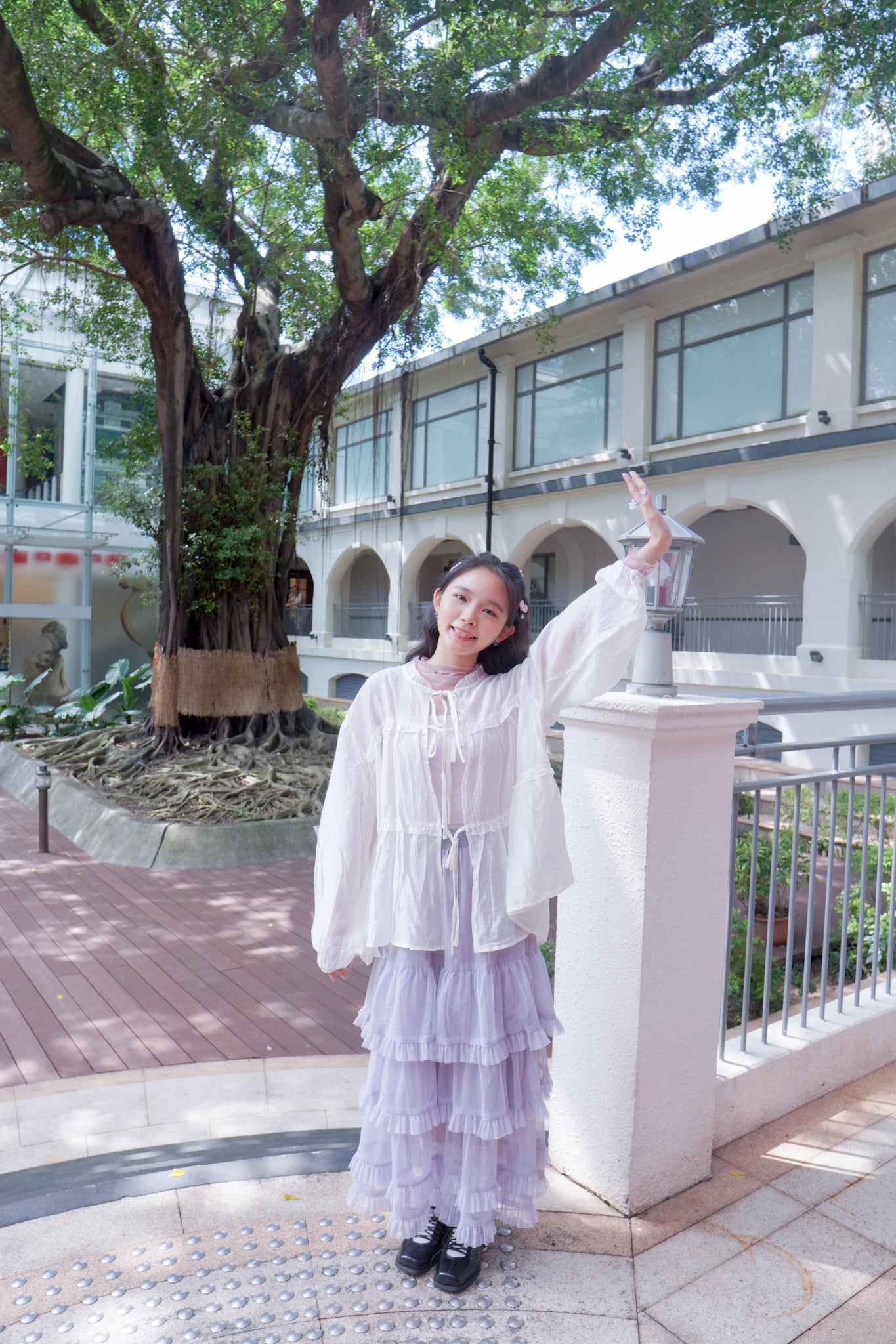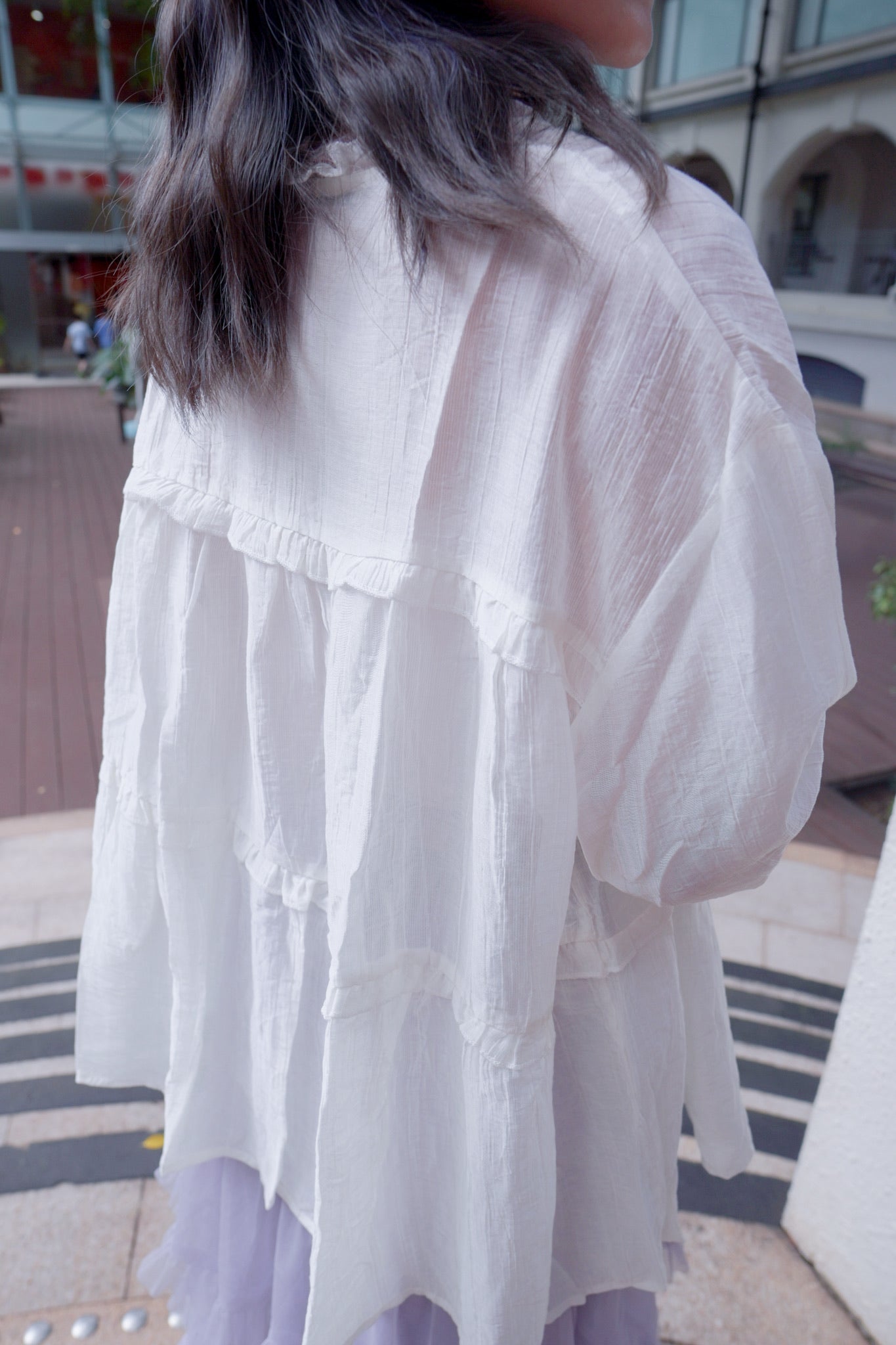 <預訂> 荷葉邊泡泡袖綁帶透紗薄外套