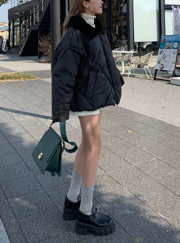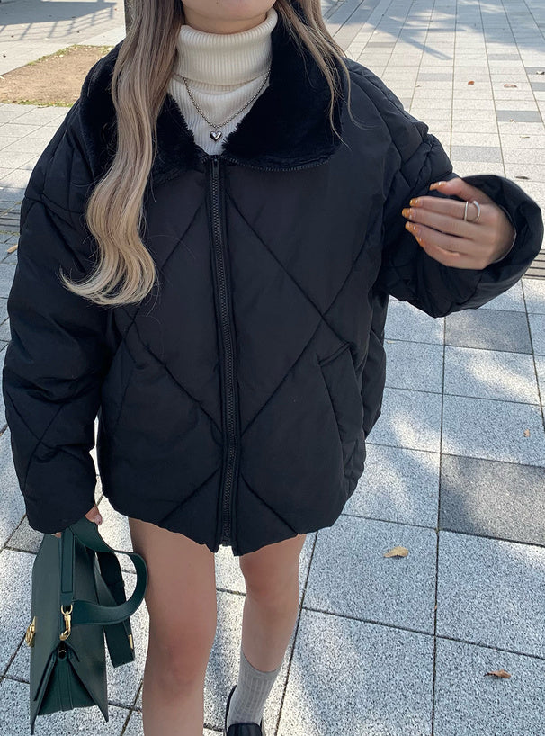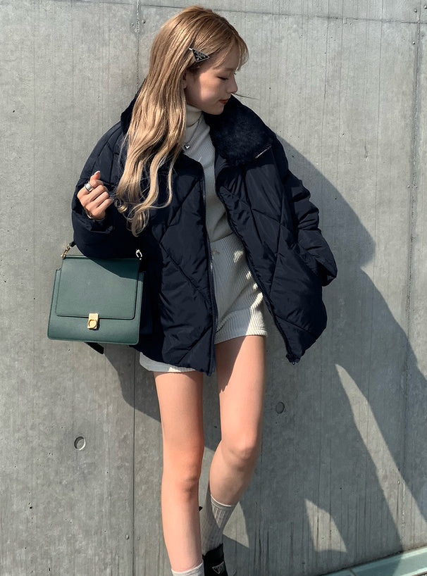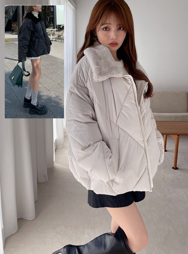<預訂> 雙向毛領絎縫羽絨外套|兩色入