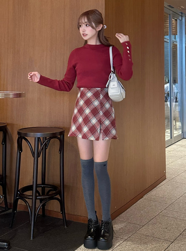 <預訂> J節日感紋格紋迷你裙(含內搭)| 兩色入