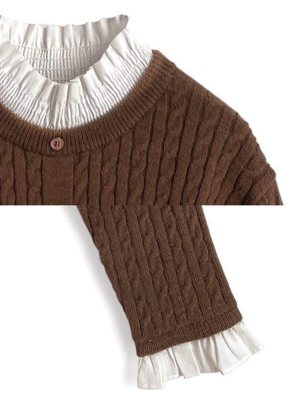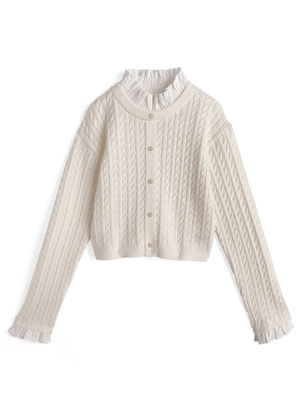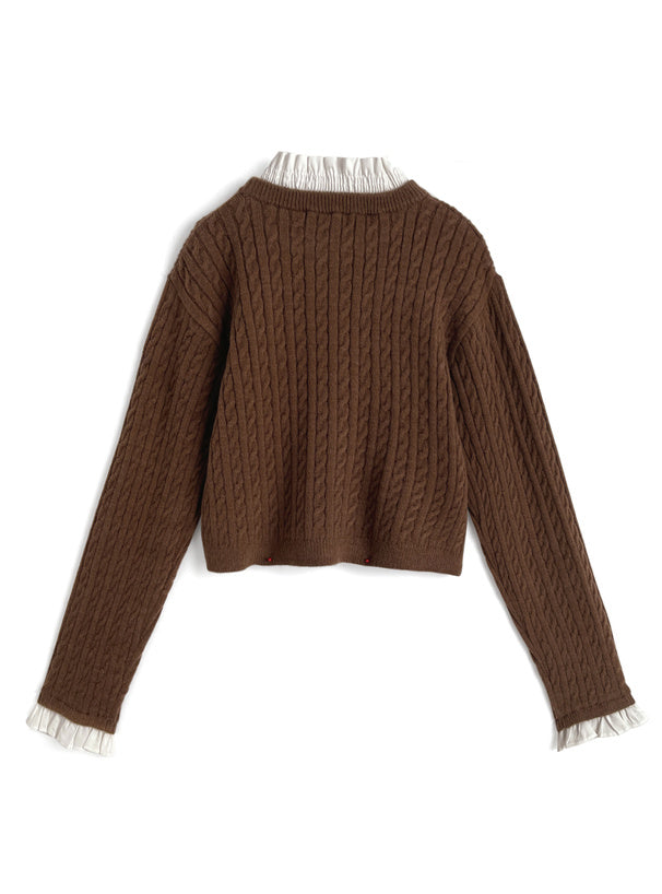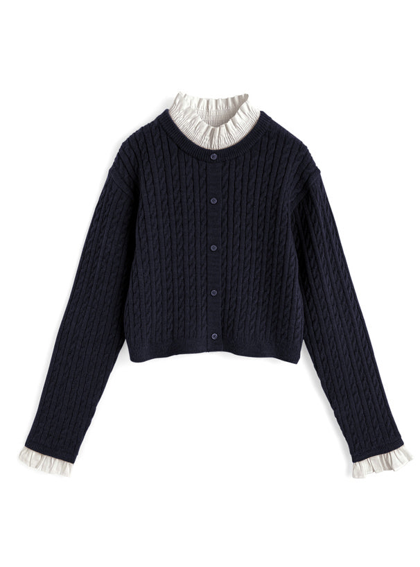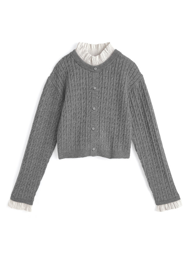 似係一件粗針織開襟衫入面偷偷藏咗件荷葉邊襯衫