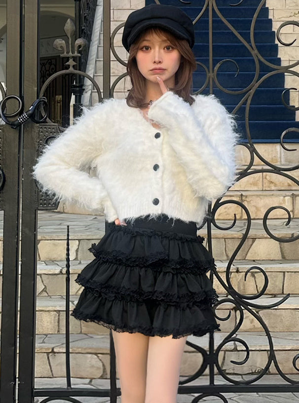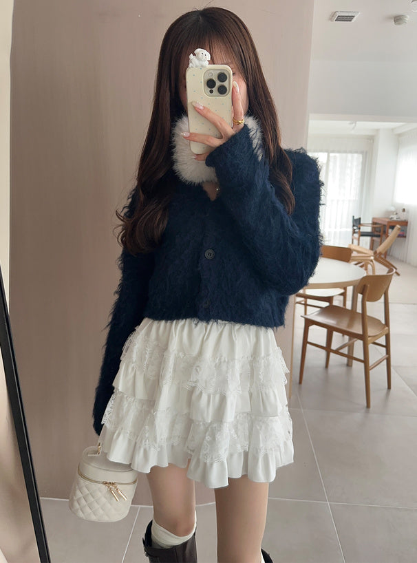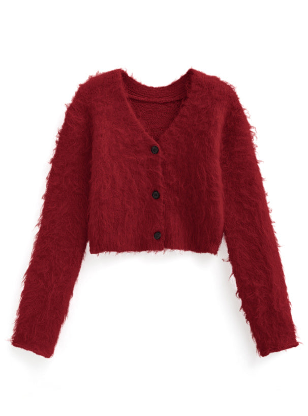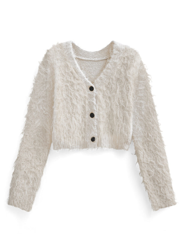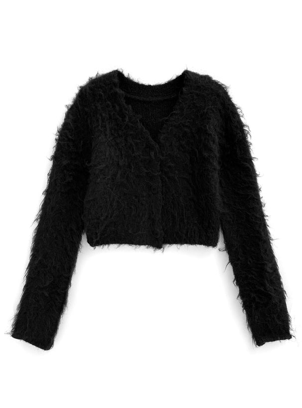 ILLIT YUNAH同款短版毛絨針織外套🐰