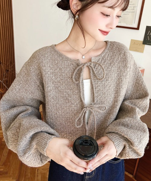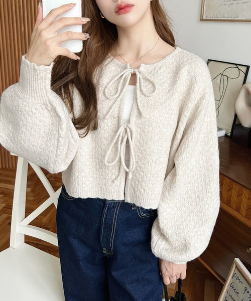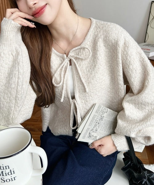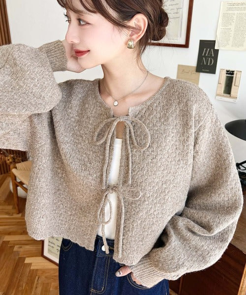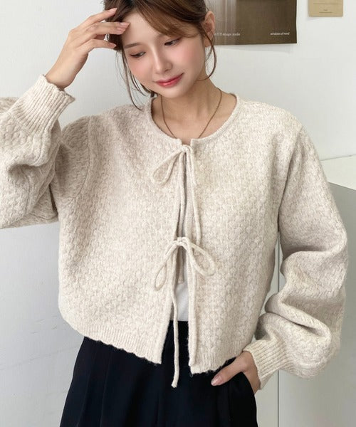 超人氣爆米花針織紋理 雙面絲帶設計一件抵兩件穿